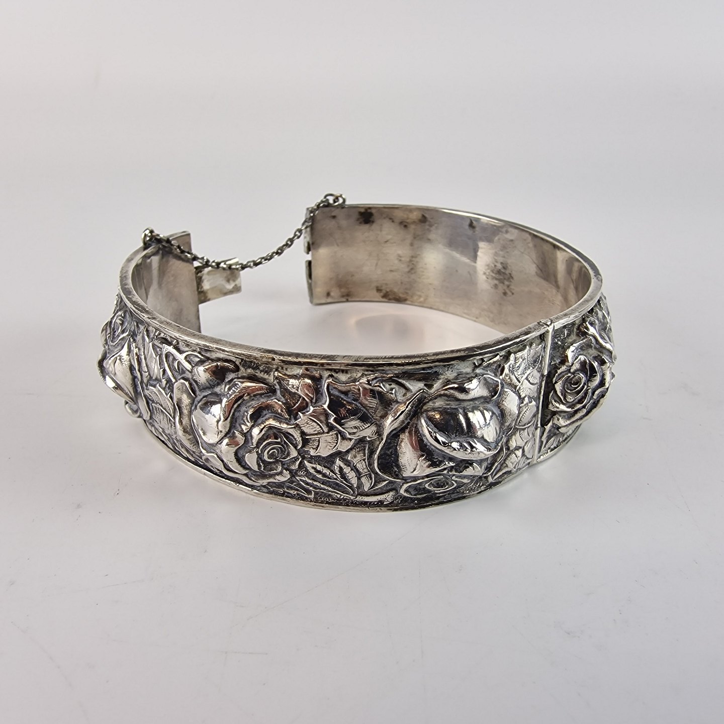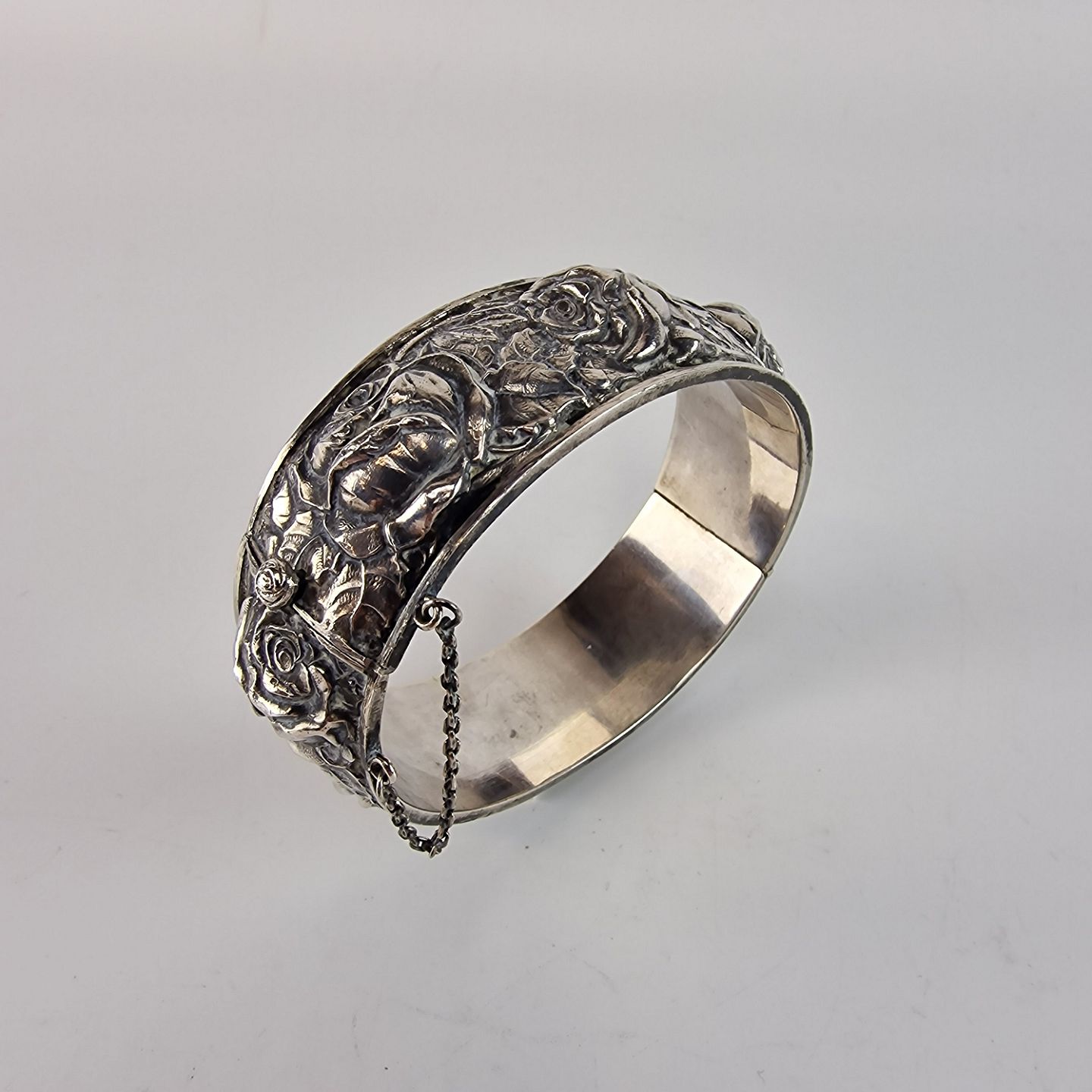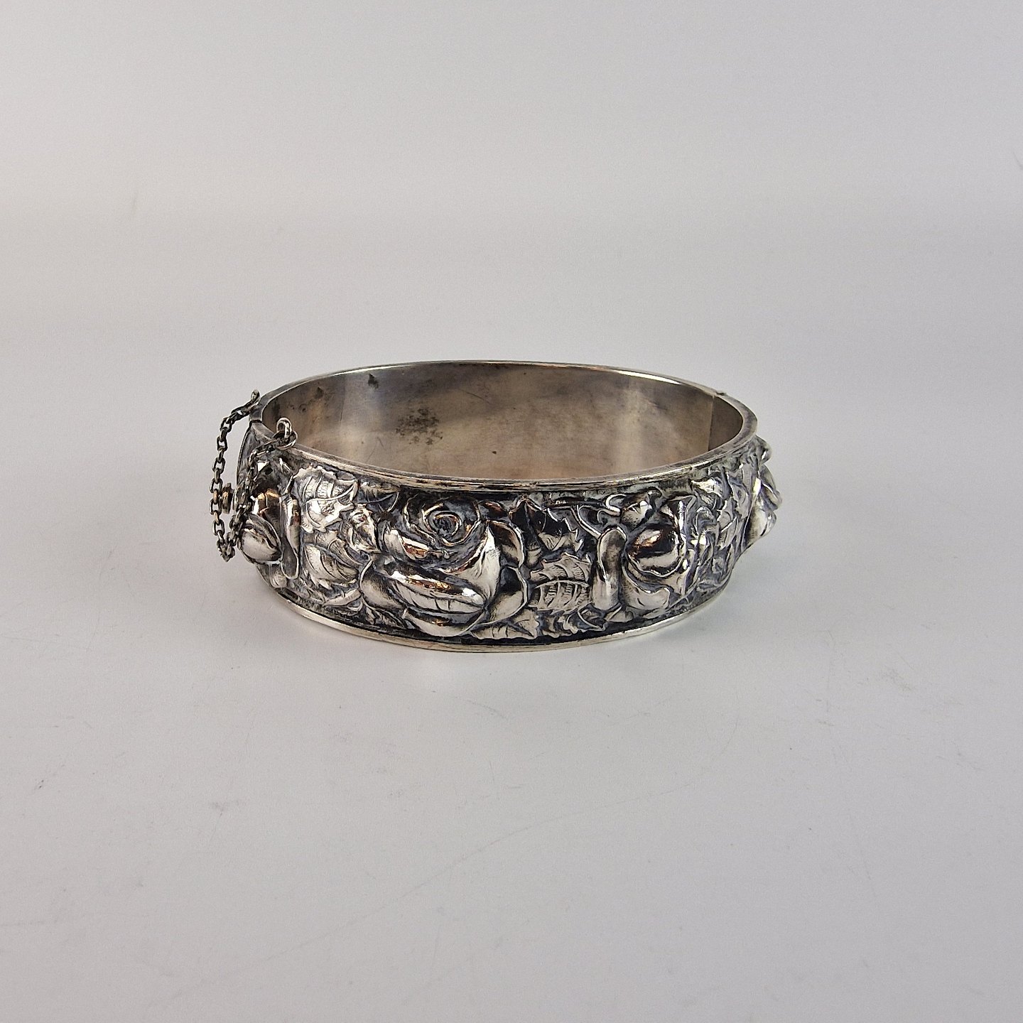 Ovalt armsmykke dekoreret med roser. Armbåndet har en sikkerhedslås på, og er svensk