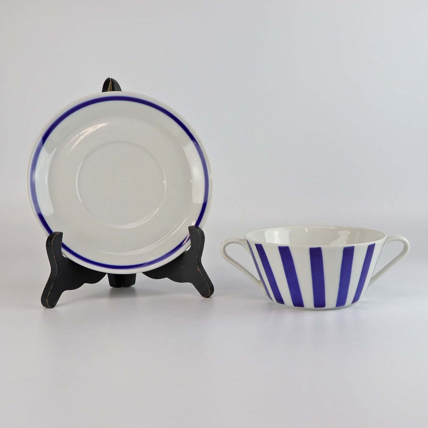 Boullionkop med underkop i porcelæn fra stellet blå striber