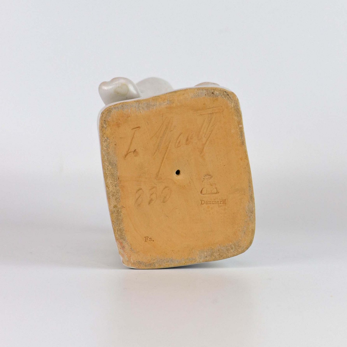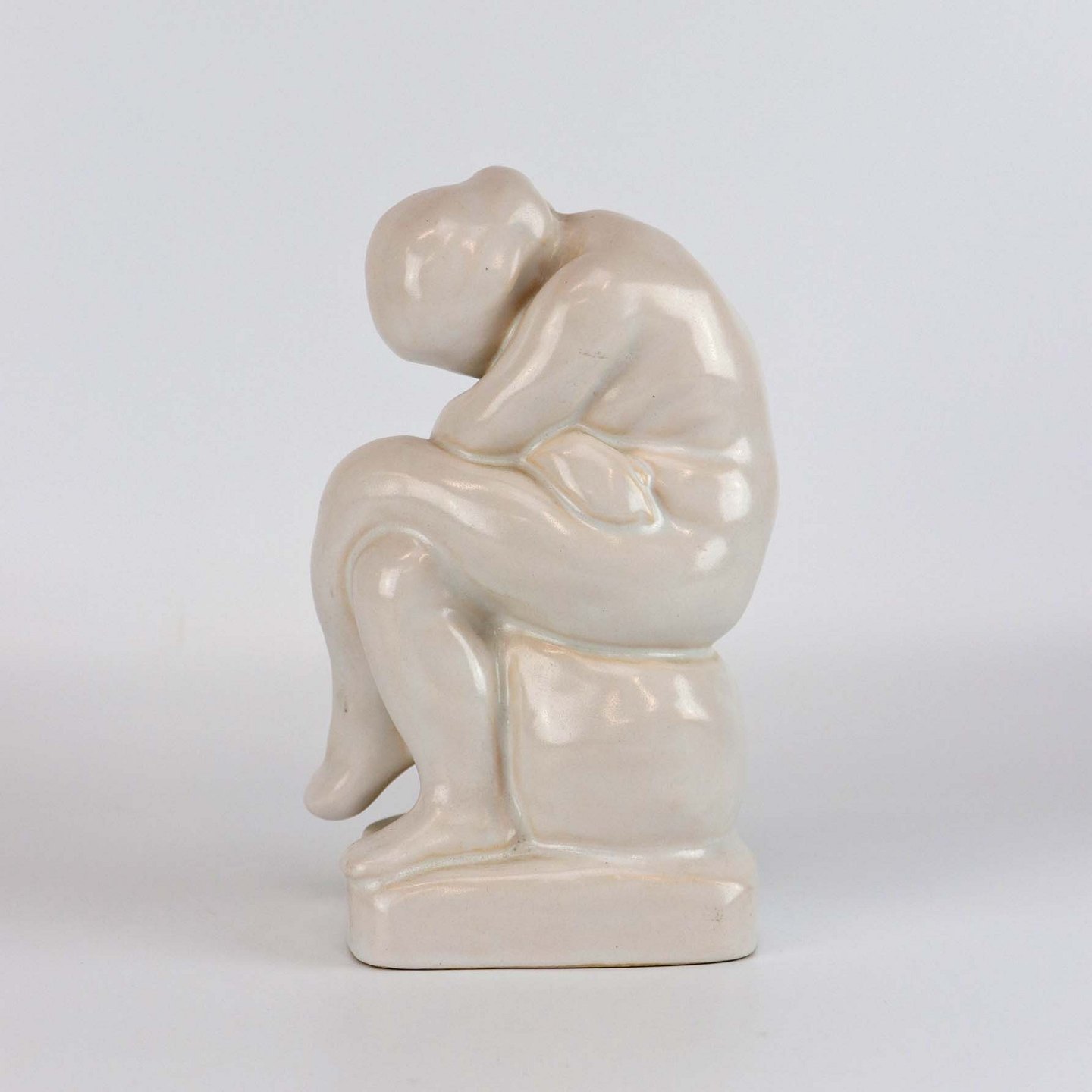 Figur i hvidglaseret keramik med motiv af nøgen ung sørgende kvinde nr 830