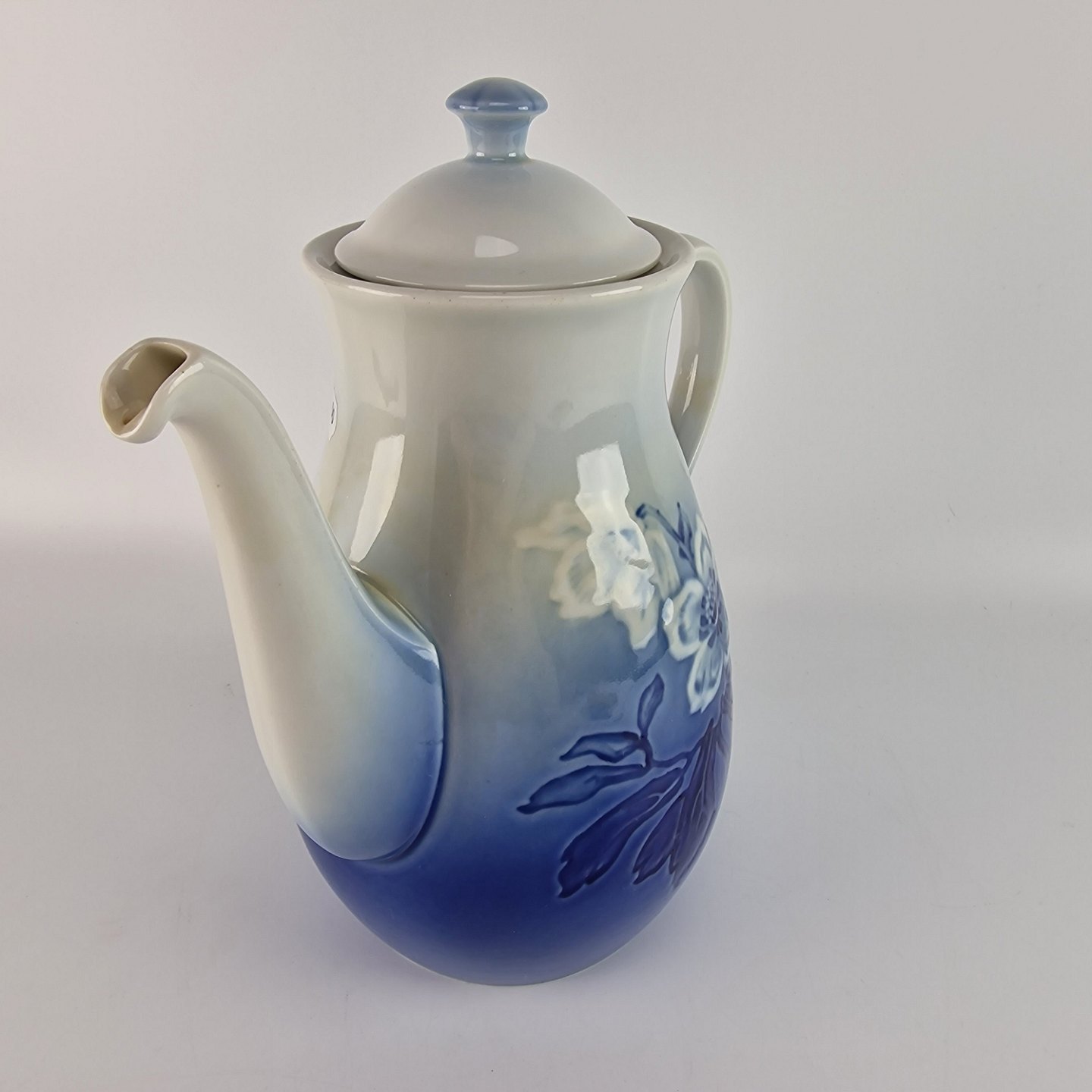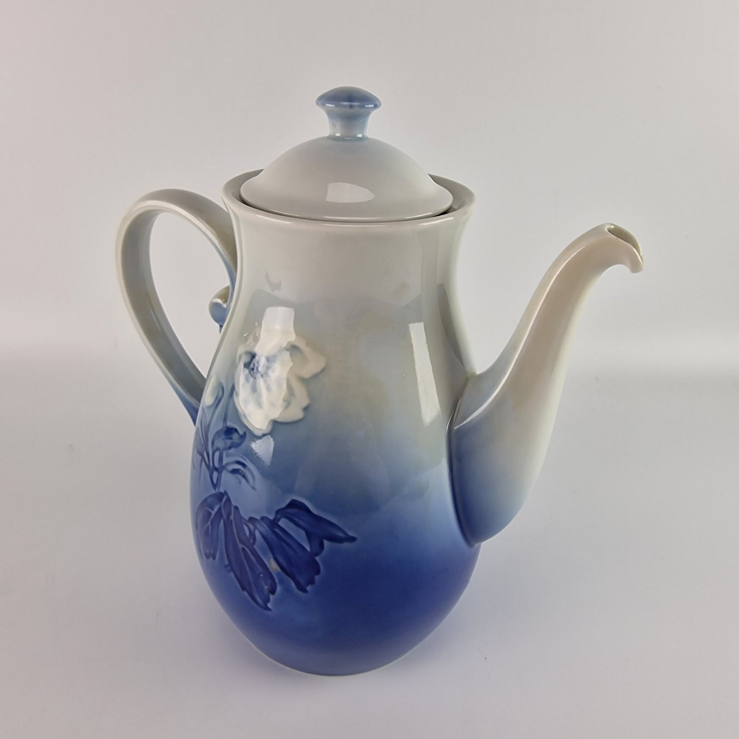 Julerose er hvidt porcelæn med gradueret blå farver, dekoreret med et motiv af en hvid julerose