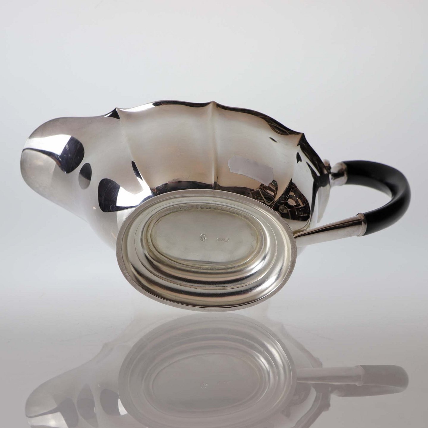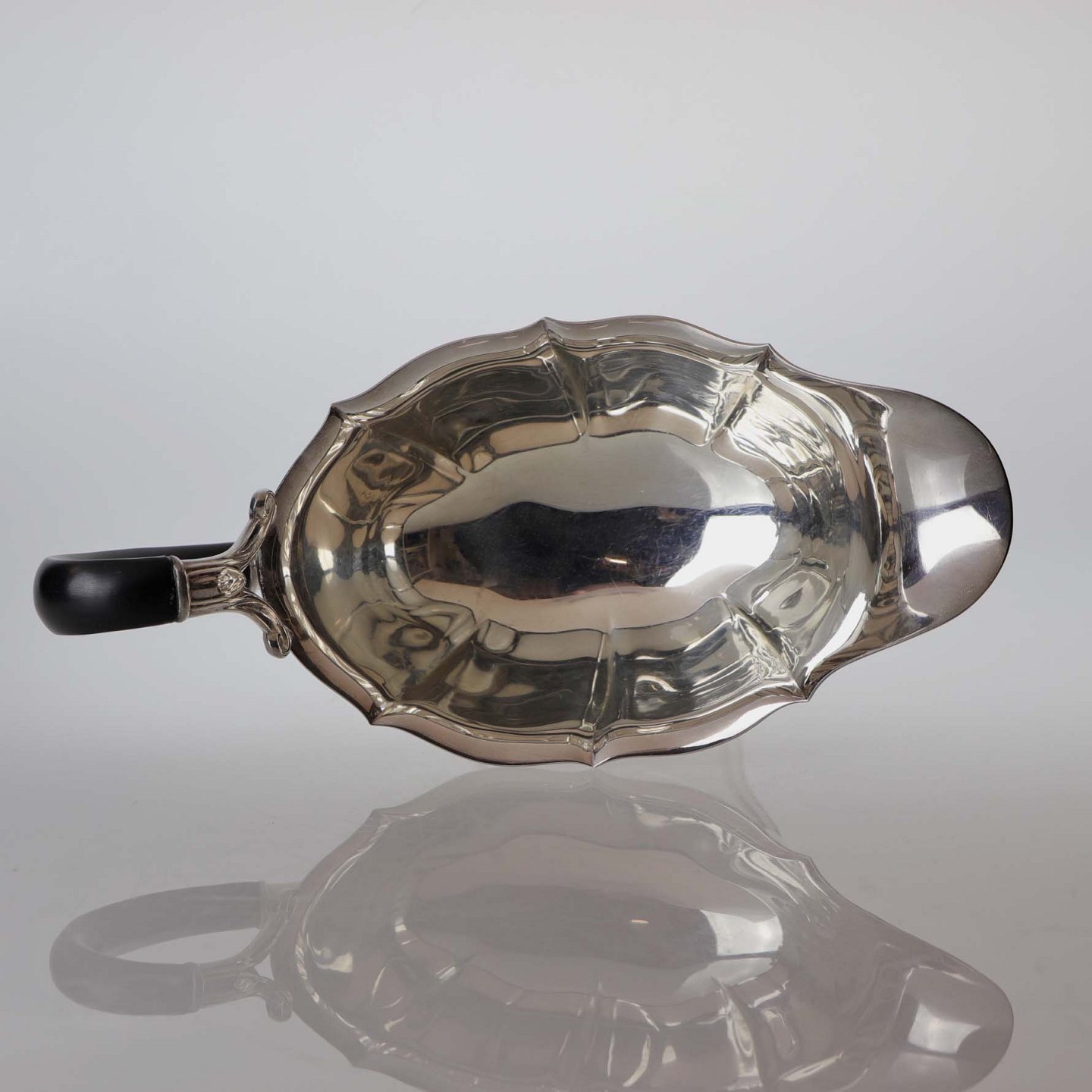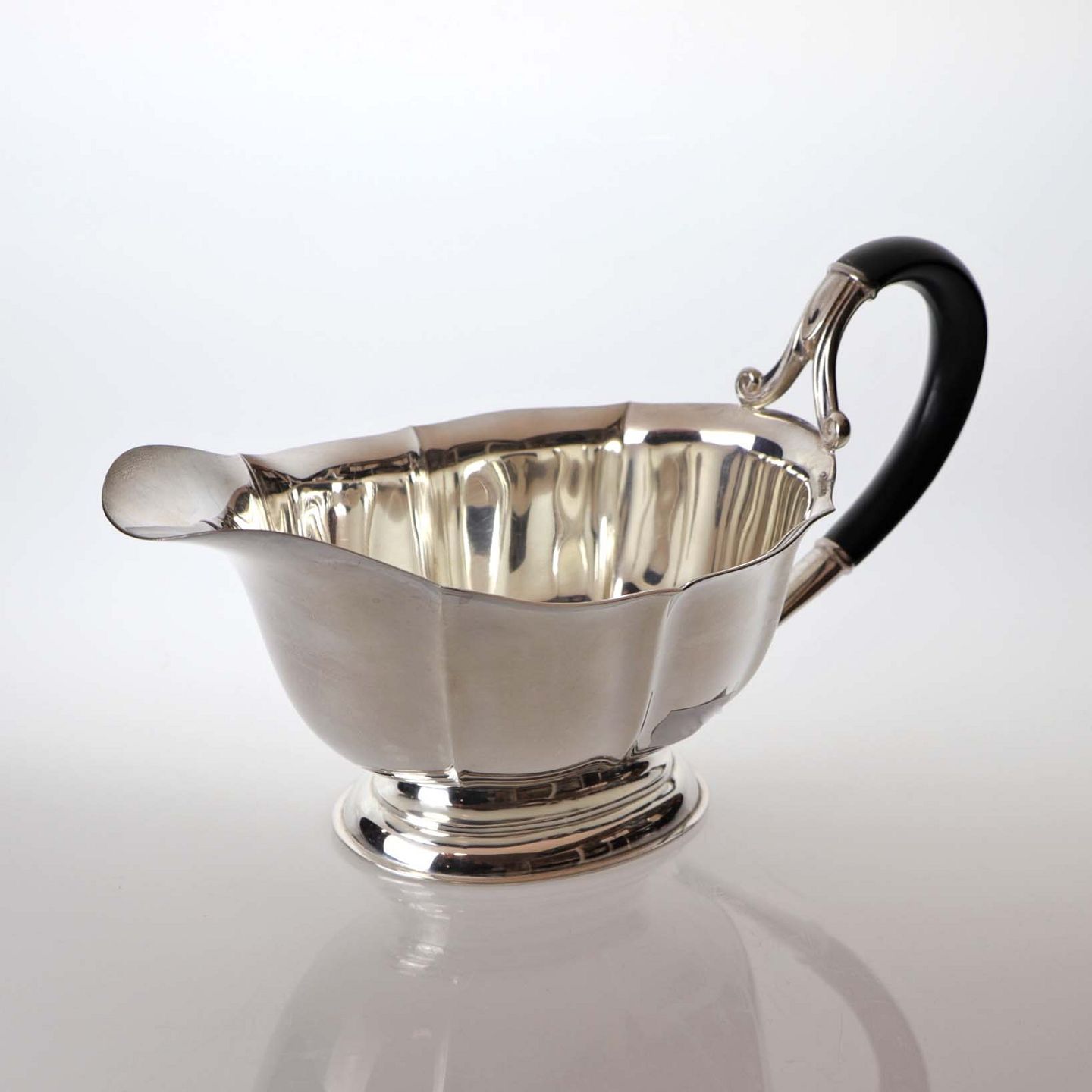 Sauceskål i sølv 830 og sortpoleret hank
