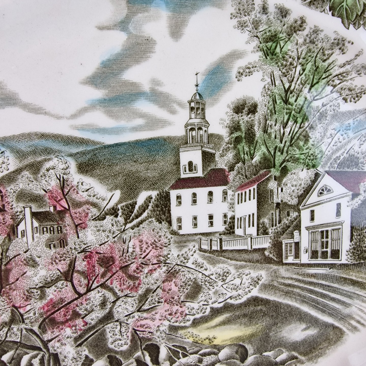 The Friendly Village er af fajance med motiver af engelsk landsbyliv