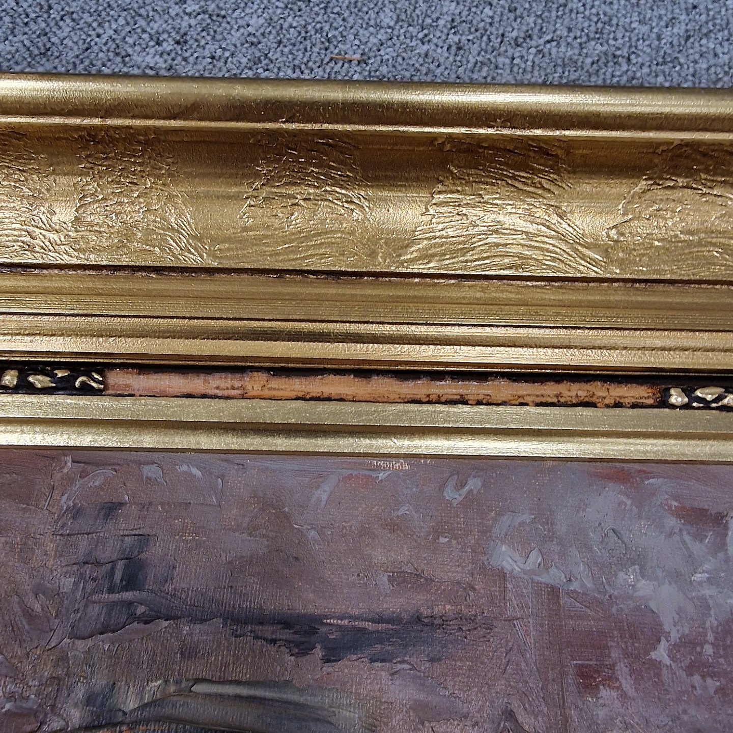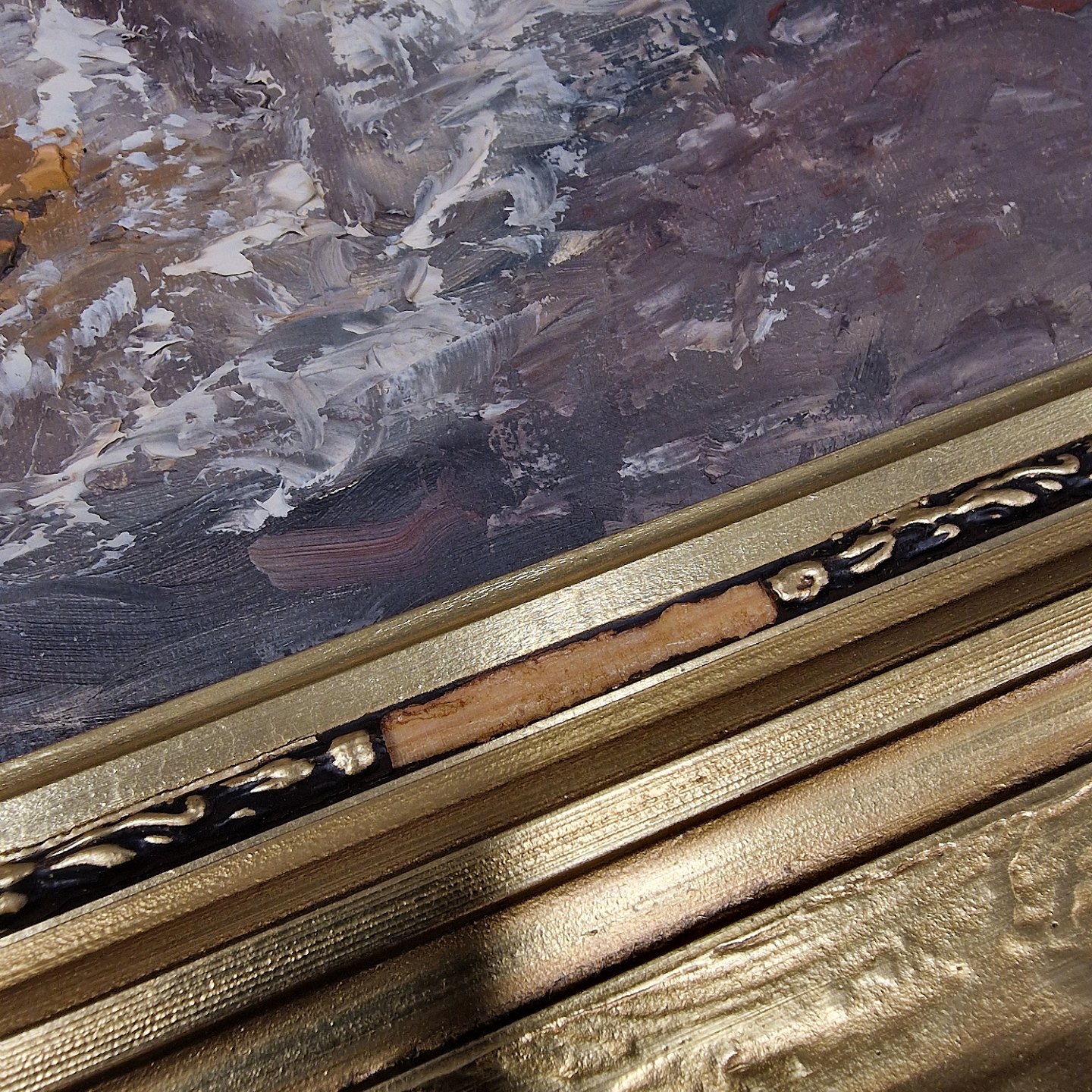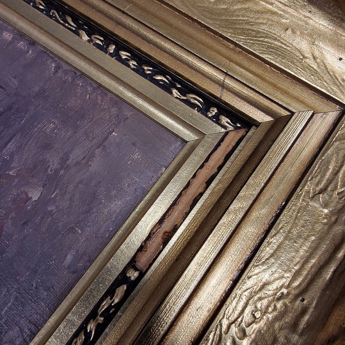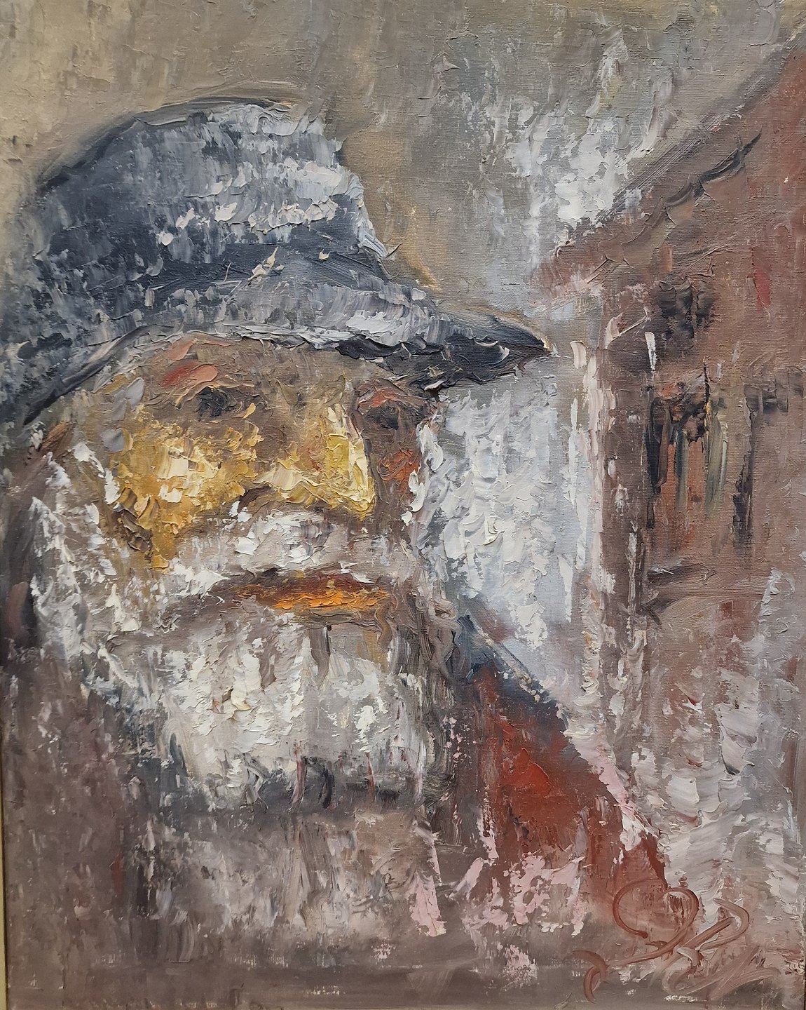 Oliemaleri på lærred. Impressionistisk portræt af mand med fuldskæg og hat.