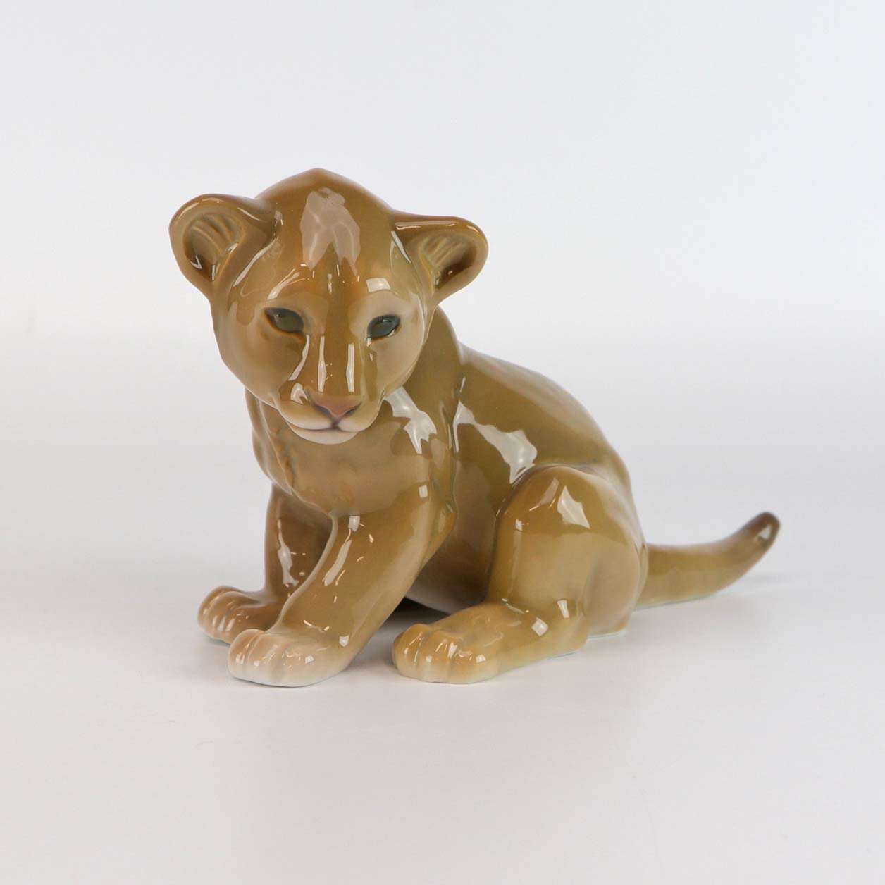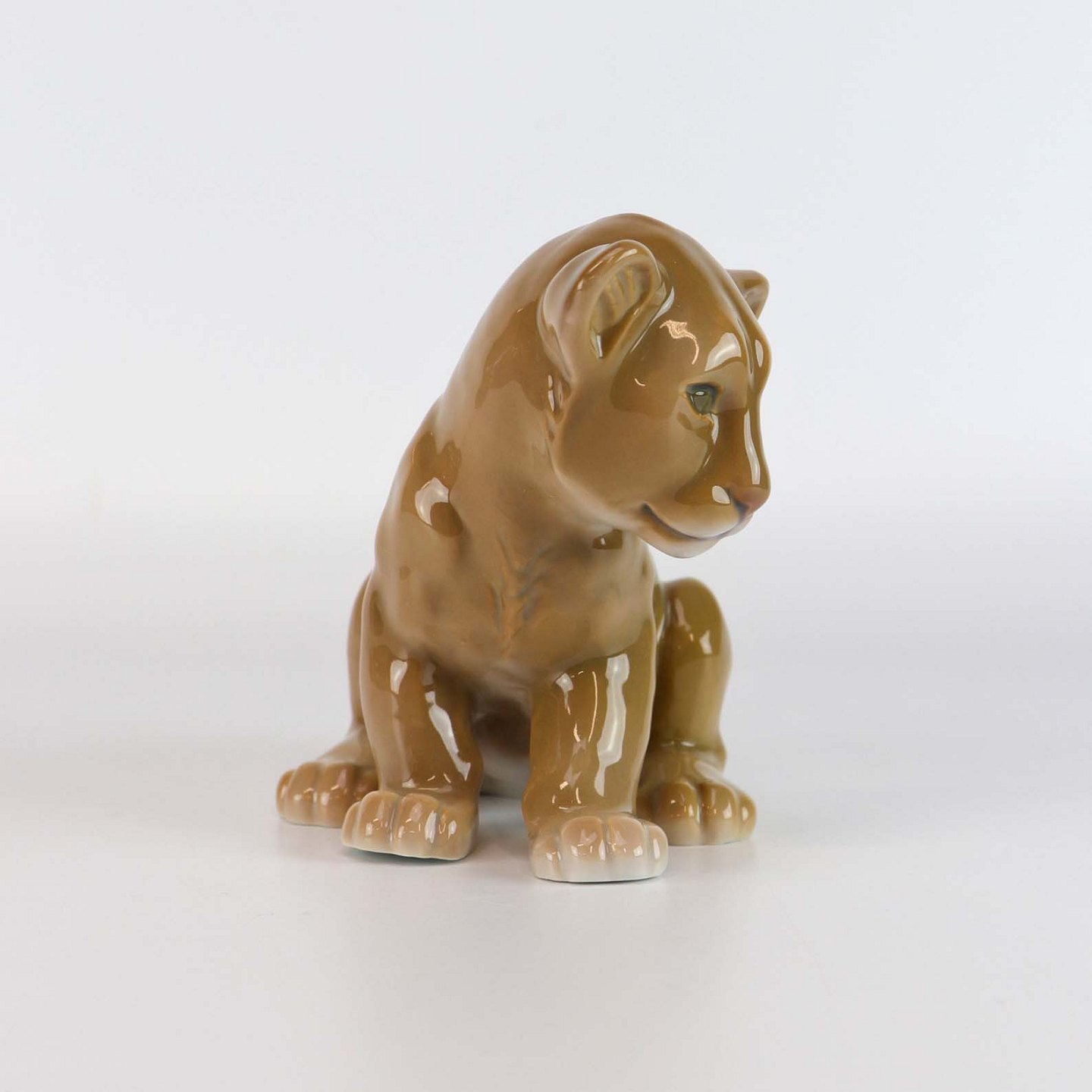 Figur i porcelæn, håndmalet med motiv af siddende løveunge nr 2530