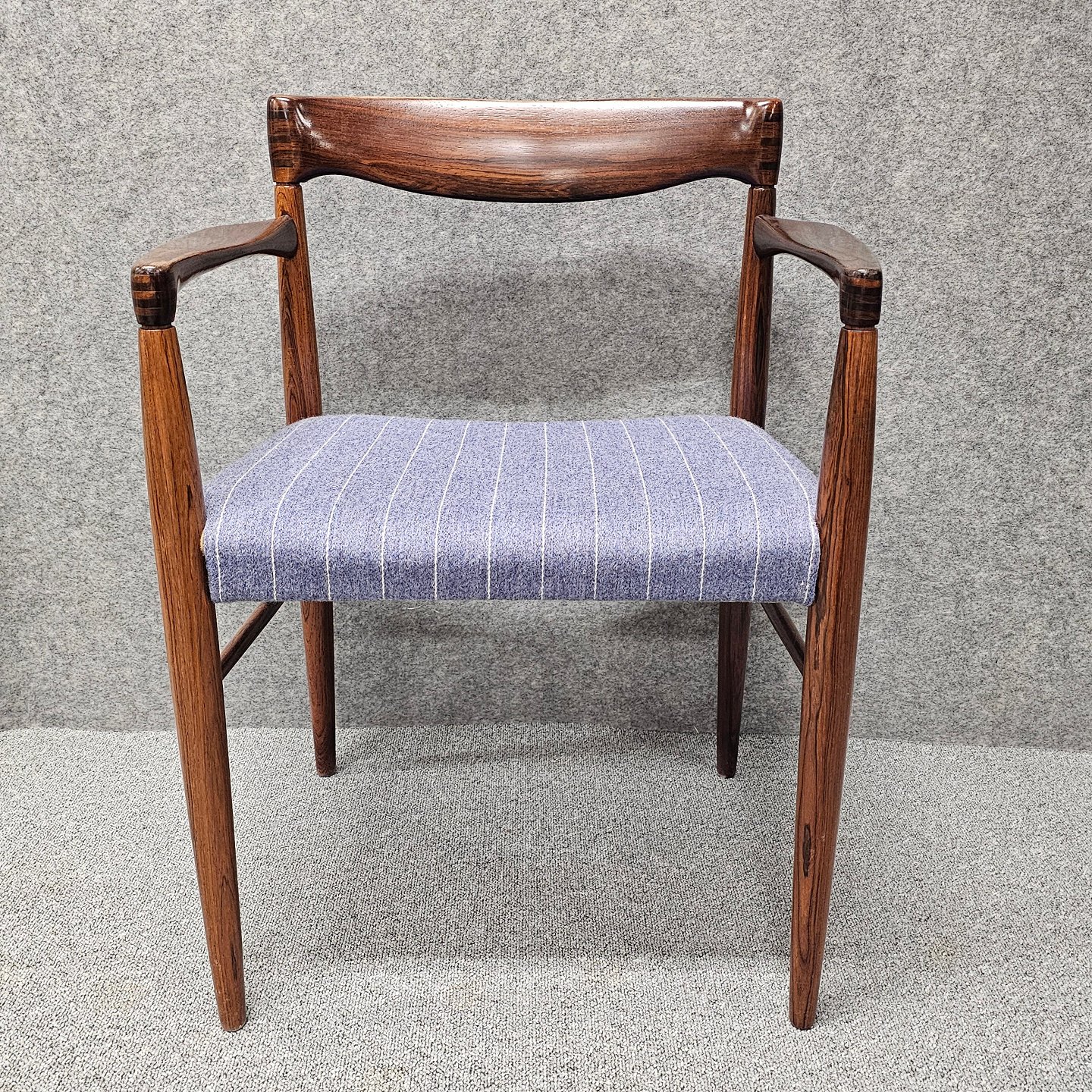 Stol med armlæn. Udført i teaktræ og med sæde af stof