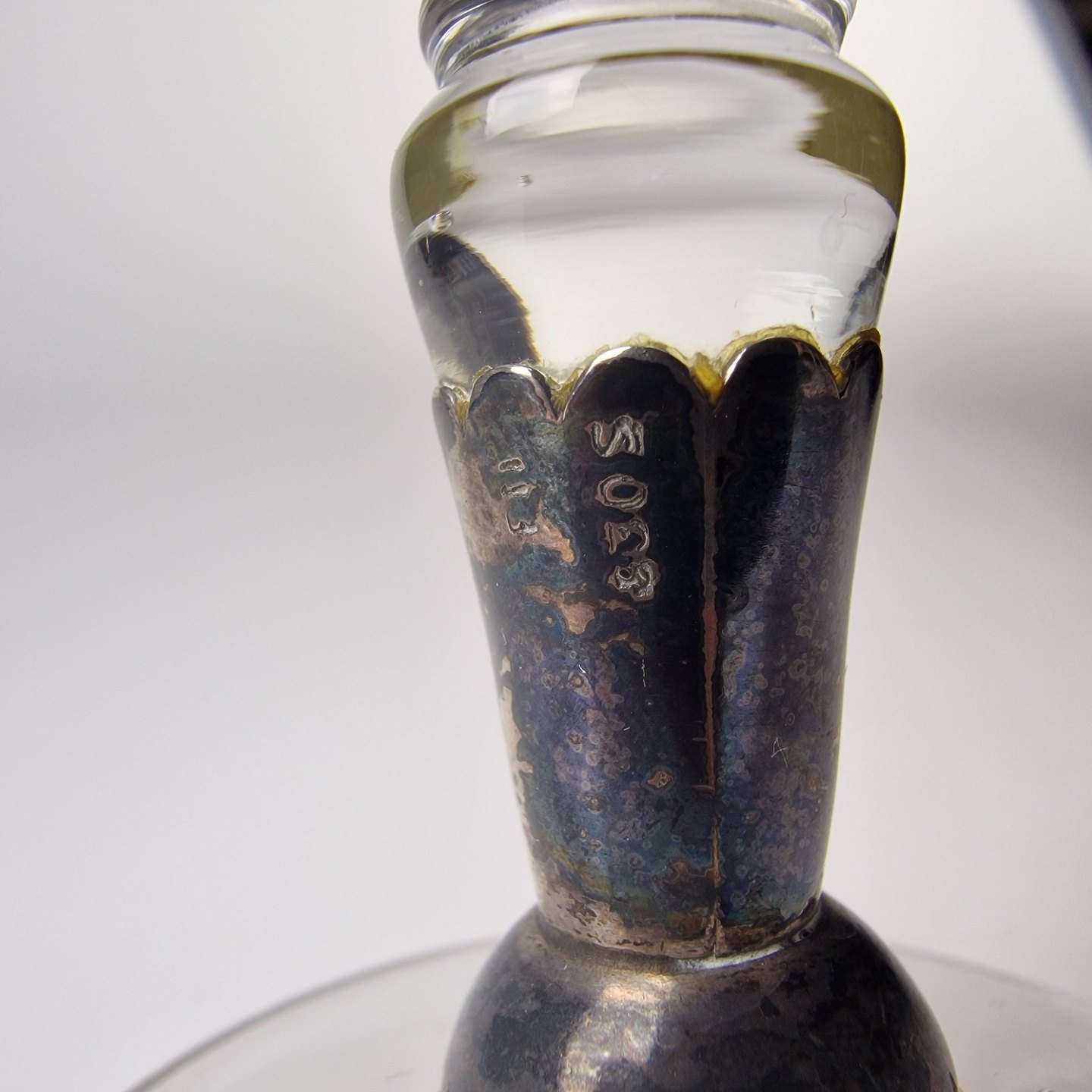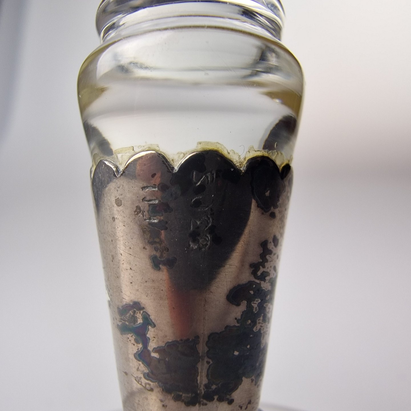 2 styk glas dekoreret med slebet vinranker og sølv omkring stilken