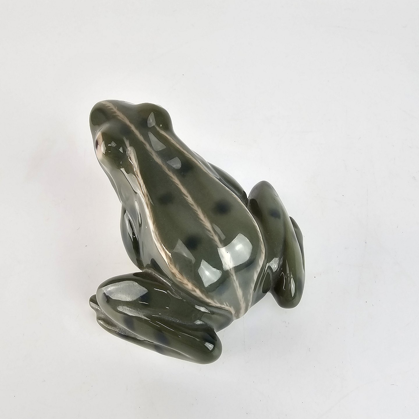 Figur i porcelæn med motiv af Frø i grågrøn farve nr. 2467