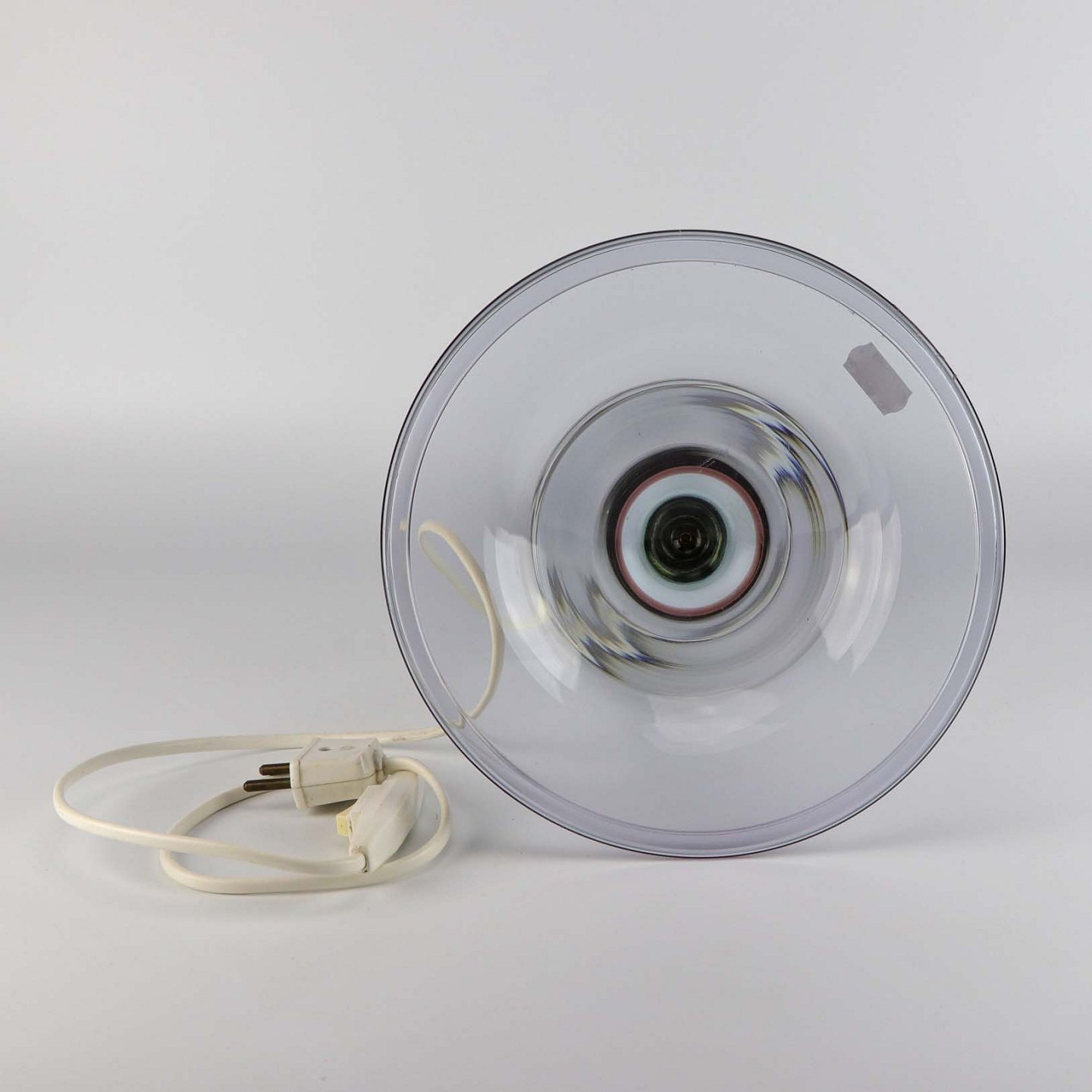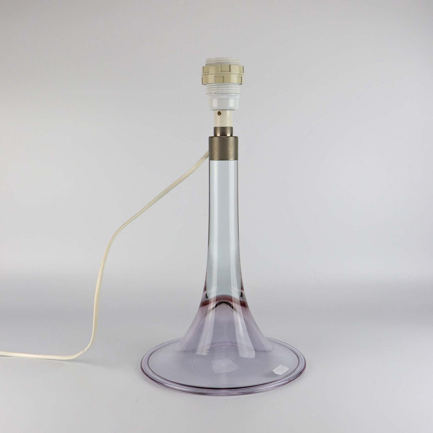 Lyslilla bordlampe i mundblæst glas, størrelse mellem