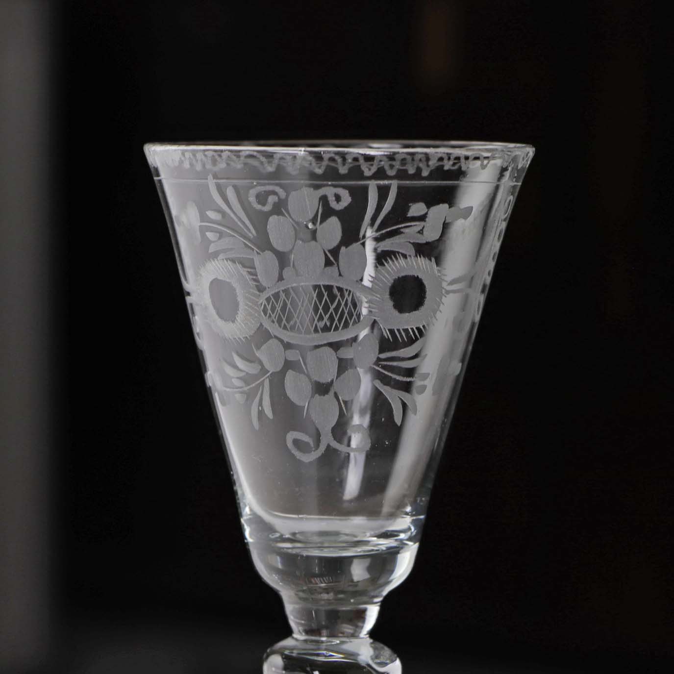 Antik schleisk Dresden/Laustein hedvinsglas med slebet mønster dateret til 1750?