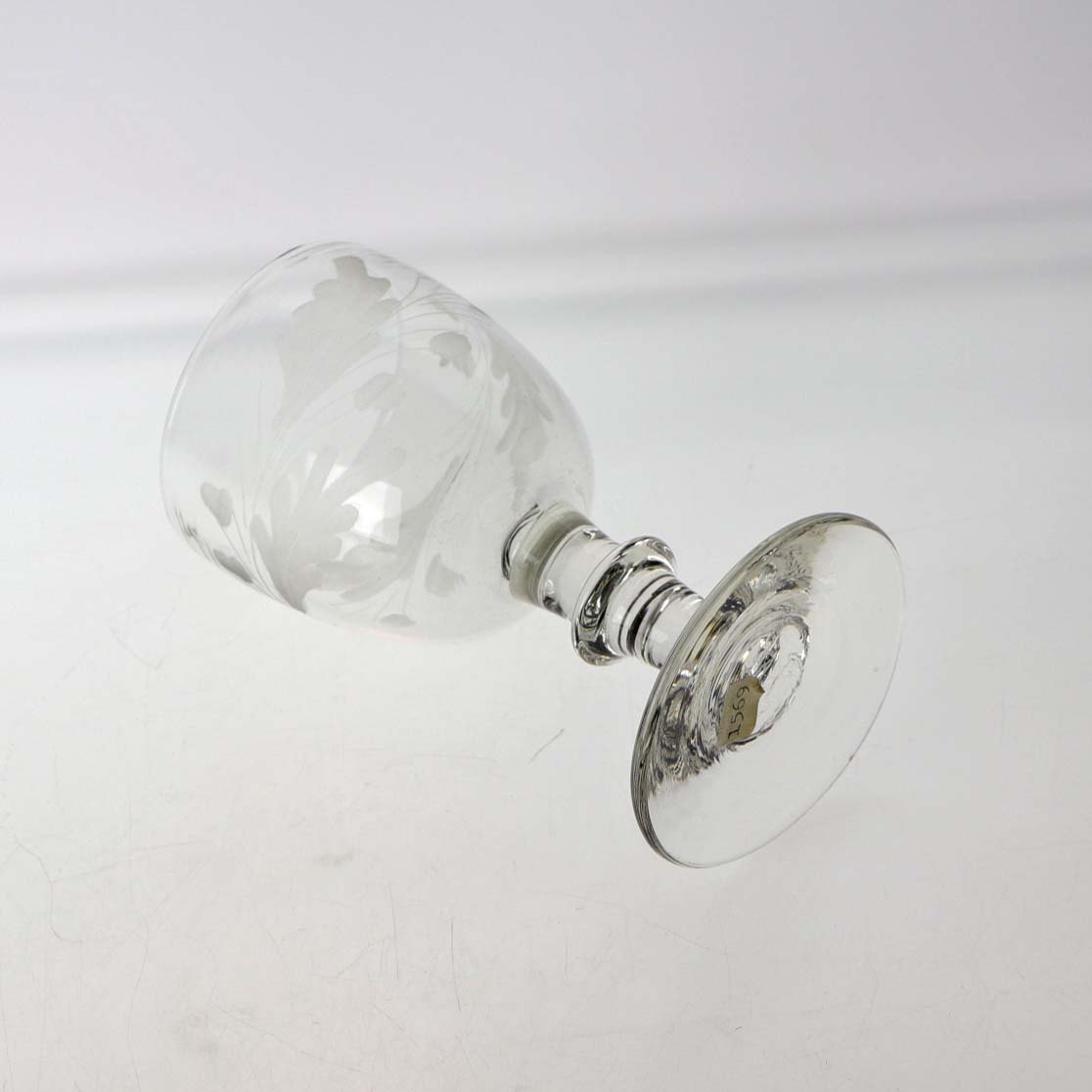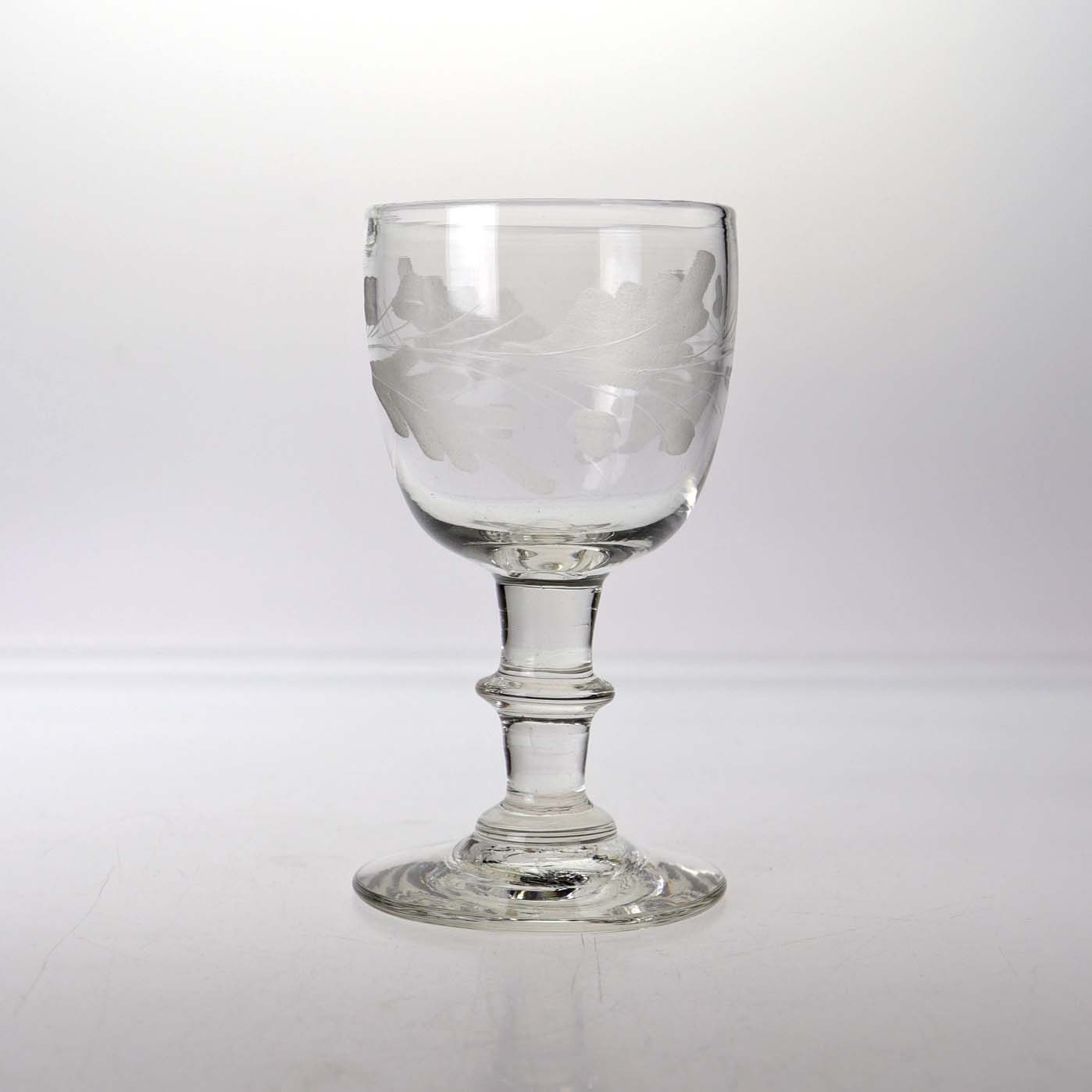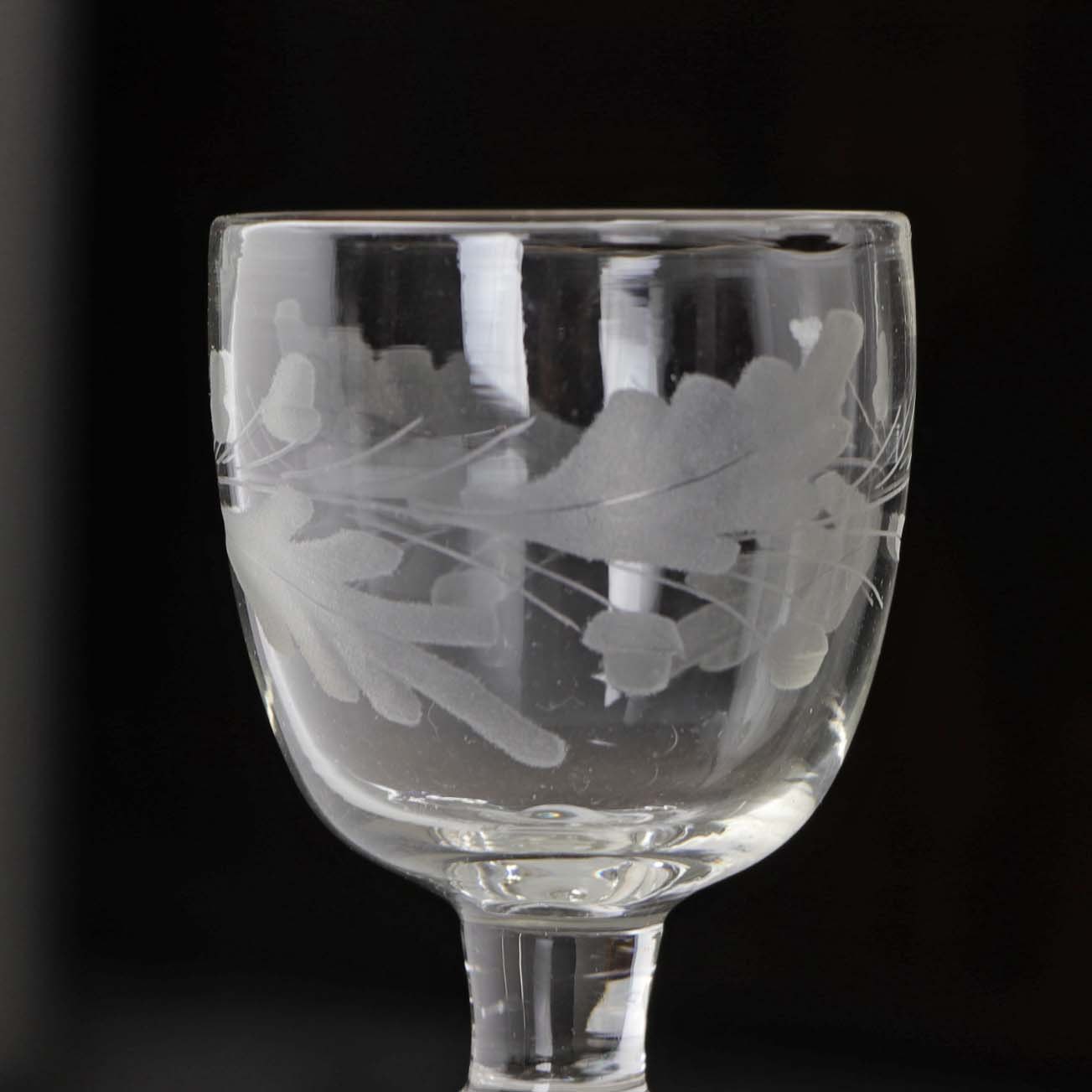 Antik hedvinsglas med egeløv slibning