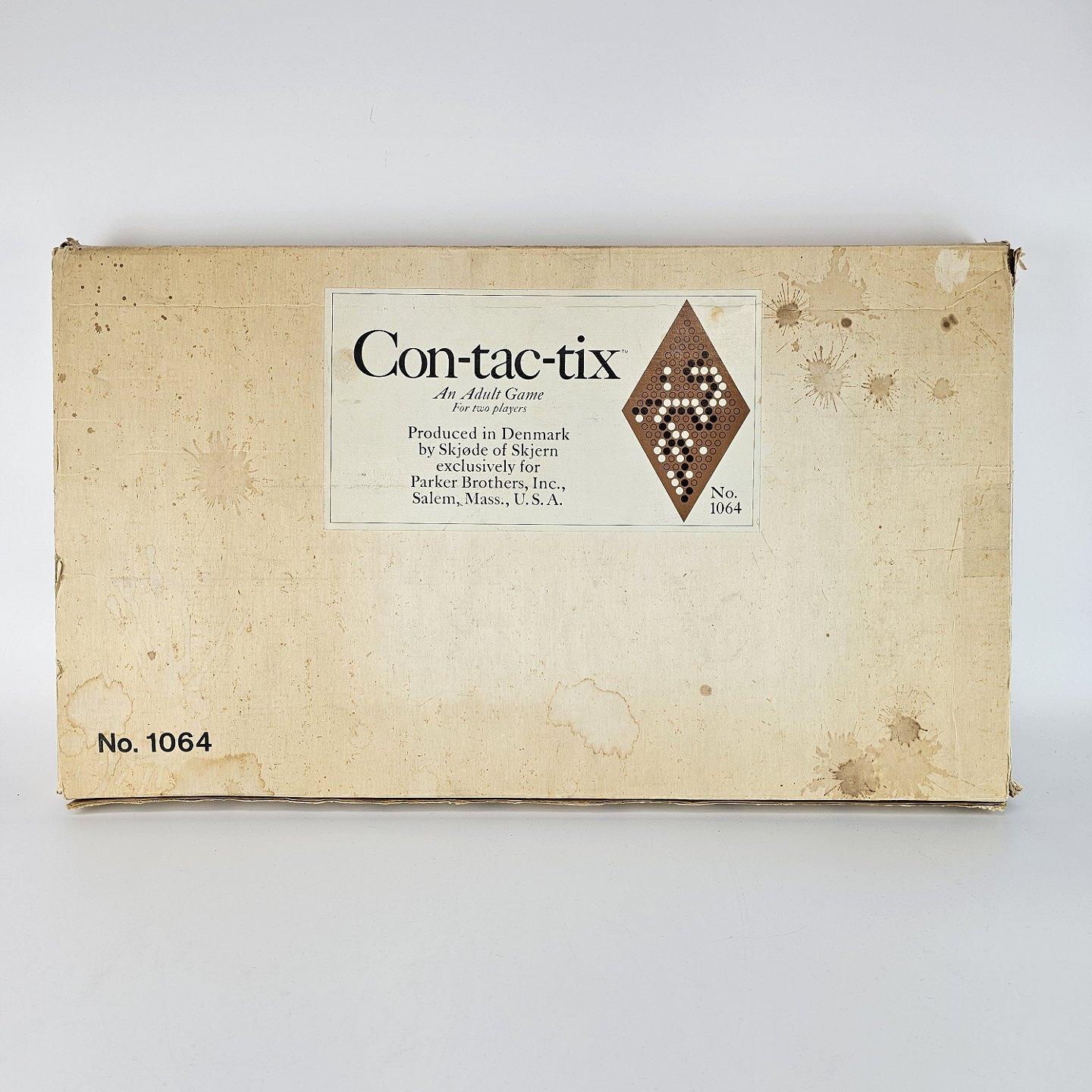 Brætspil Con-Tac-Tix. Leveres i original æske med spilleplade, brikker i læderposer og spillevejledning. Nr. 1064