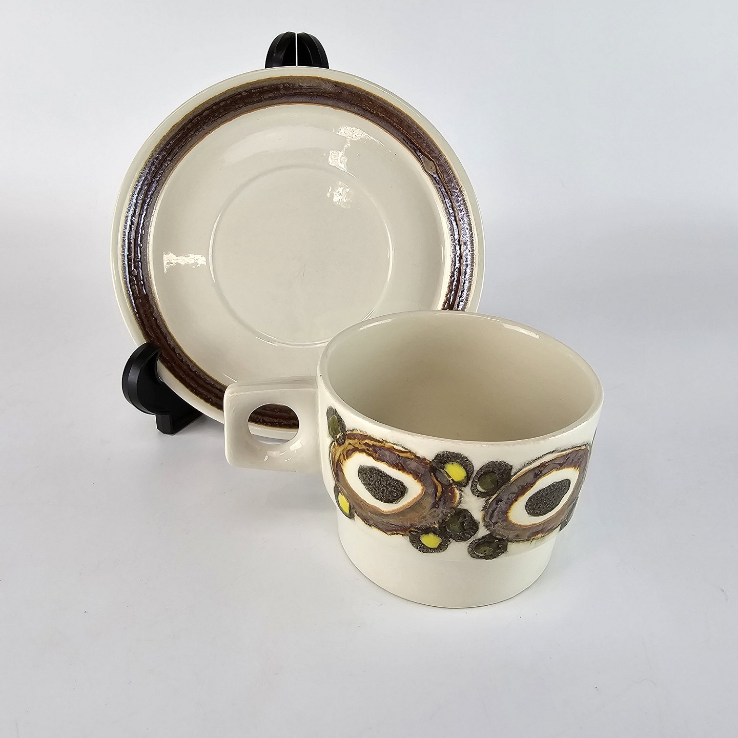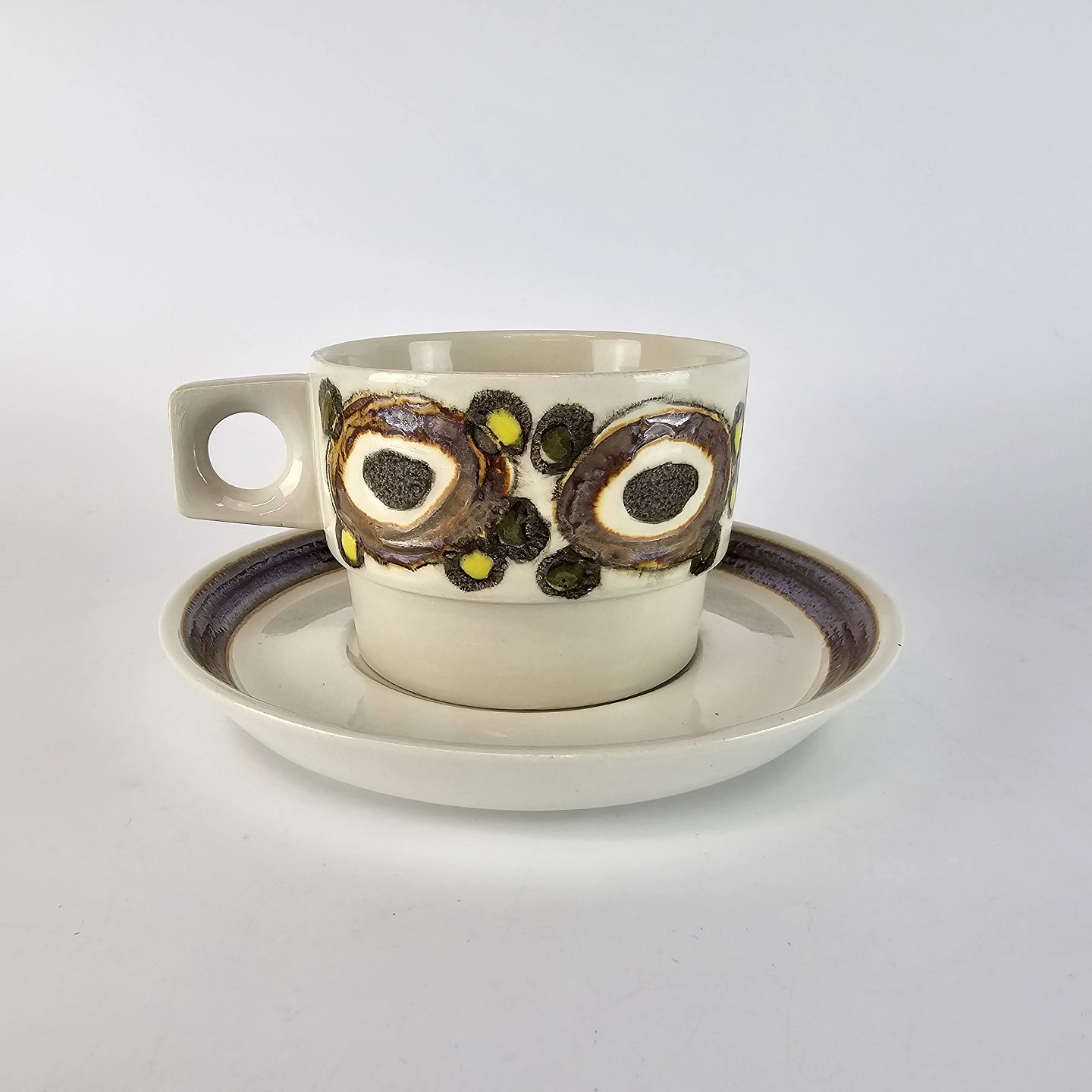 Kaffekop med underkop i fajance fra stellet Nucella nr. 3465