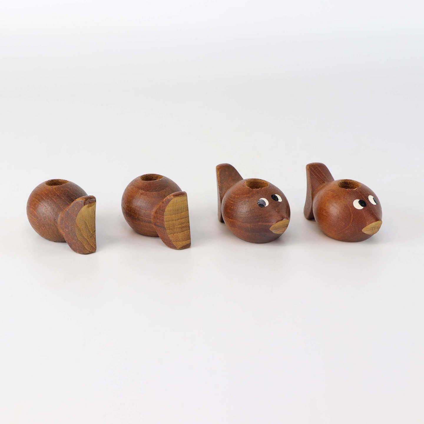 Kertestager i teaktræ formet som fisk