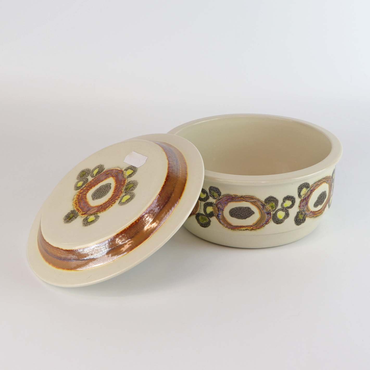 Lågkrukke i fajance med låg nr. 3467 fra stellet Nucella