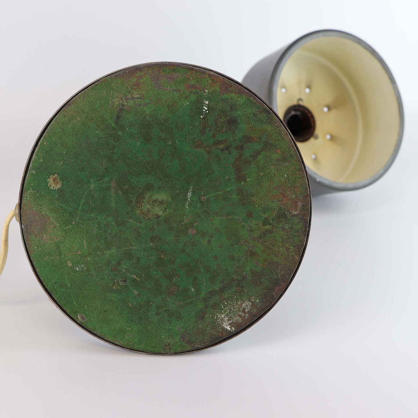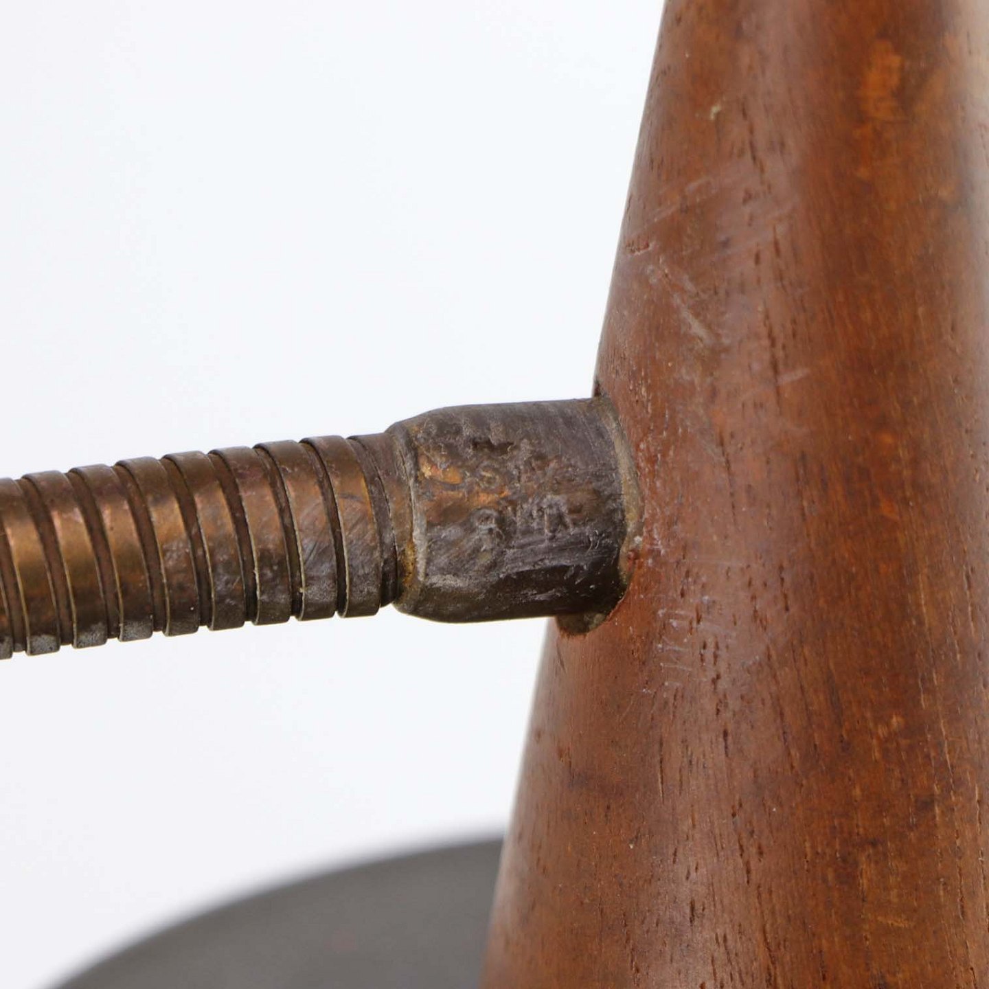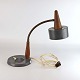 Bordlampe med flexarm i gråmalet metal og teaktræ