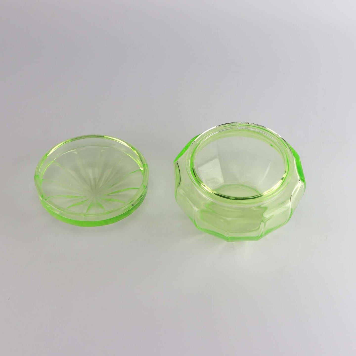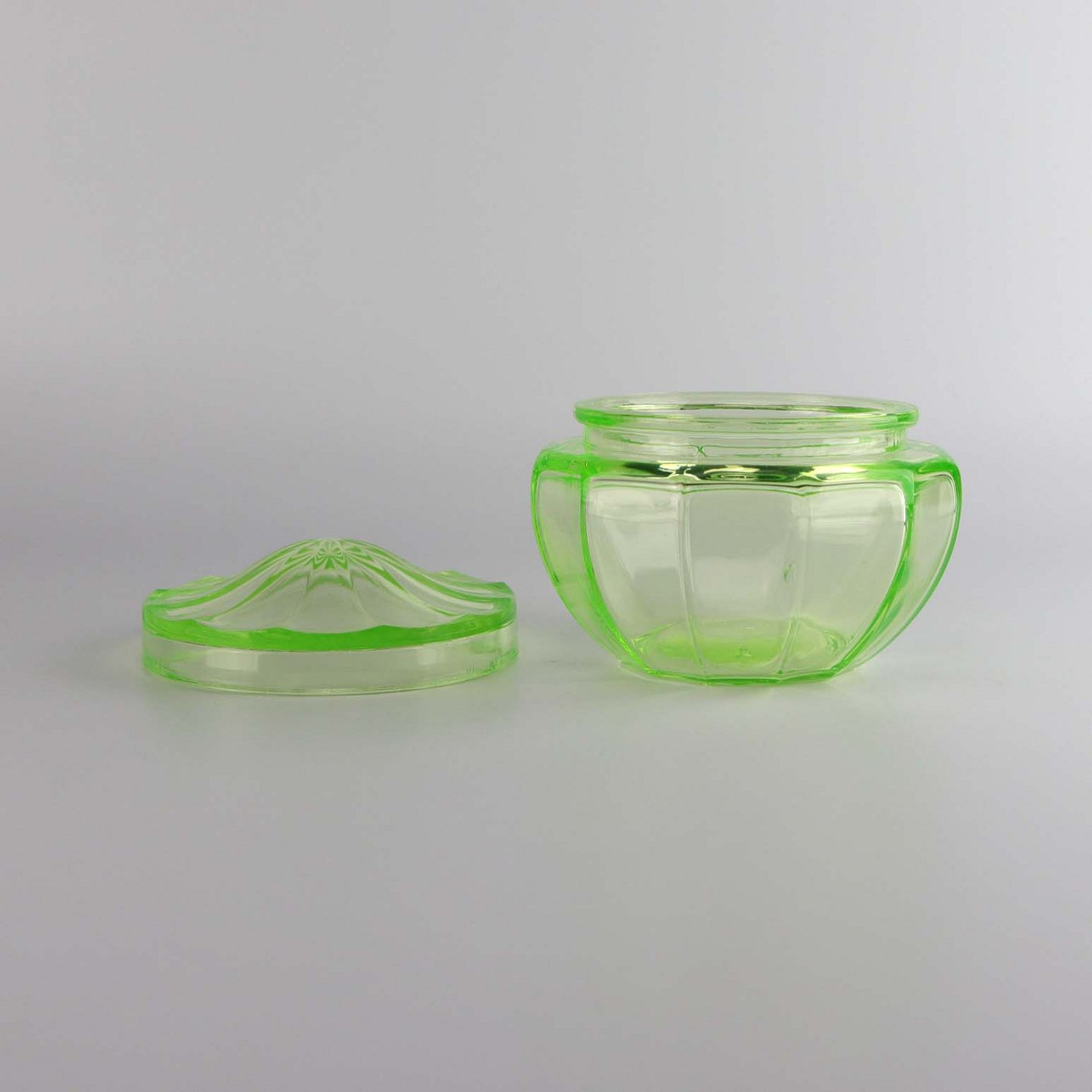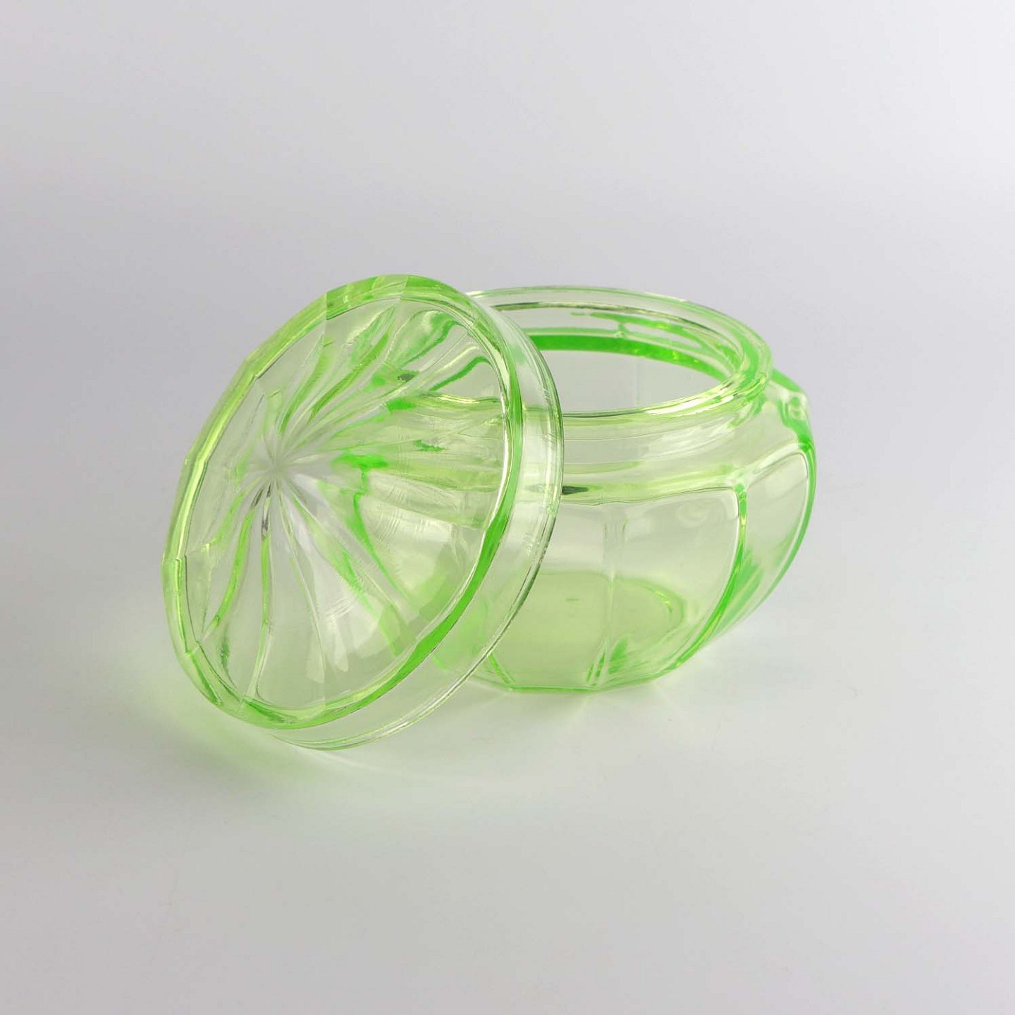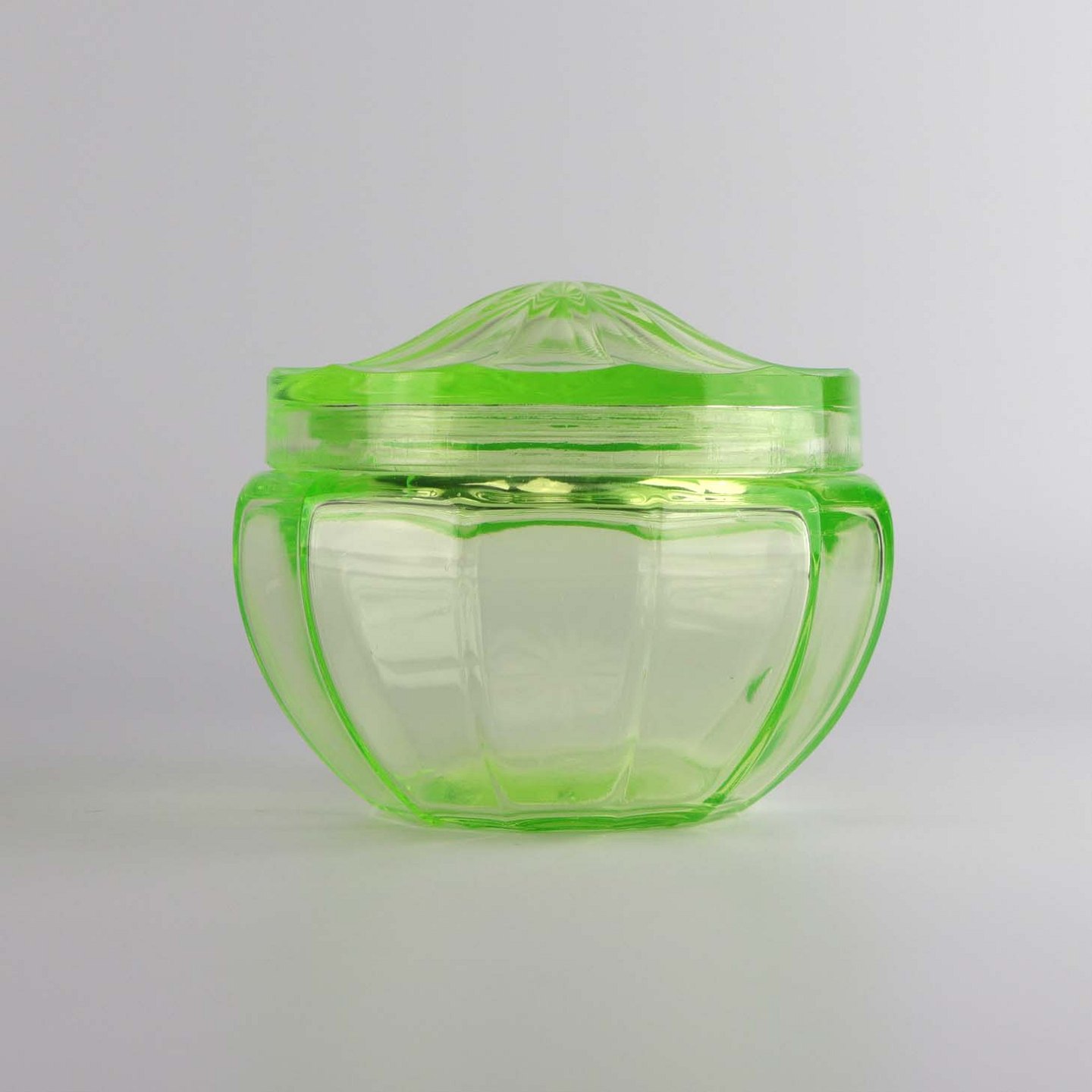 Krukke med låg i urangrønt glas