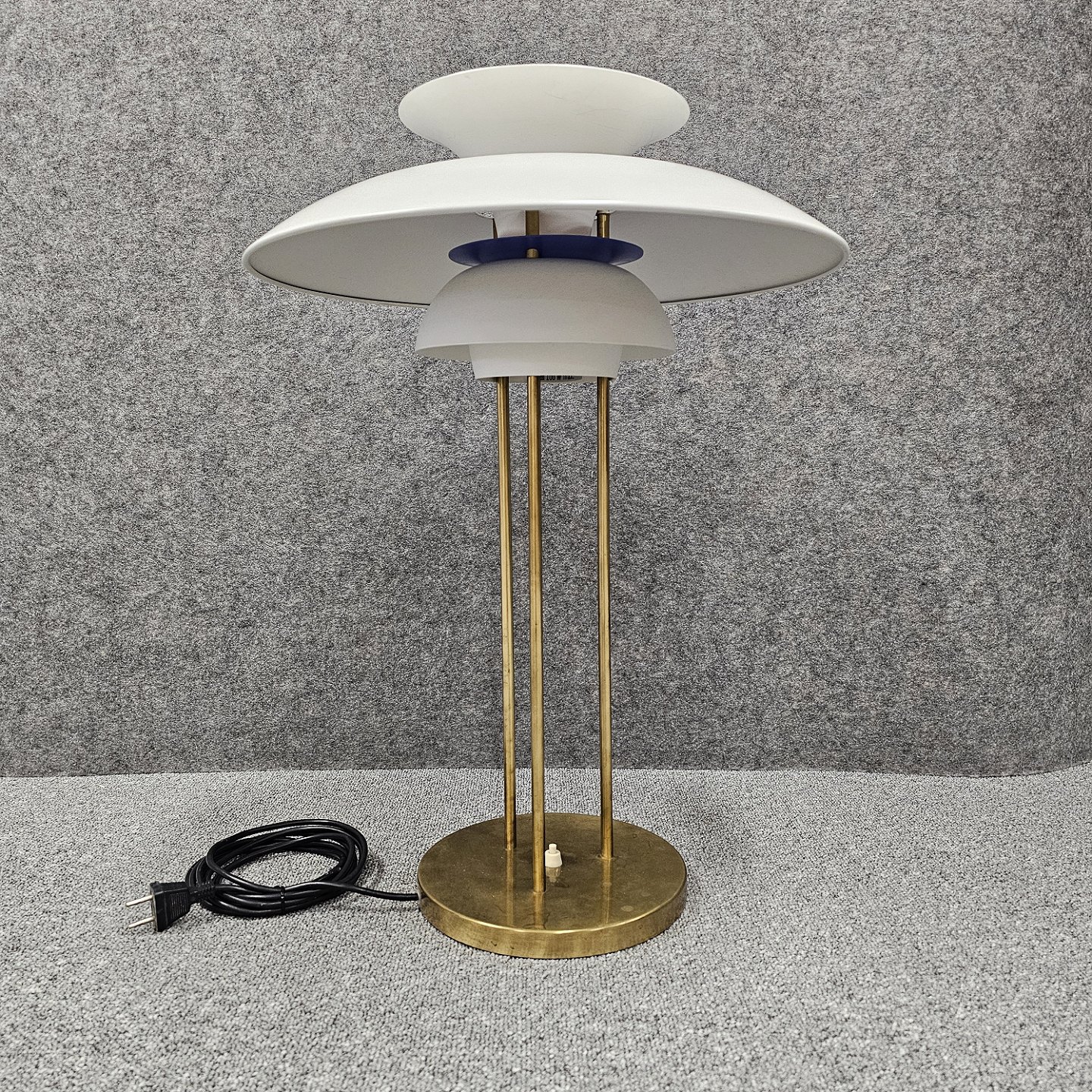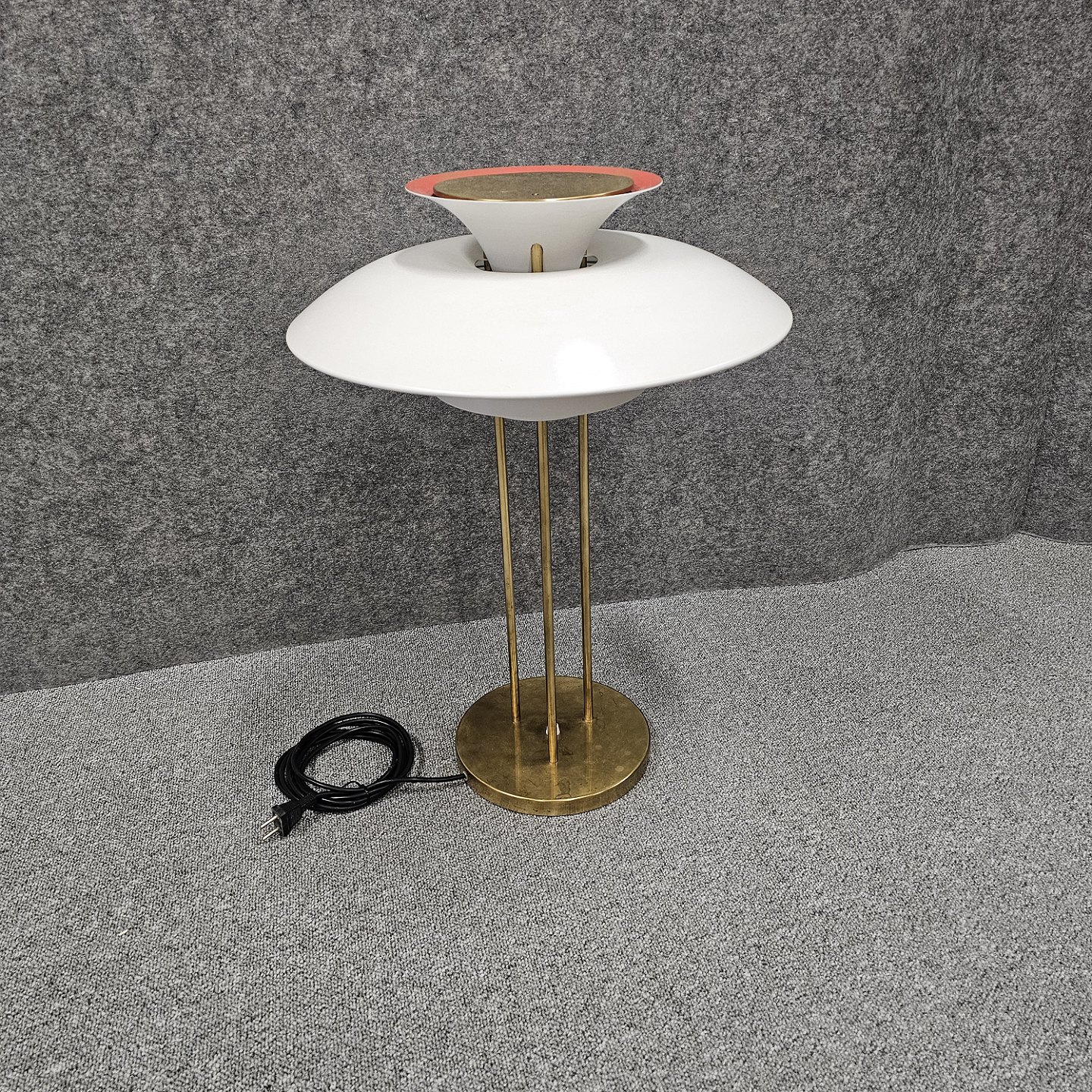 Bordlampe med hvid skærm og messing fod. Jubilæumsmodel nr. 27095