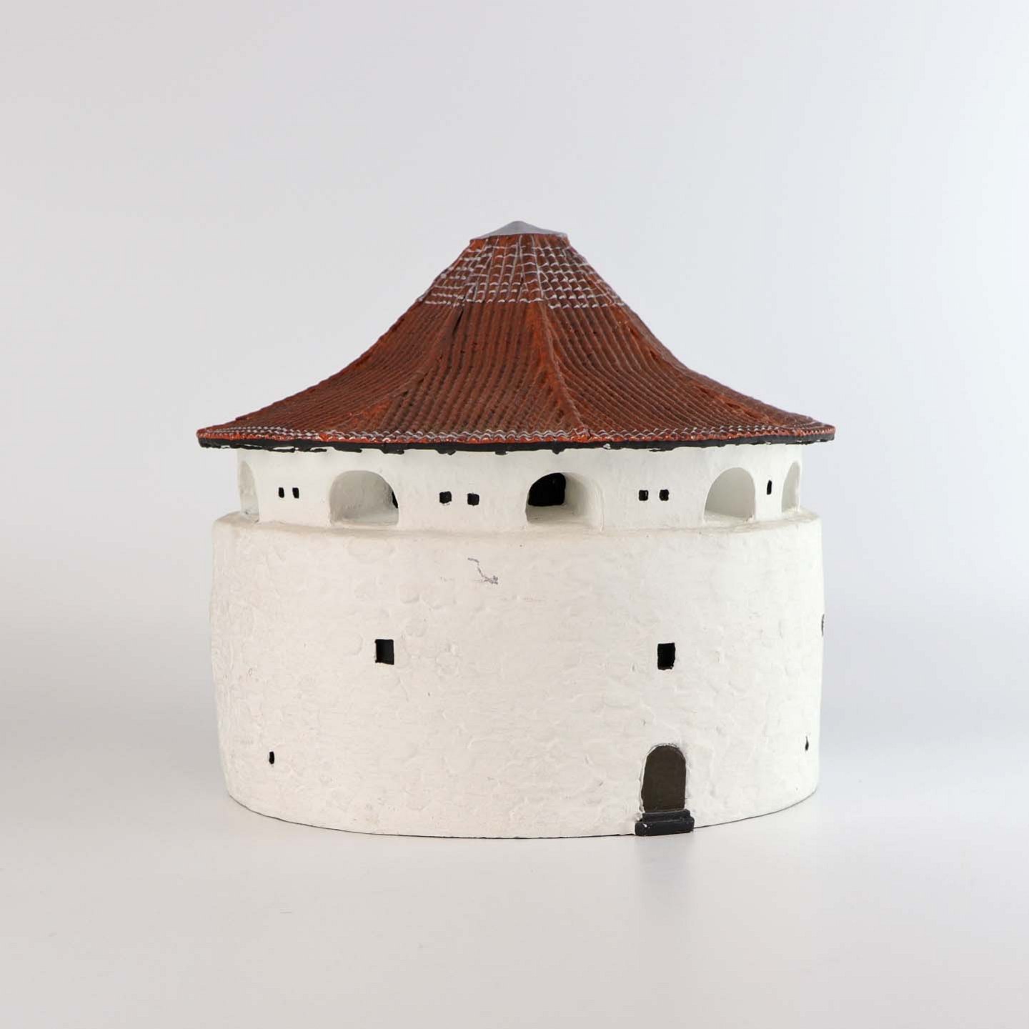 Miniature model i boks af Krudttårnet i Frederikshavn model 54.1