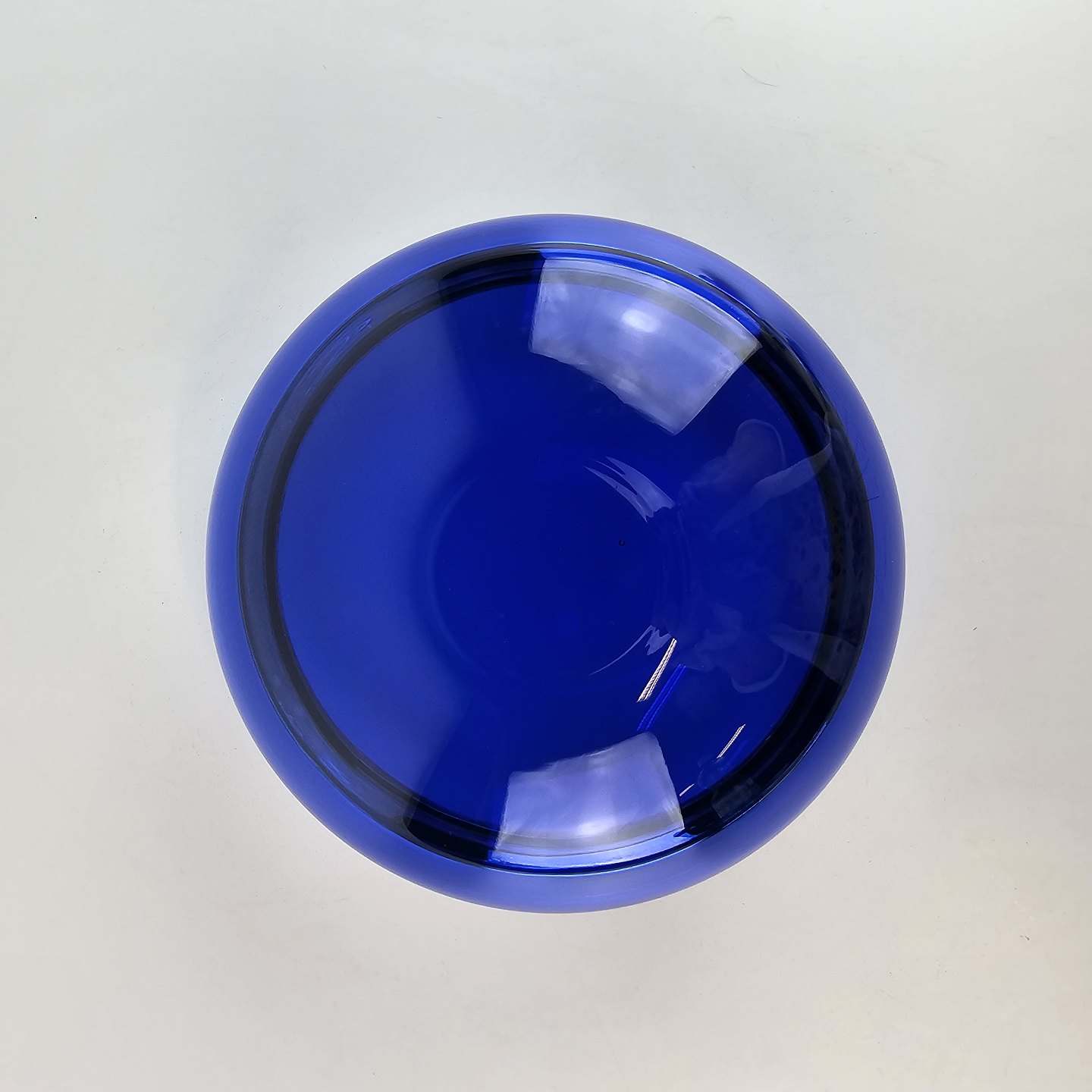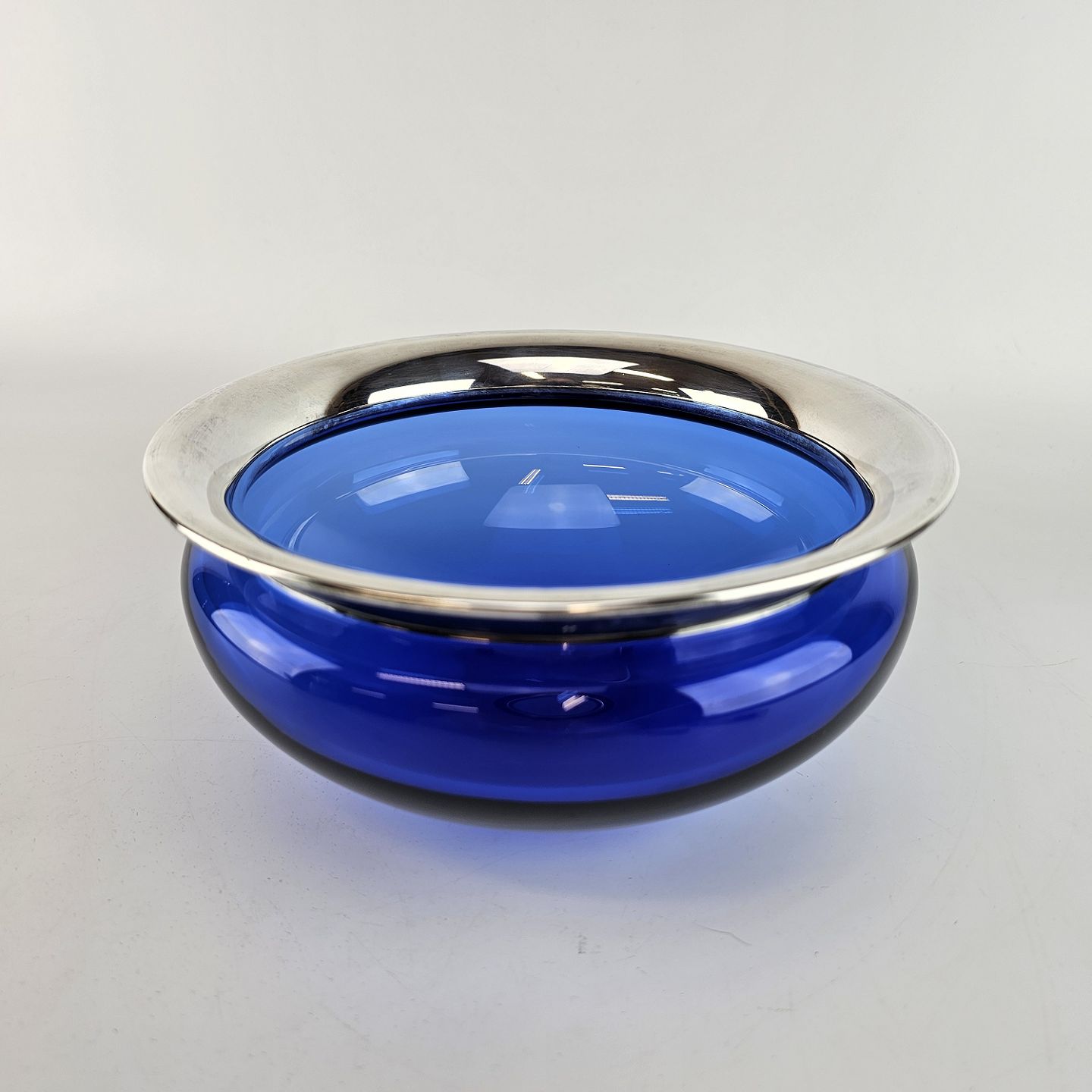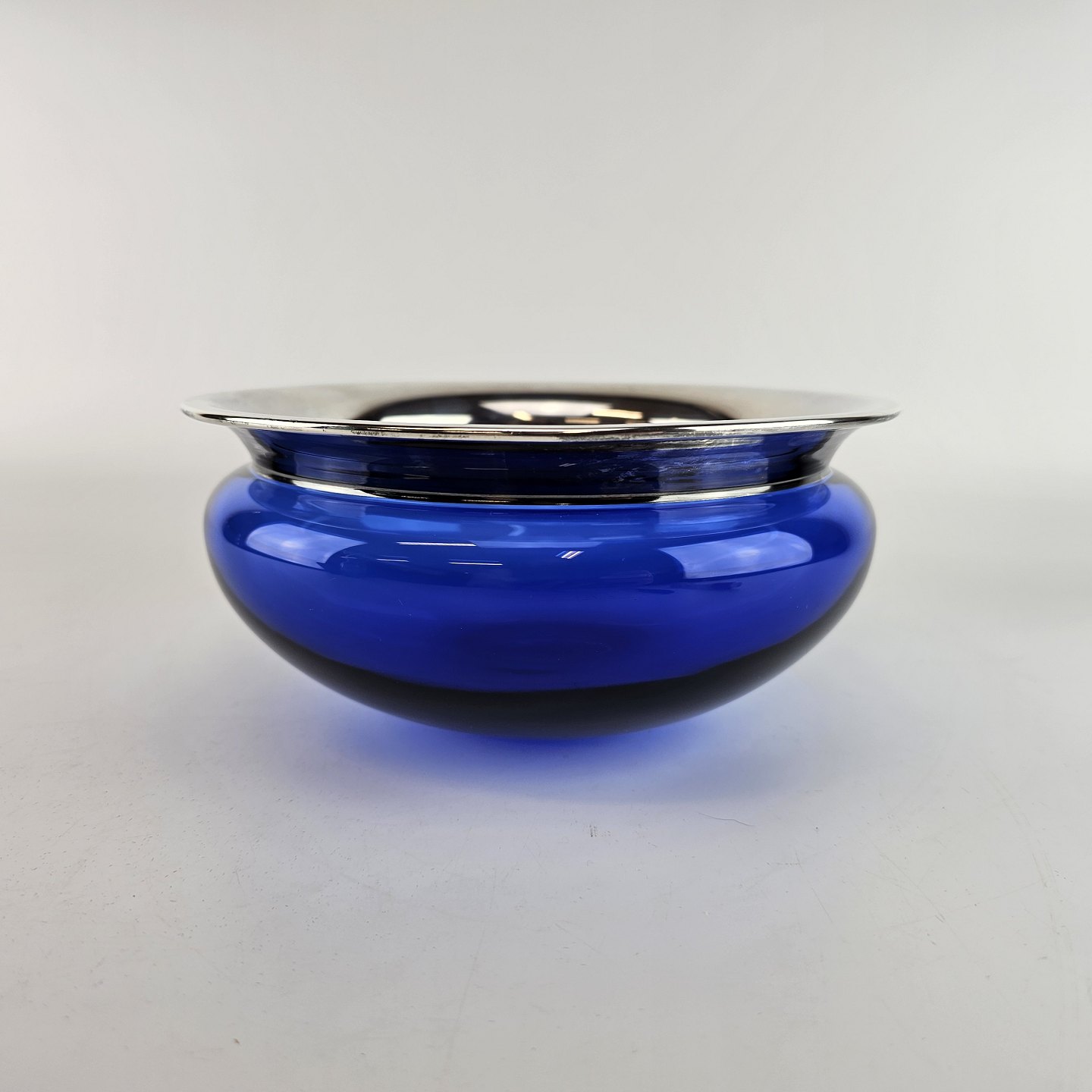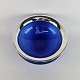 Mundblæst glasskål i blå, kanten er dyppet i sølv. Fra serien Saturn