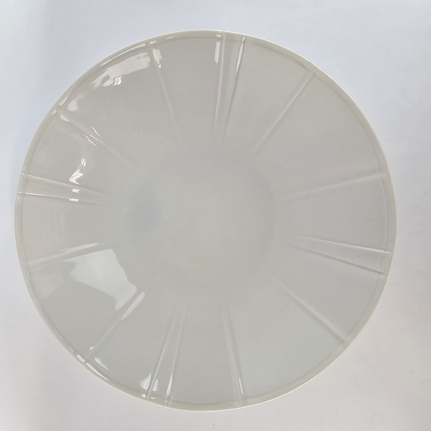 Offenbach er af hvidt porcelæn med et mønster af linjer, der er lavet i porcelænet inden glaseringen. Brugsspor kan forekomme