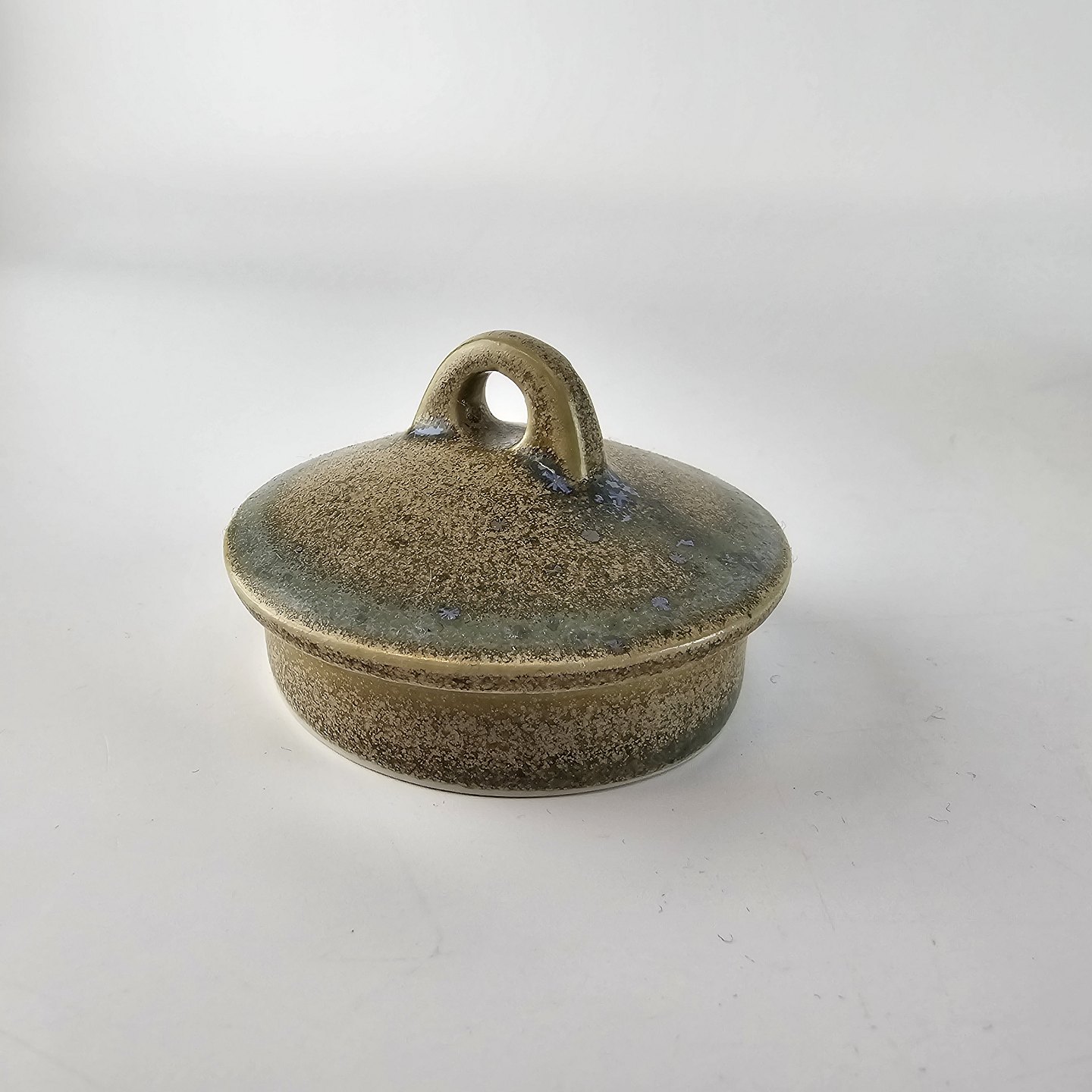 Kakaokande af stentøj og dekoreret med en grønlig nuancefarvet glasering.