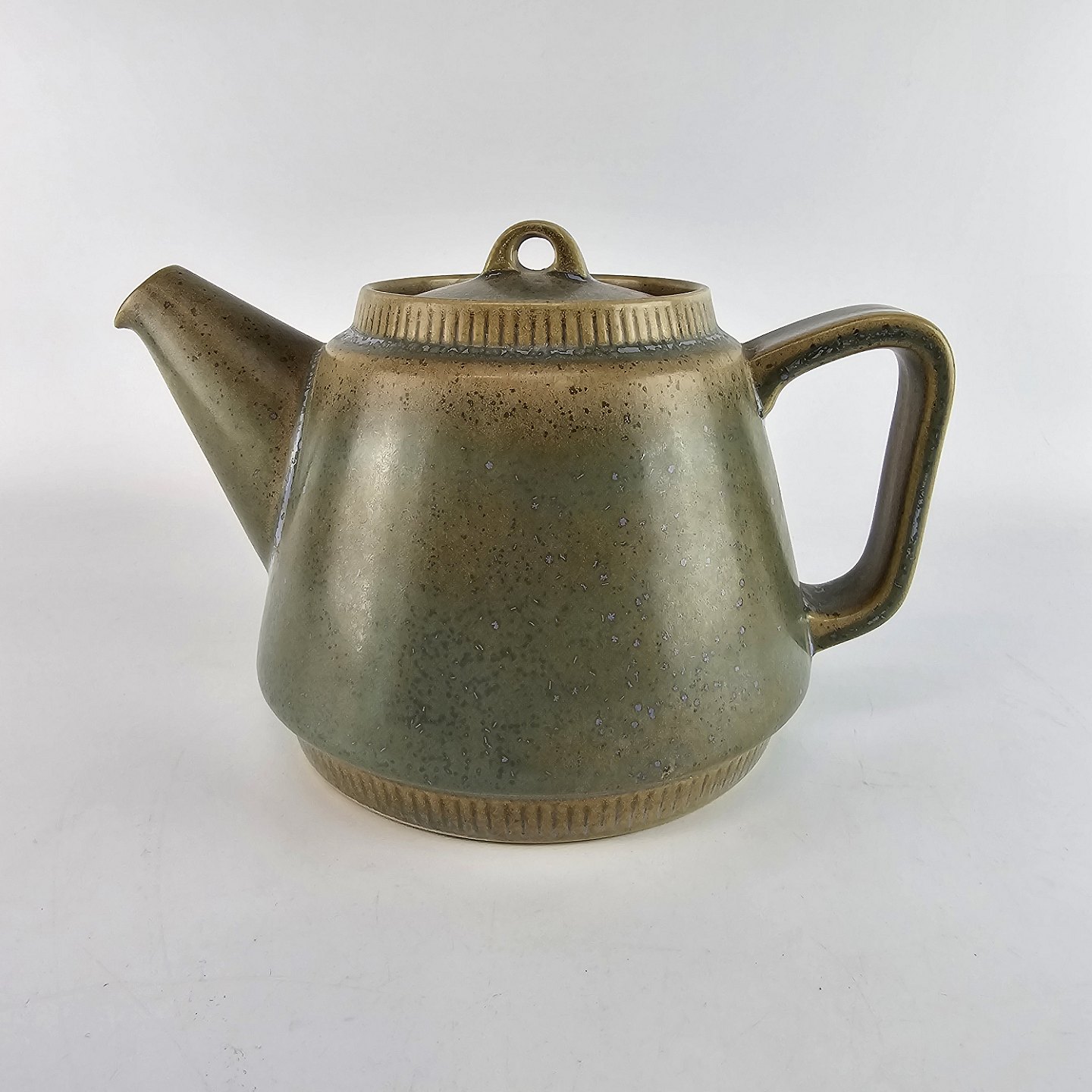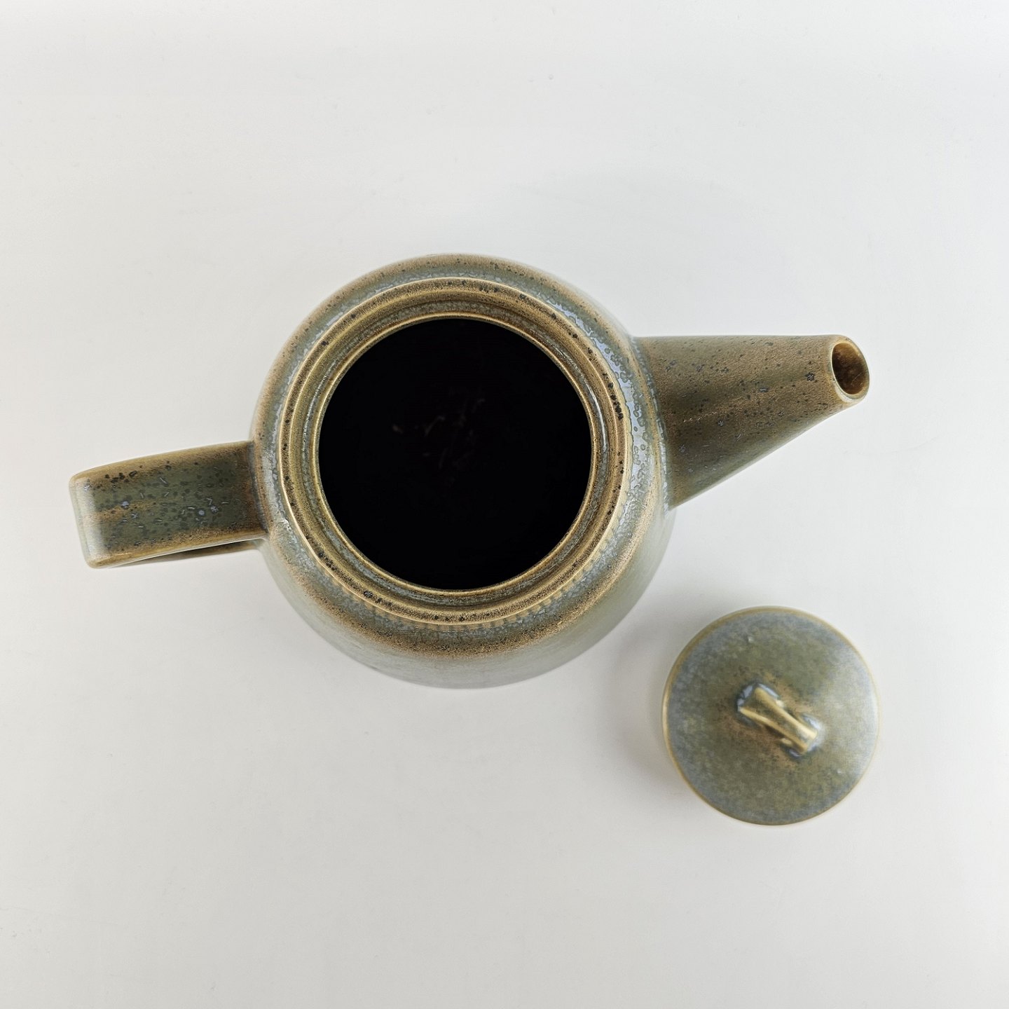 Tekande med låg af stentøj og dekoreret med en grønlig nuancefarvet glasering. Fra serien Knabstrup - ofte kaldet Grøn Nøddebo
