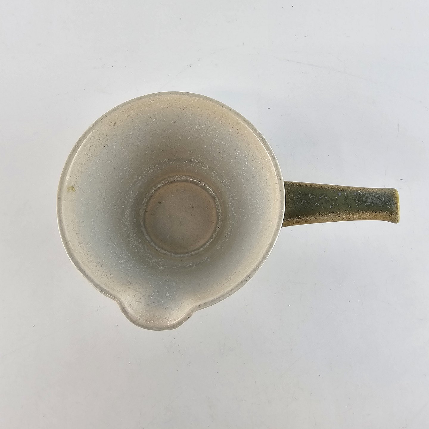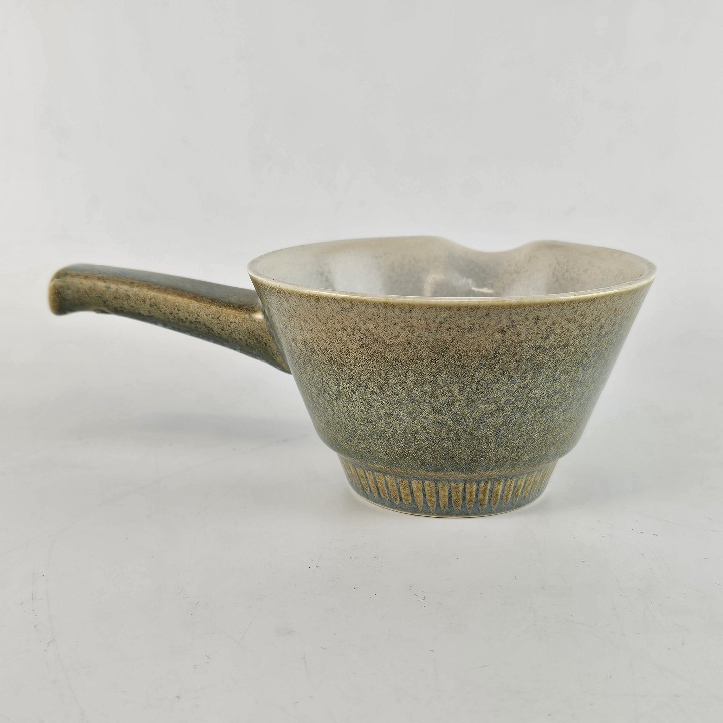 Smørnæb af stentøj og dekoreret med en grønlig nuancefarvet glasering.