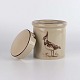 Stel i beigefarvet stentøj med forskellige dyremotiver i brun nuance