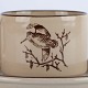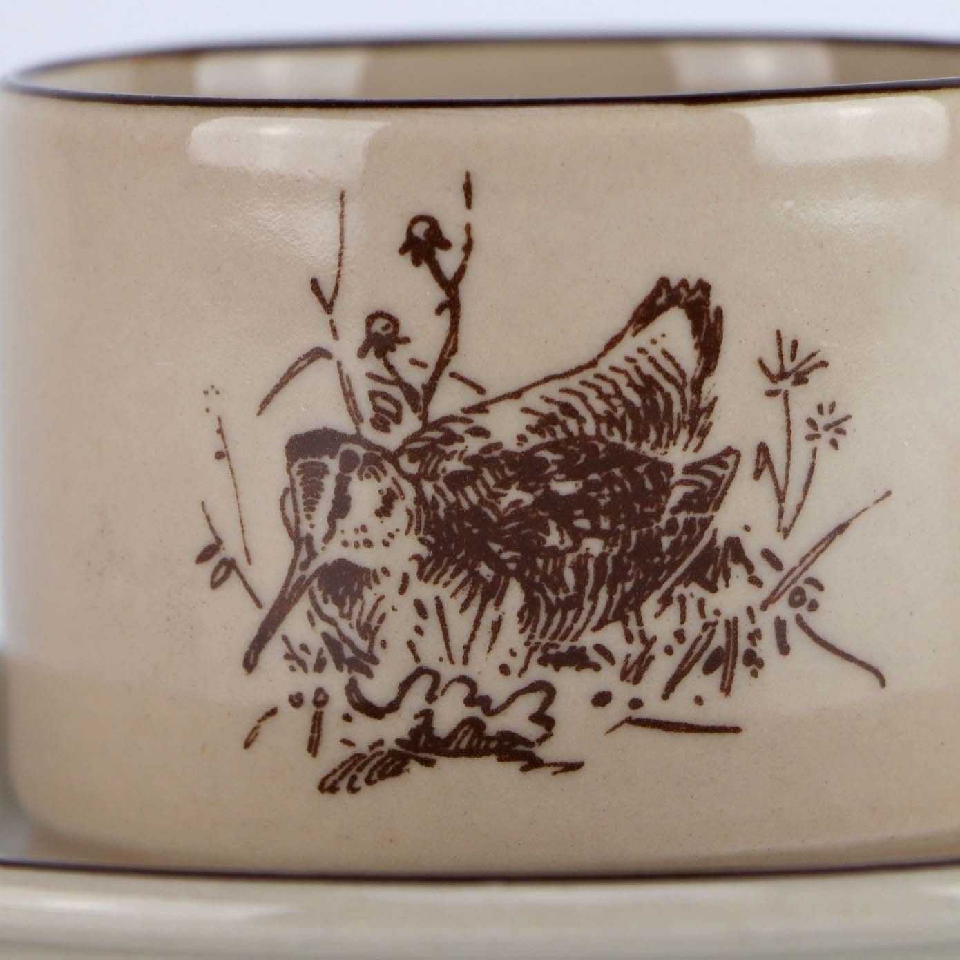 Stel i beigefarvet stentøj med forskellige dyremotiver i brun nuance
