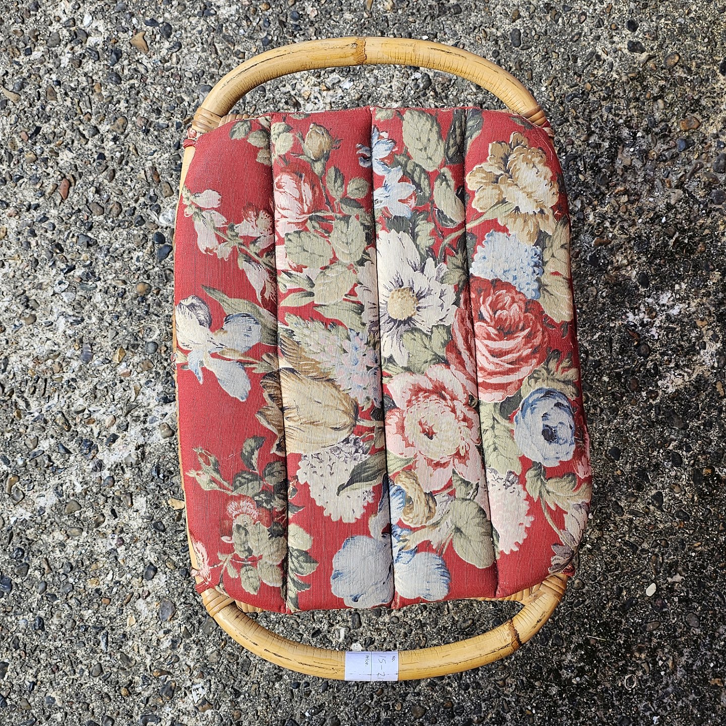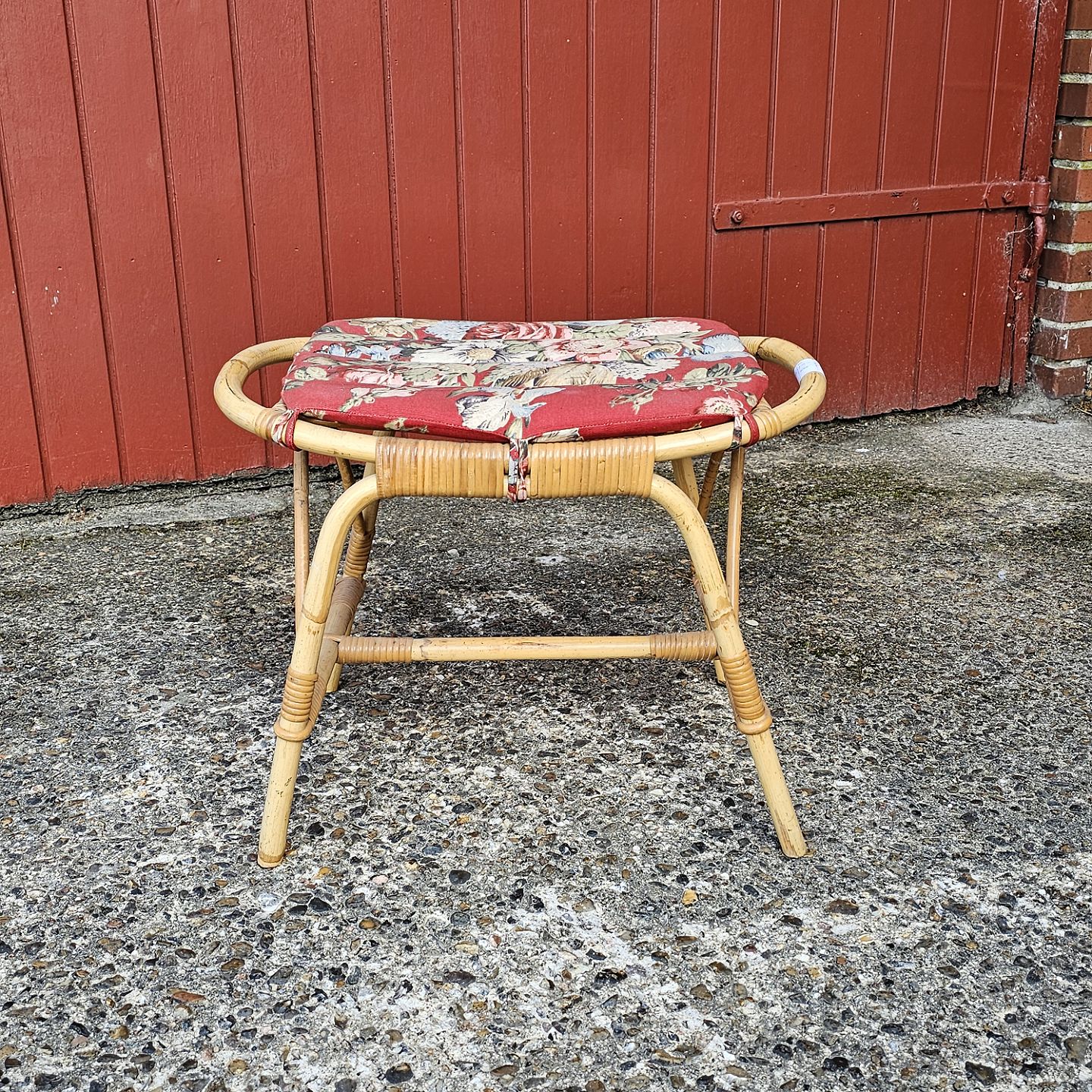 Taburet af bambus med mønstret stofpude