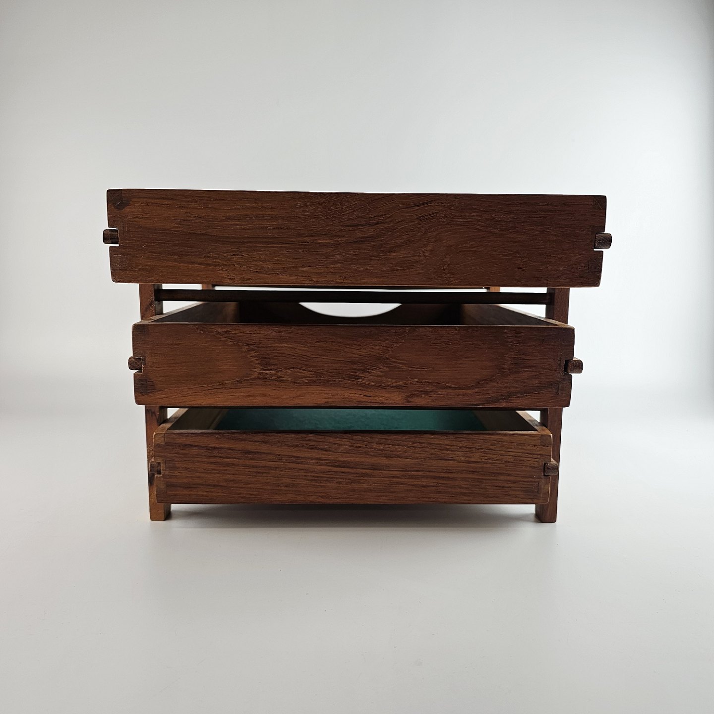 Brevkasse med tre skuffer i teak.