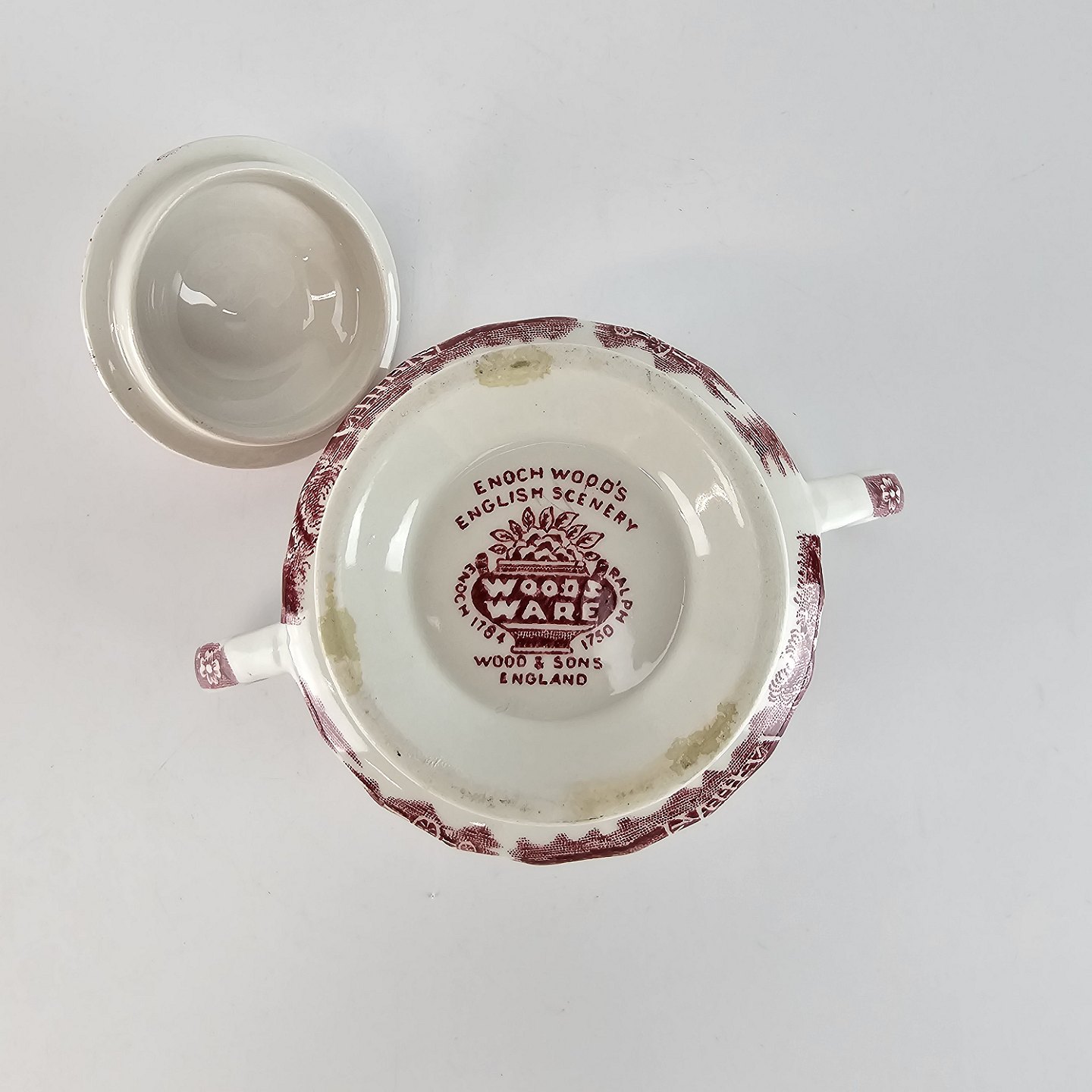 Sukkerskål med låg fra det engelske stel Rød Paris (Enoch wood's, English scenery)