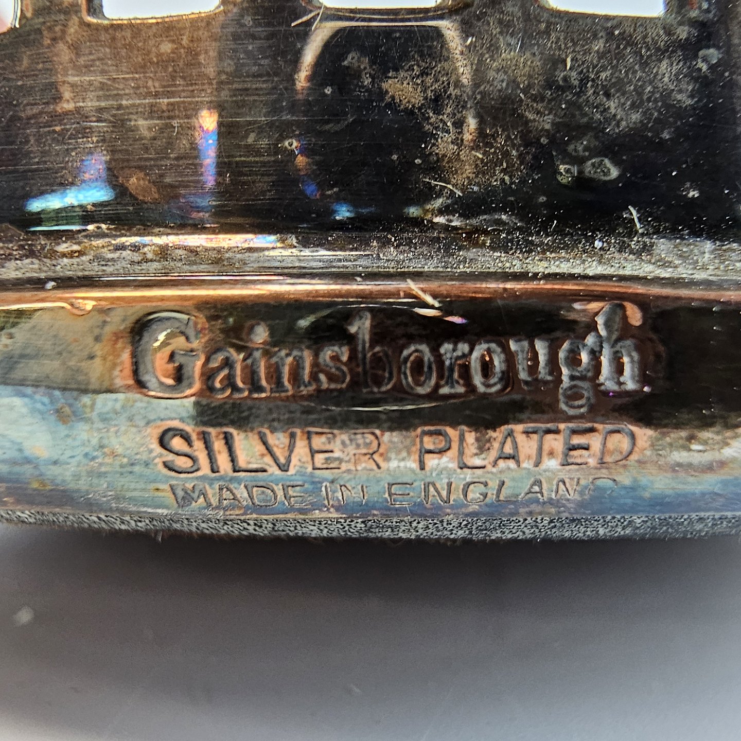 Kurv belagt med sølv og med bund af træ. Bordskåner til rødvinsflasker