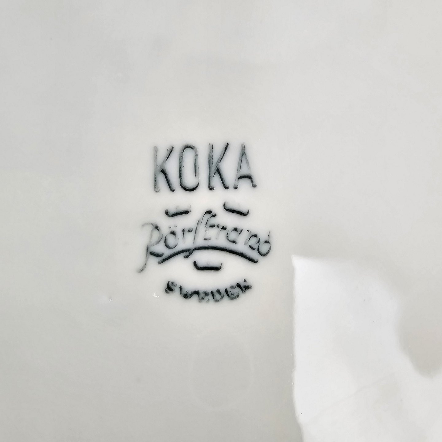 Blå Koka er af hvidt glaseret porcelæn med et bånd af mørk blå