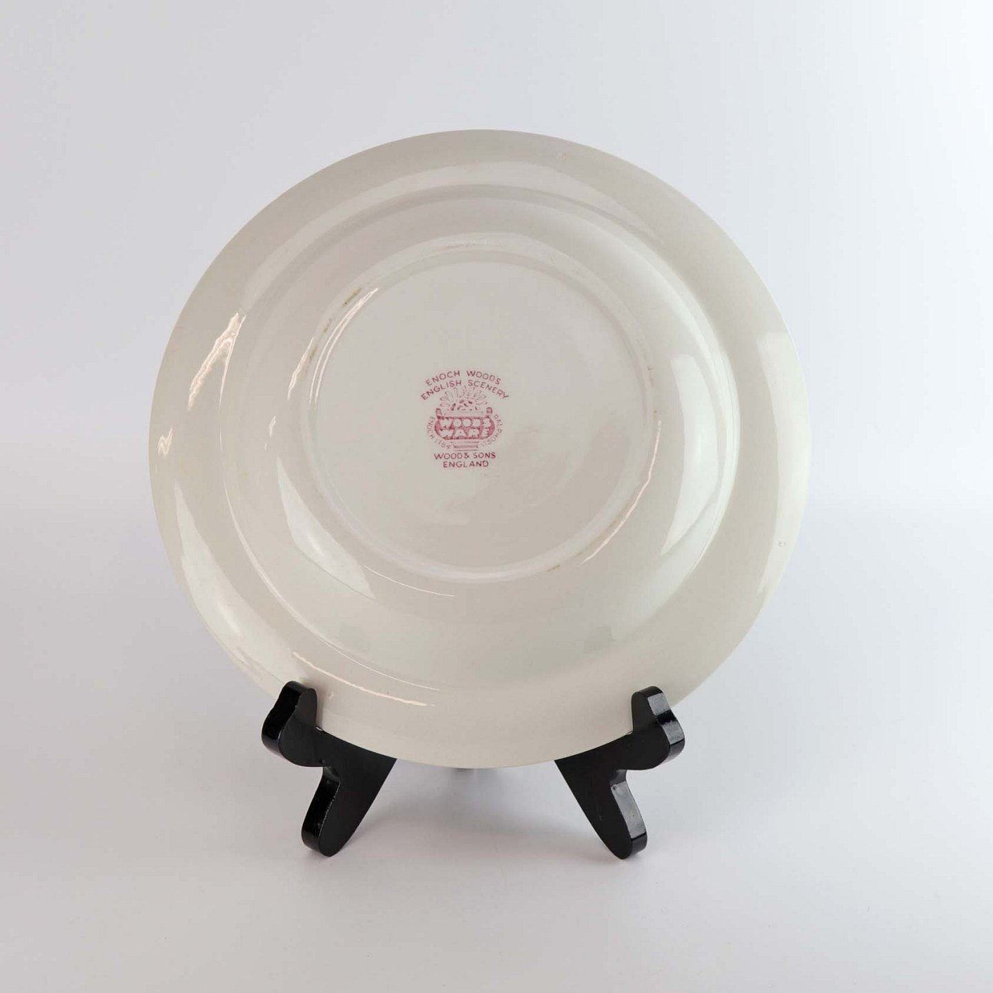 Dyb tallerken med bred kant fra det engelske stel Rød Paris (Enoch wood's, English scenery)