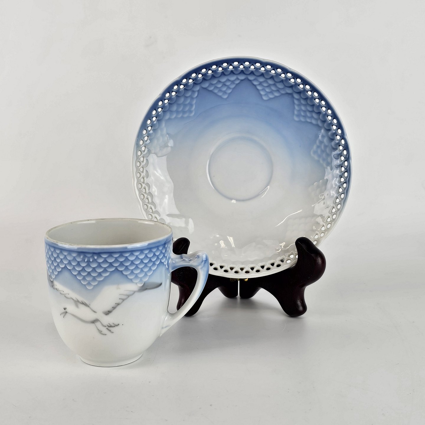 Kop med underkop i porcelæn fra stellet Mågestel Helblonde nr. 461