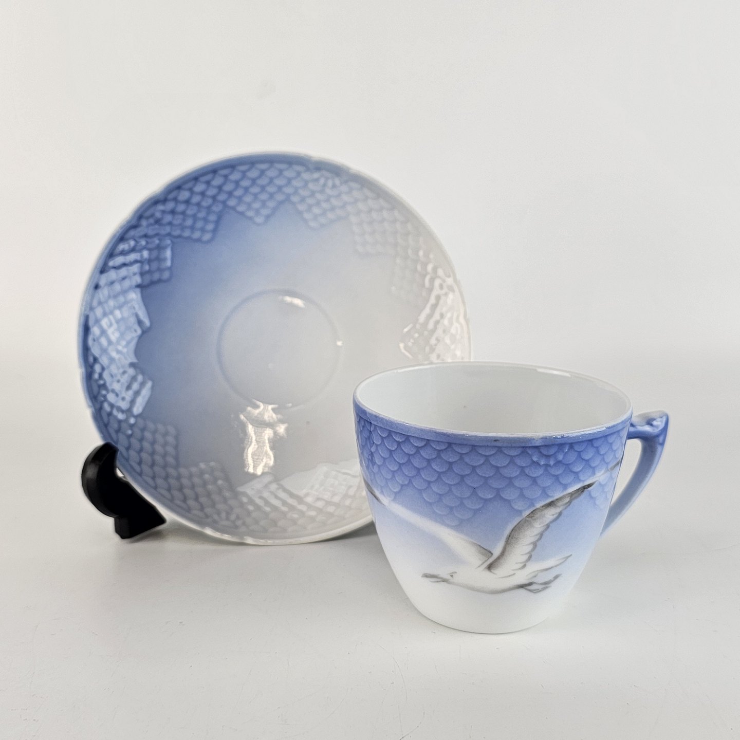 Kop med underkop i porcelæn fra stellet Mågestel nr. 104