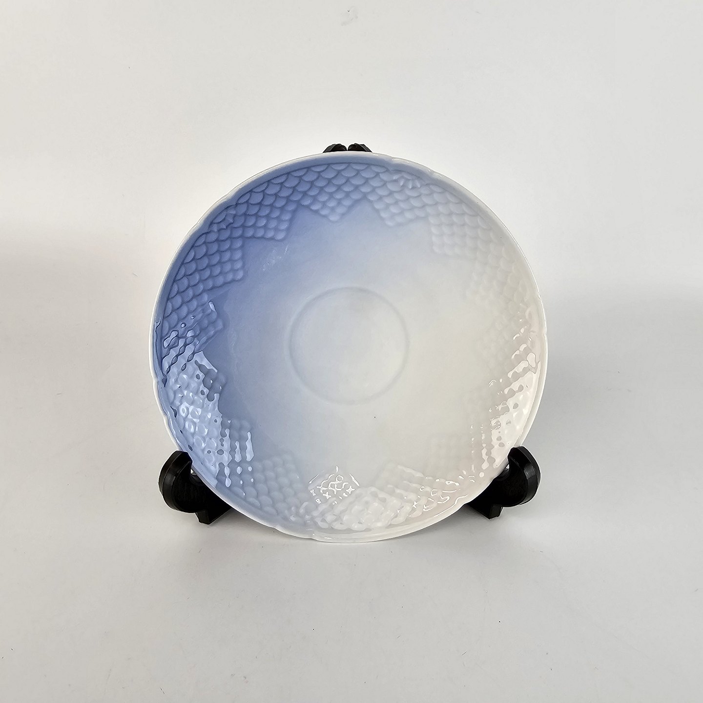 Service i glat porcelæn med skælform i blålige farver og motiv af måger