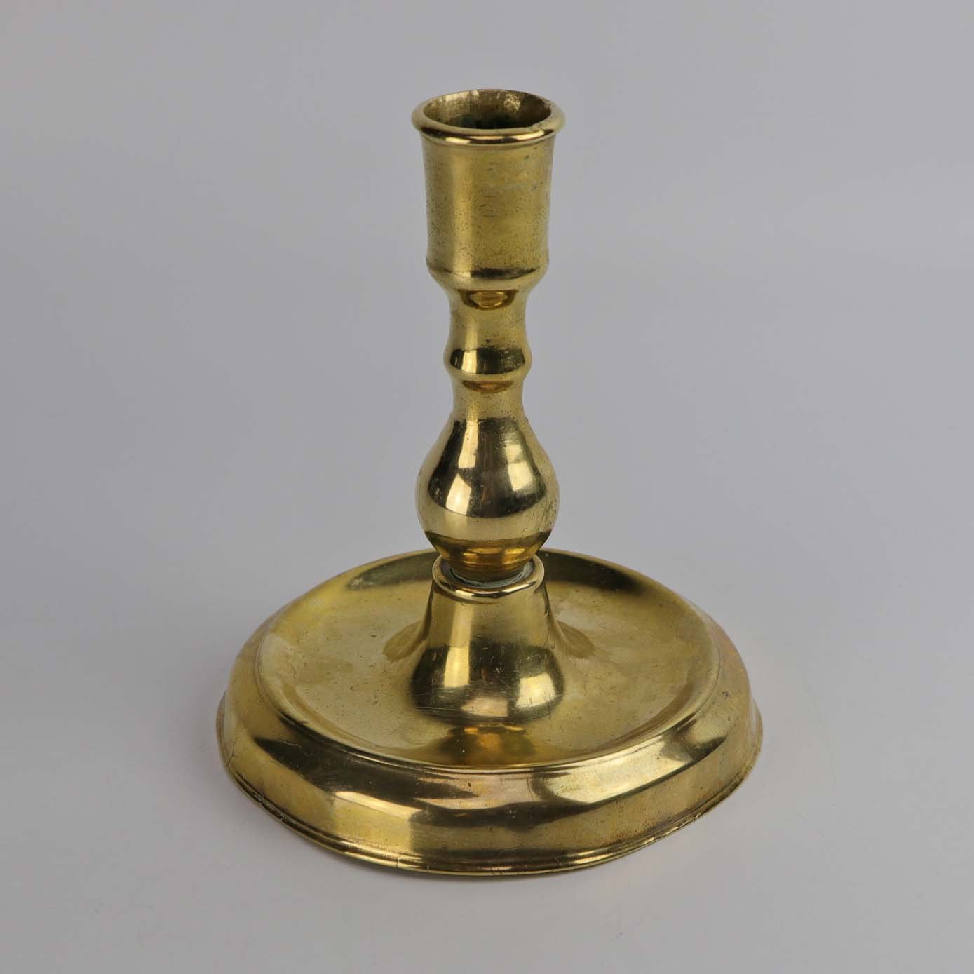 Antik Næstved lysestage i messing med blyindsats i bunden