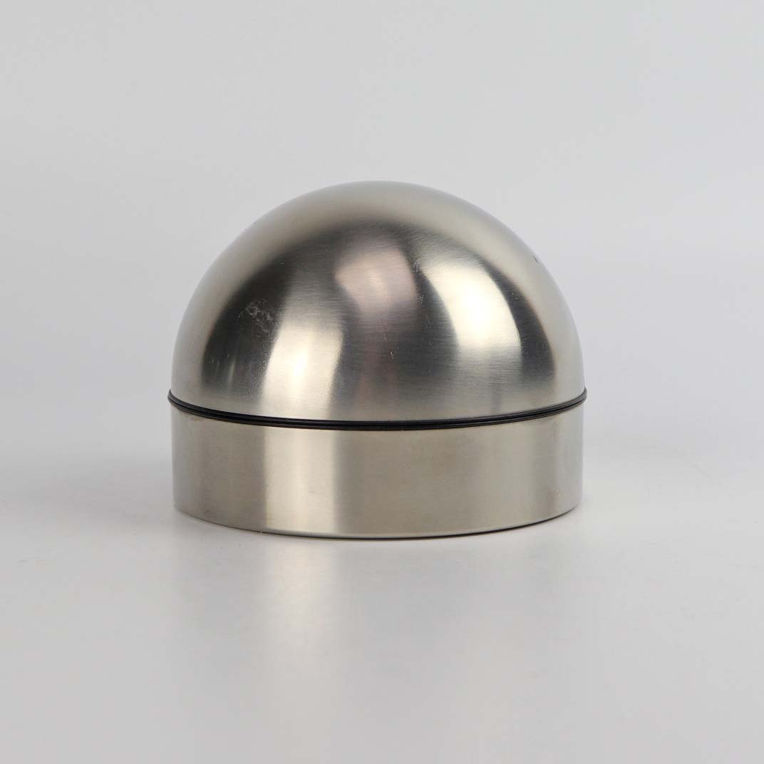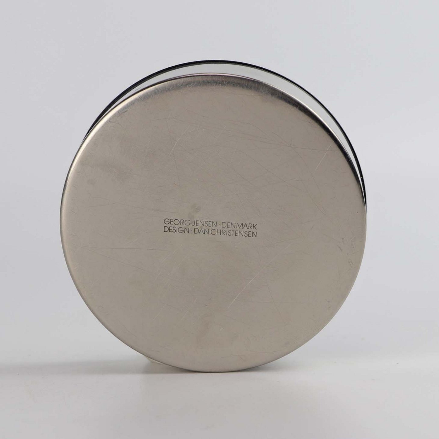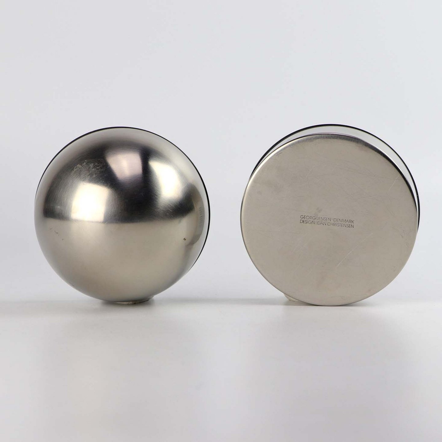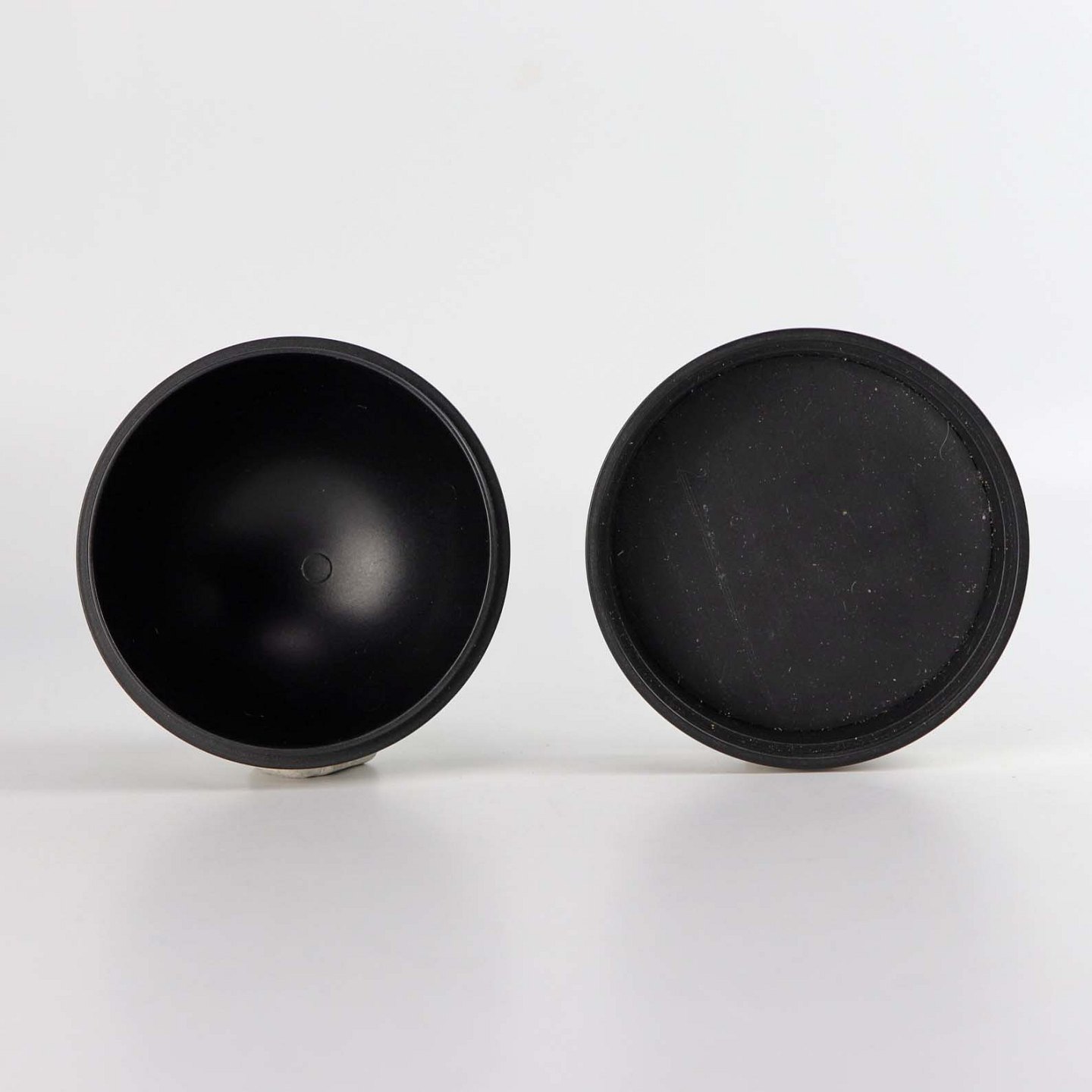 Raflebæger i rustfrit stål med inderside af sort plast. Med bægeret følger to sorte terninger