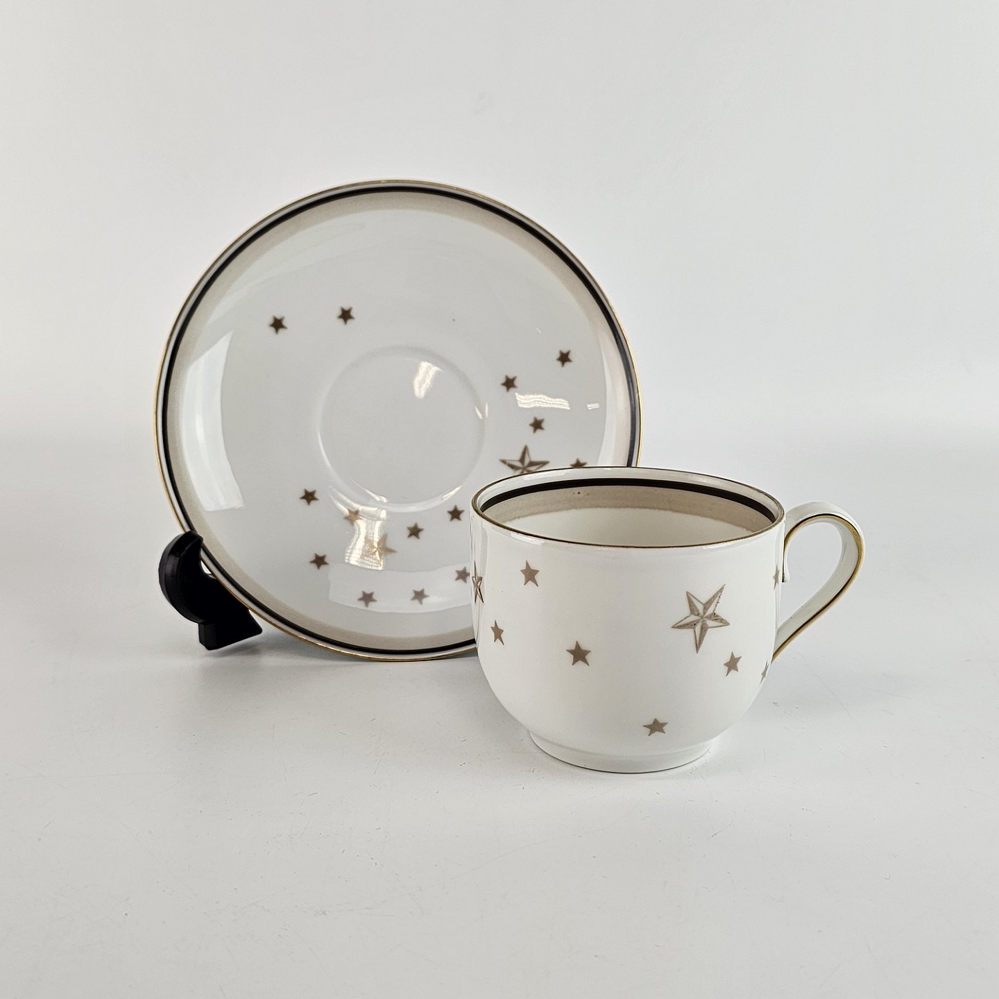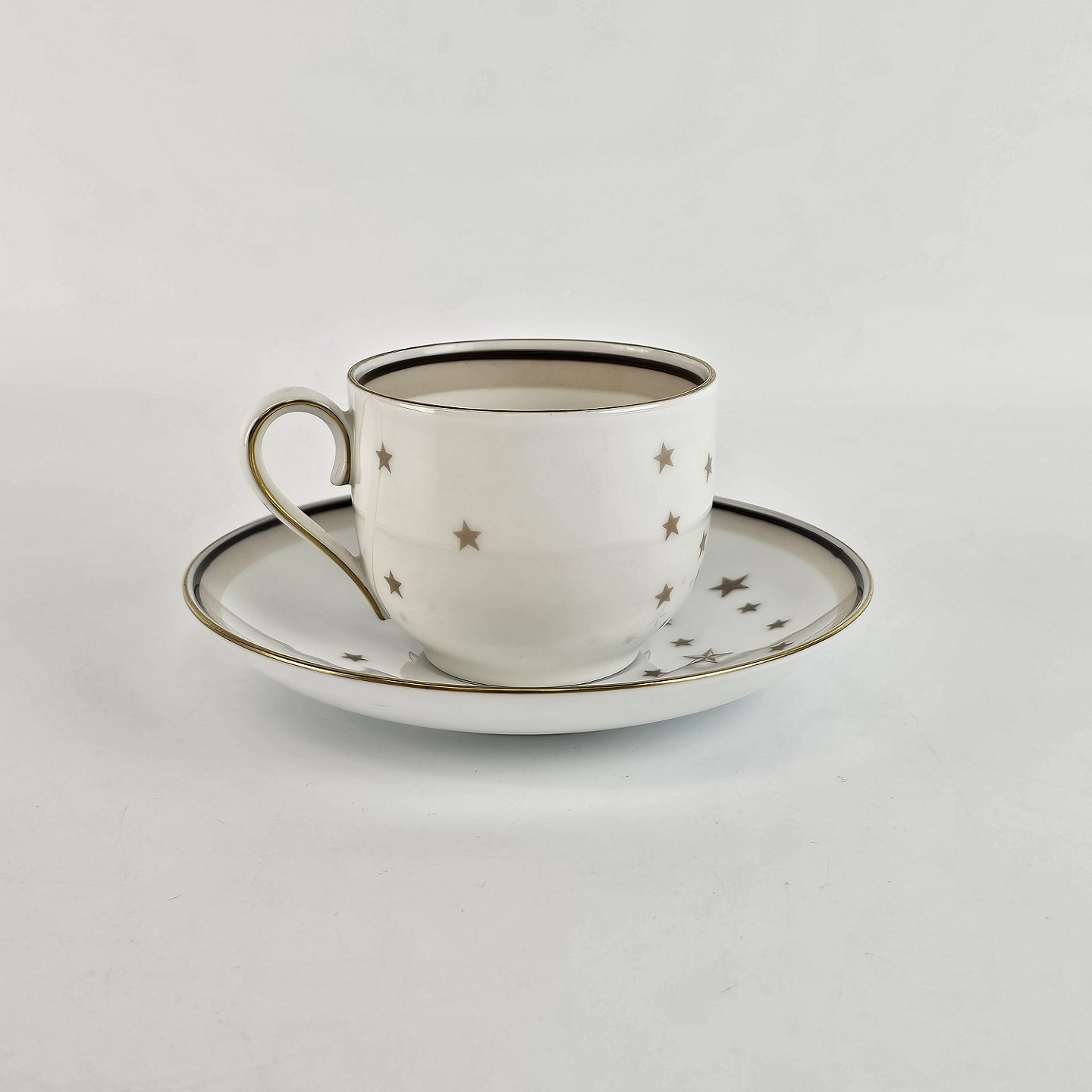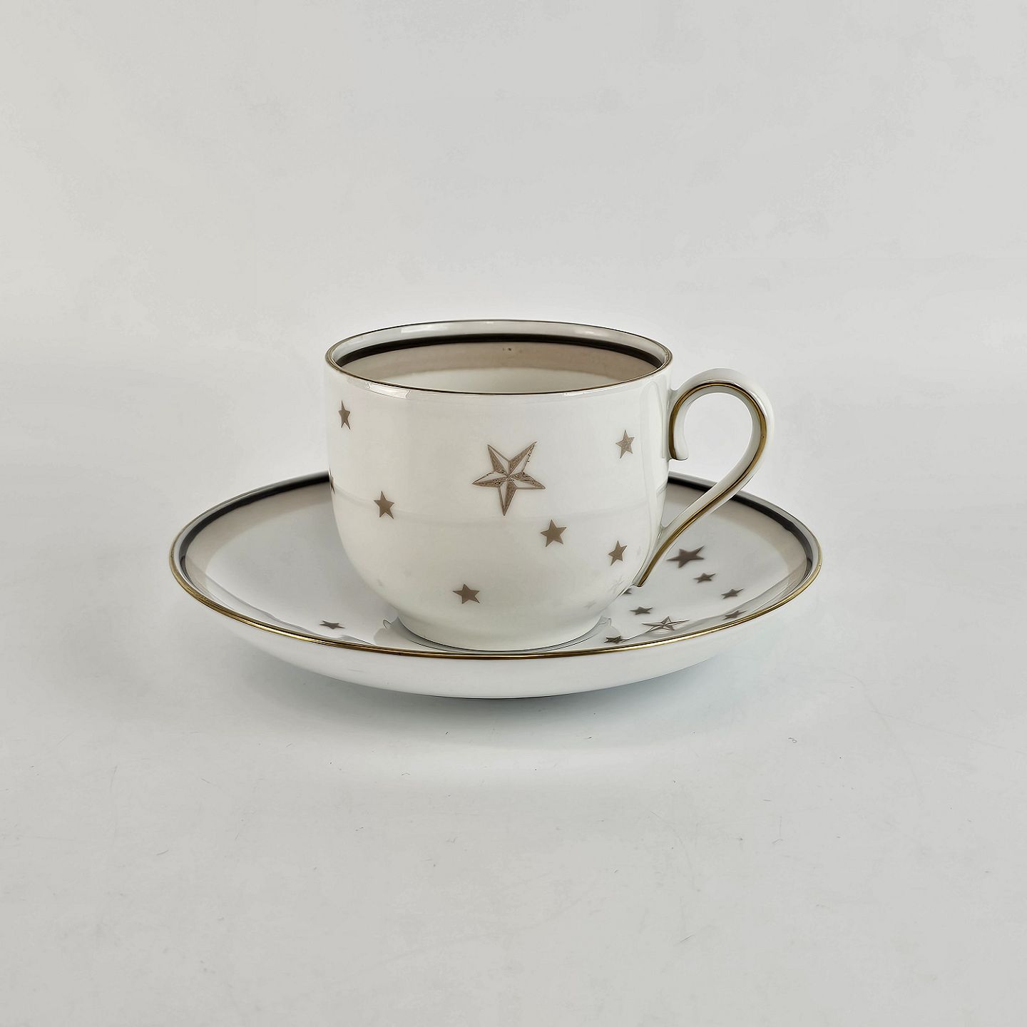 Mælkevejen er af hvidt porcelæn dekoreret med stjerner, en brun ring og guldkanter. Brugsspor kan forekomme