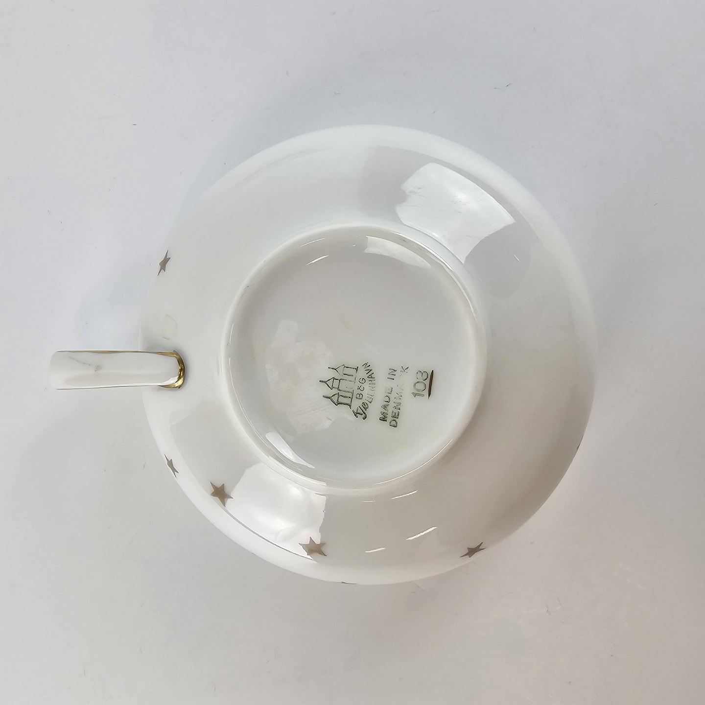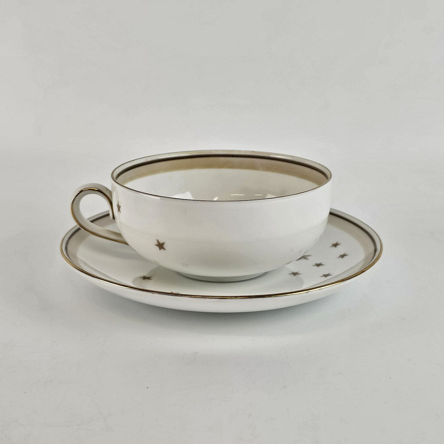 Mælkevejen er af hvidt porcelæn dekoreret med stjerner, en brun ring og guldkanter. Brugsspor kan forekomme