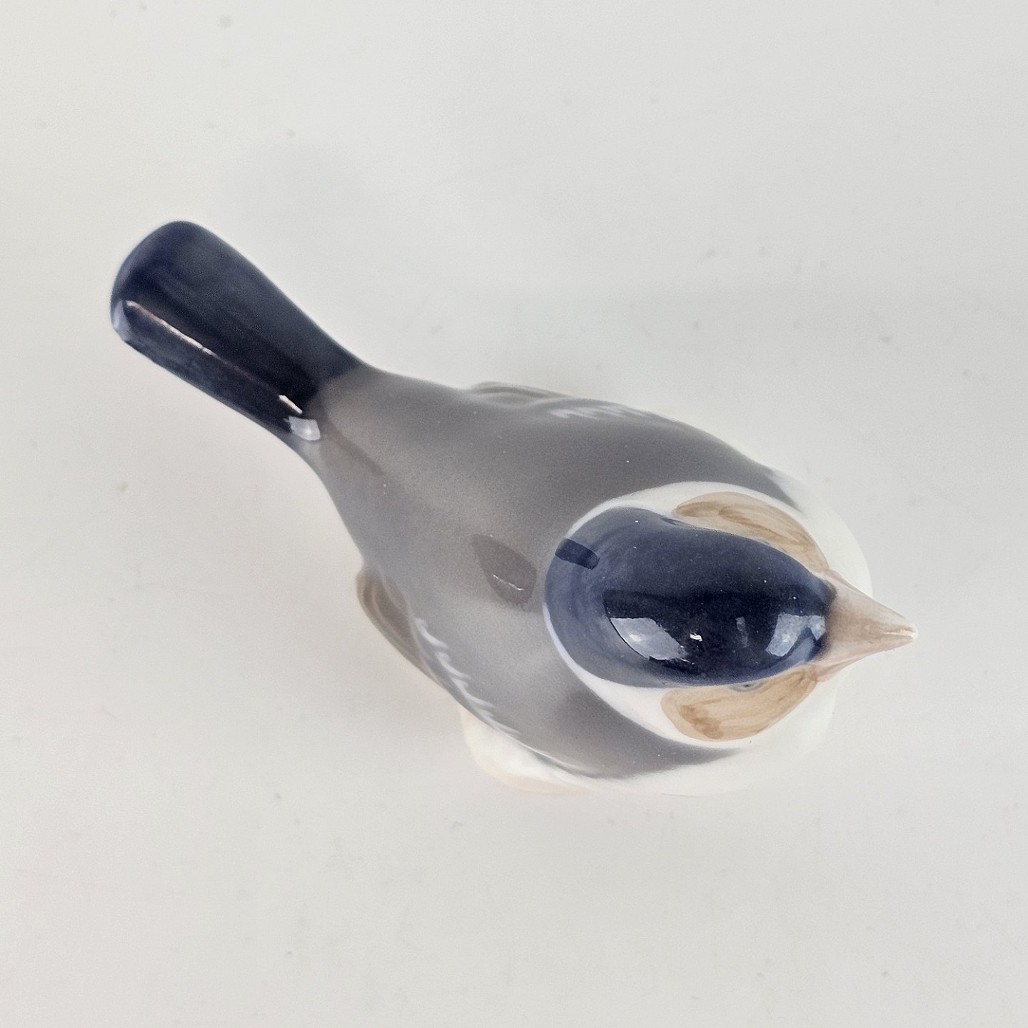 Fugl af porcelæn med motiv af fuglearten Finke. Figuren dekoreret med blå og grå farver. Nr. 1040