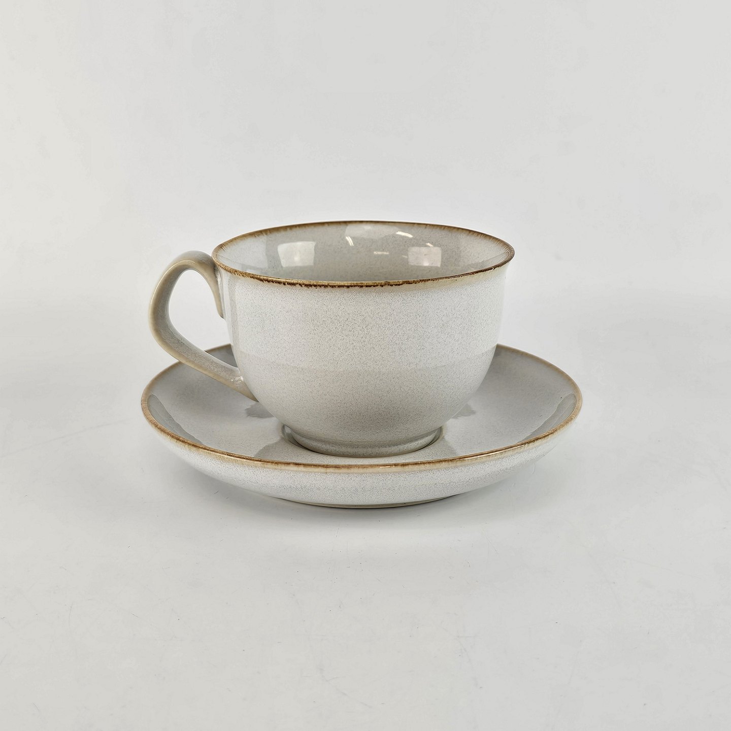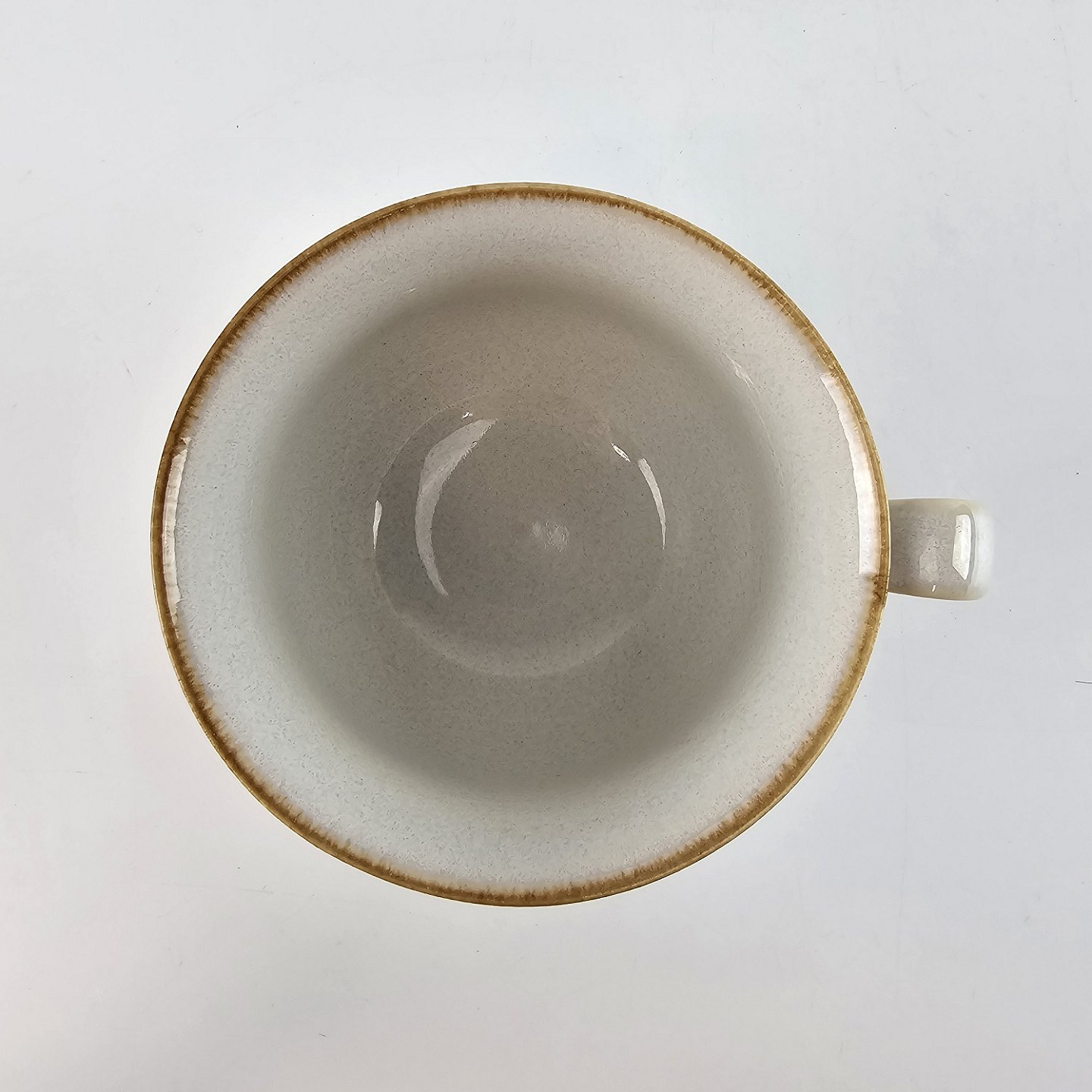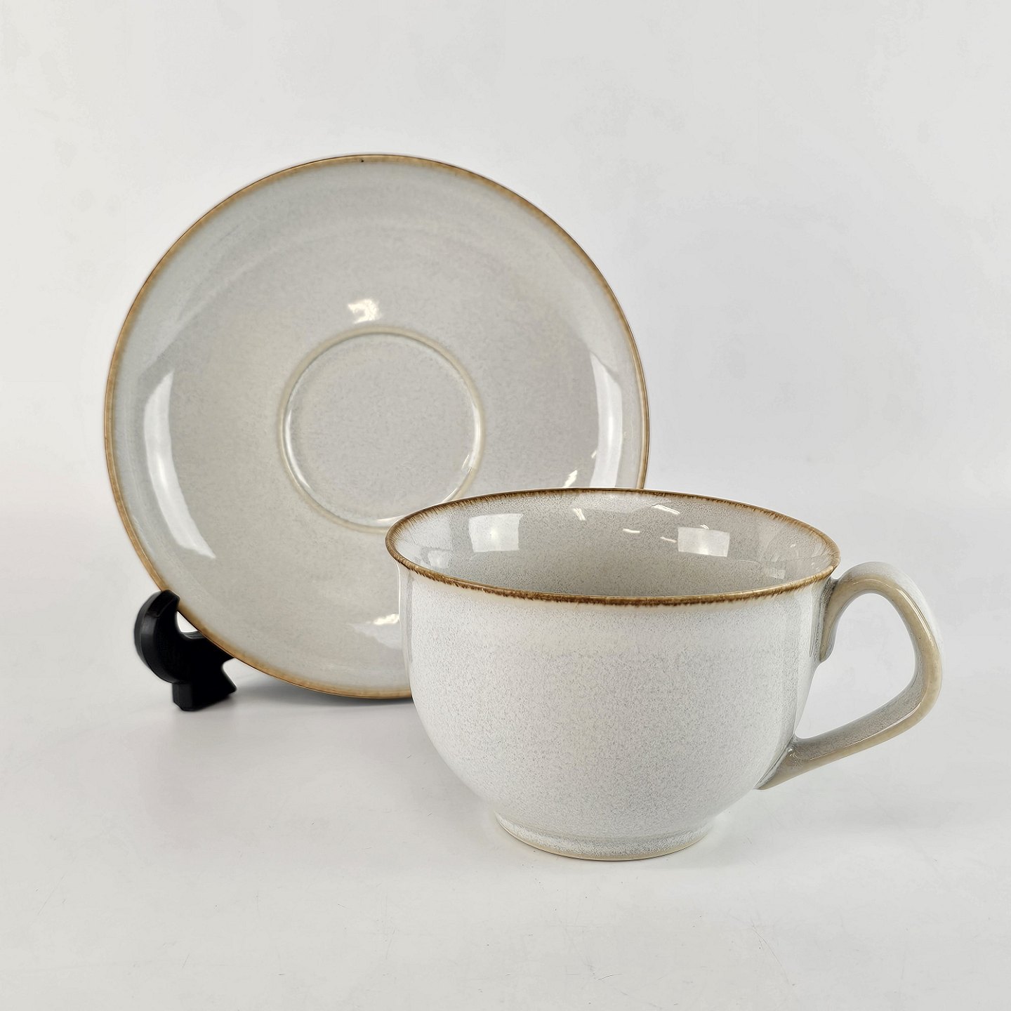 Stellet Coppelia er glaseret hvidt stentøj, dekoreret med kanter af lys brun farve