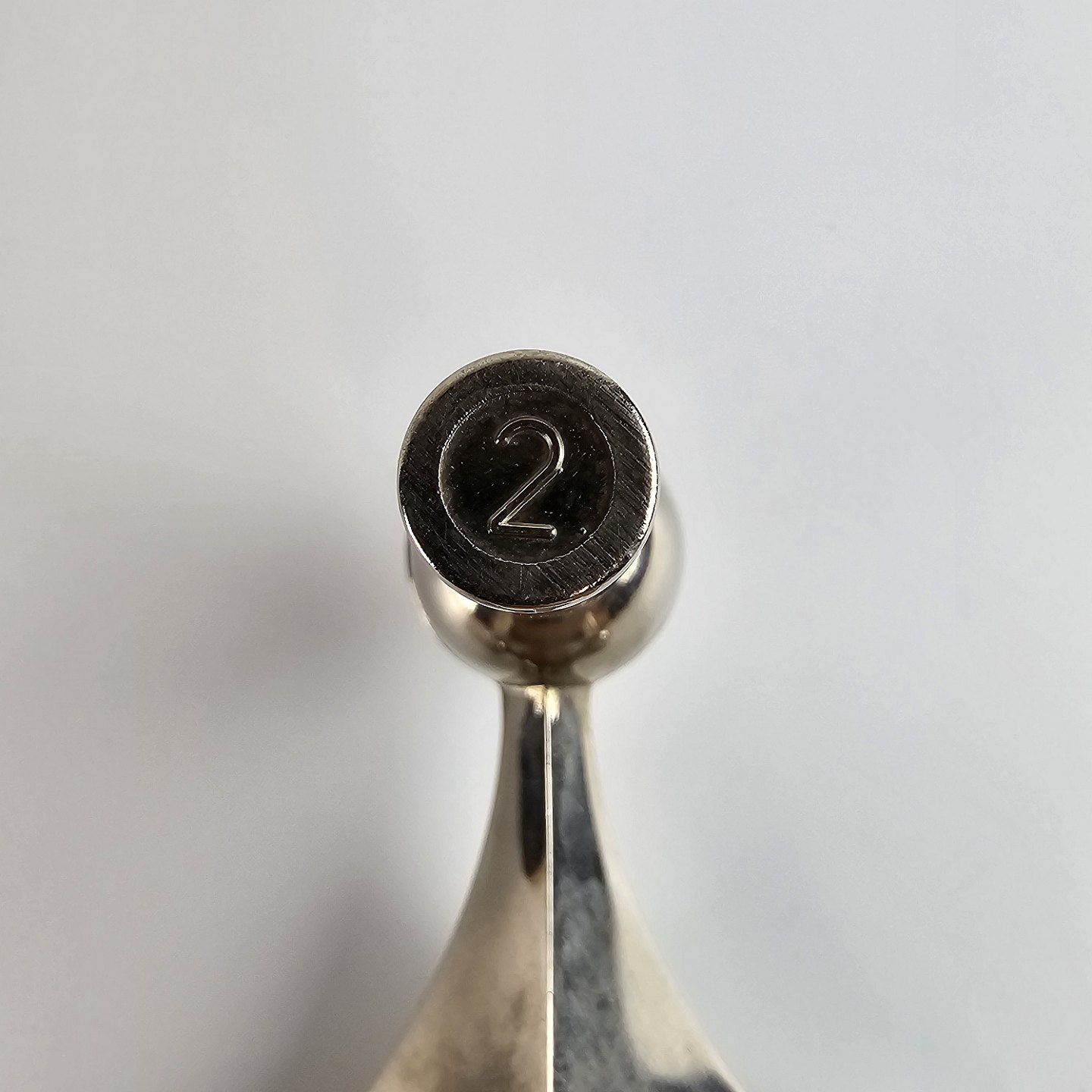 Nagel stage i forkromet stål med tallet 2 under den ene arm