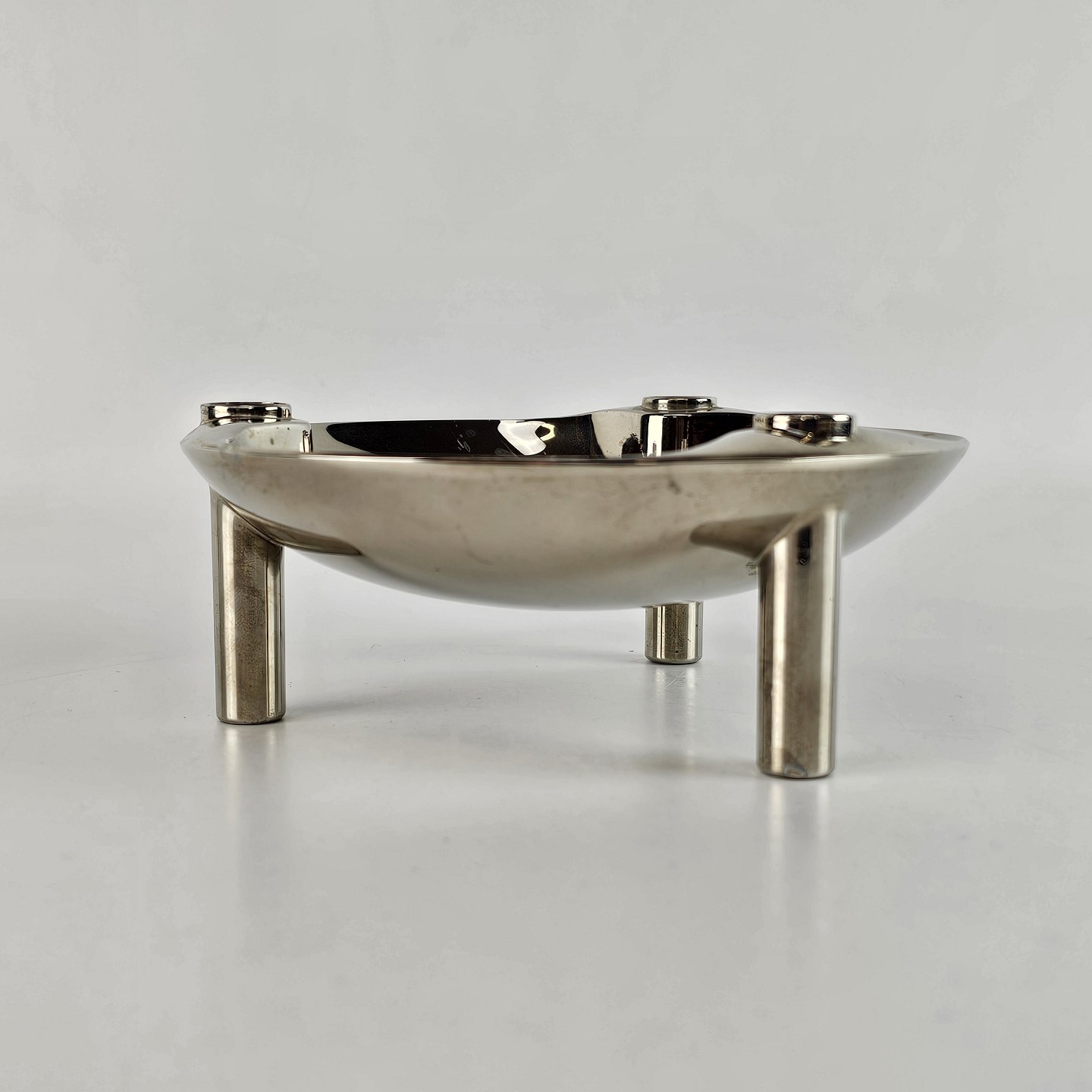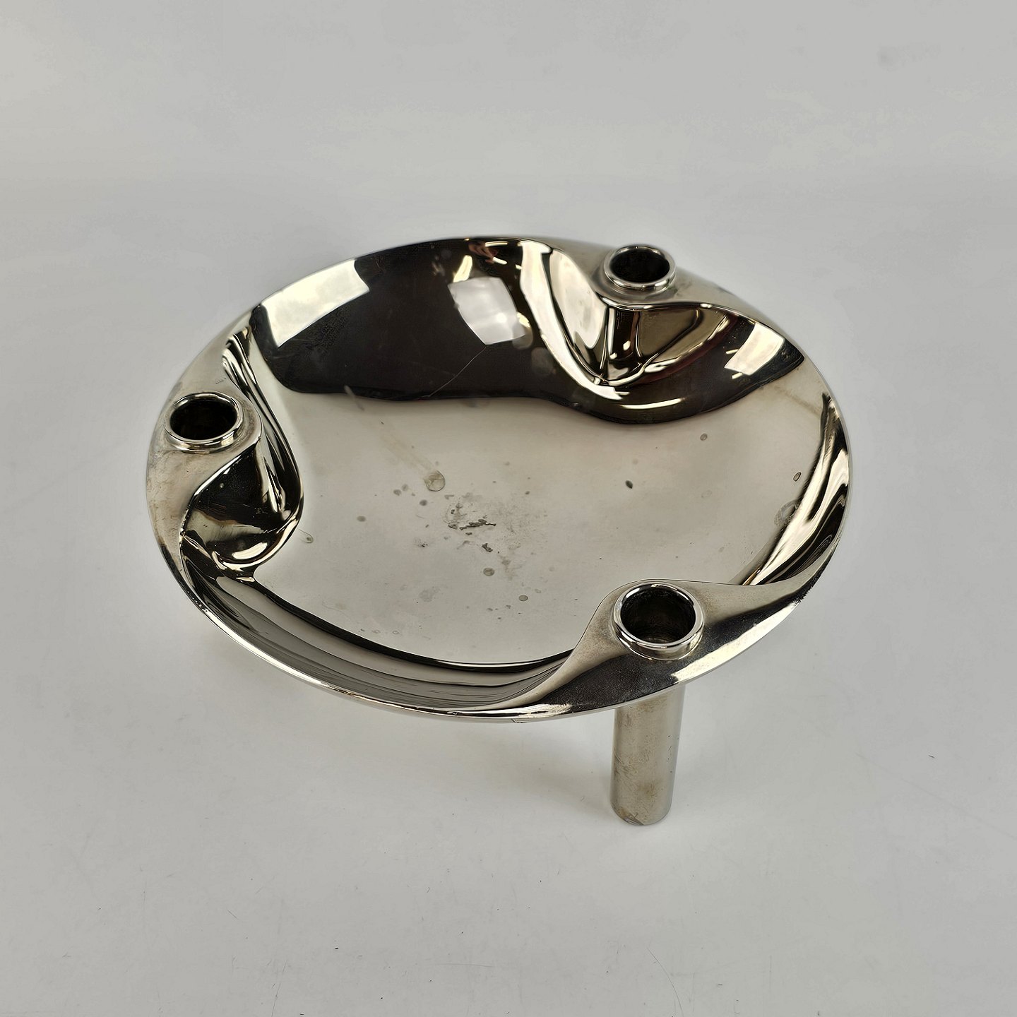 Lysestage med skål designet i 1960'erne. Stager er af krom