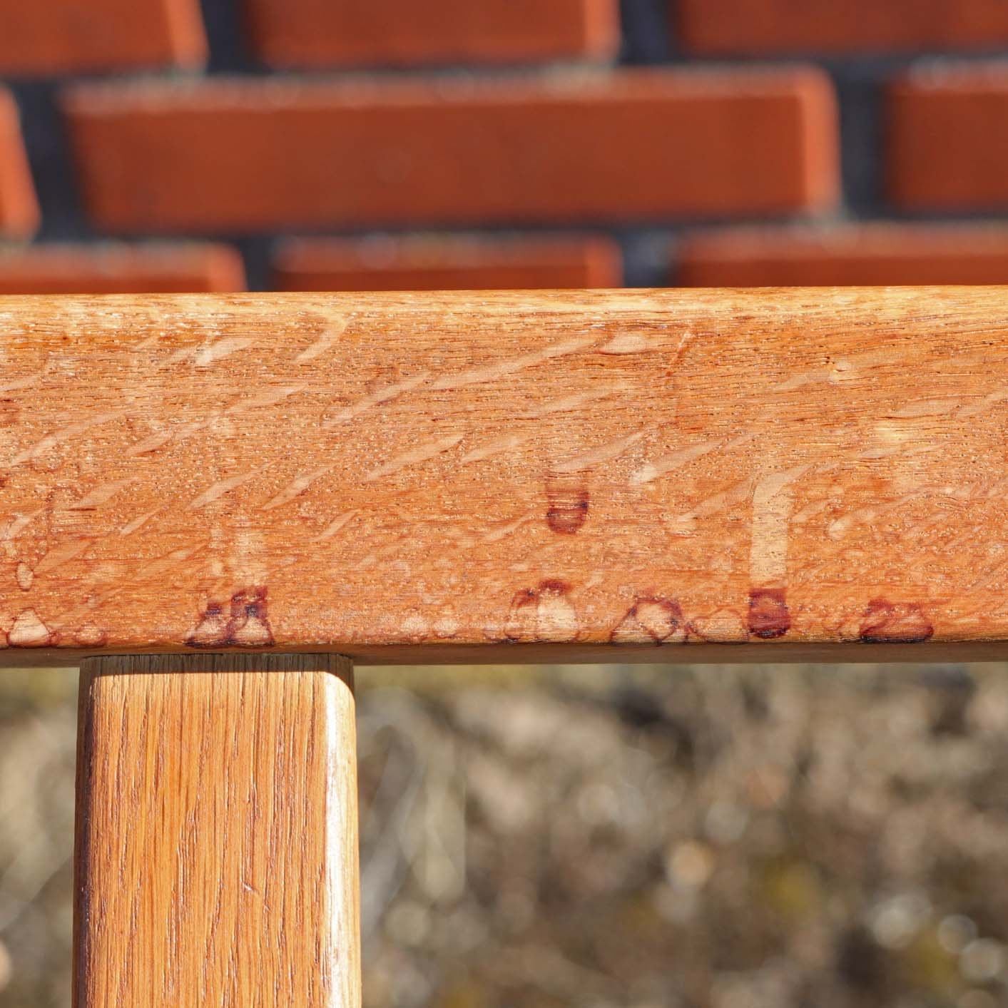 Stel i lakeret egetræ til 3 personers sofa. Sofaen har ingen hynder.