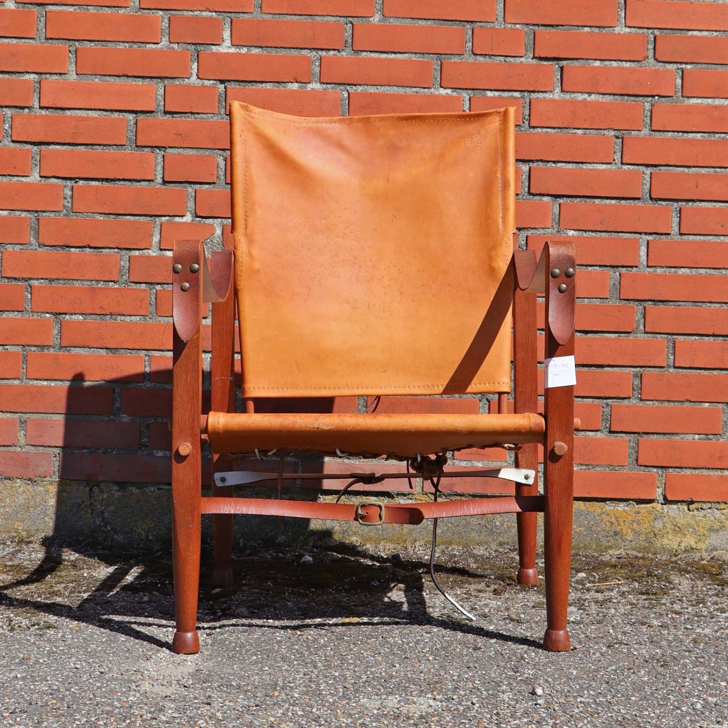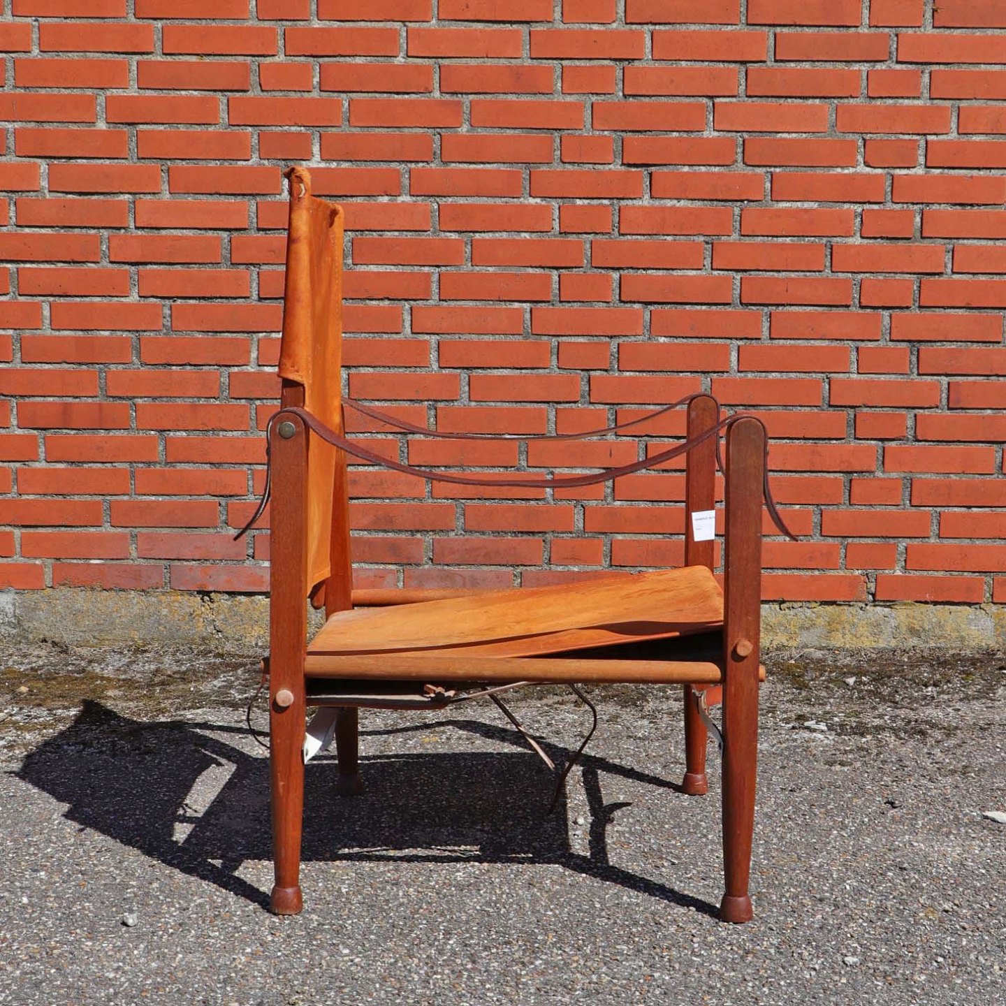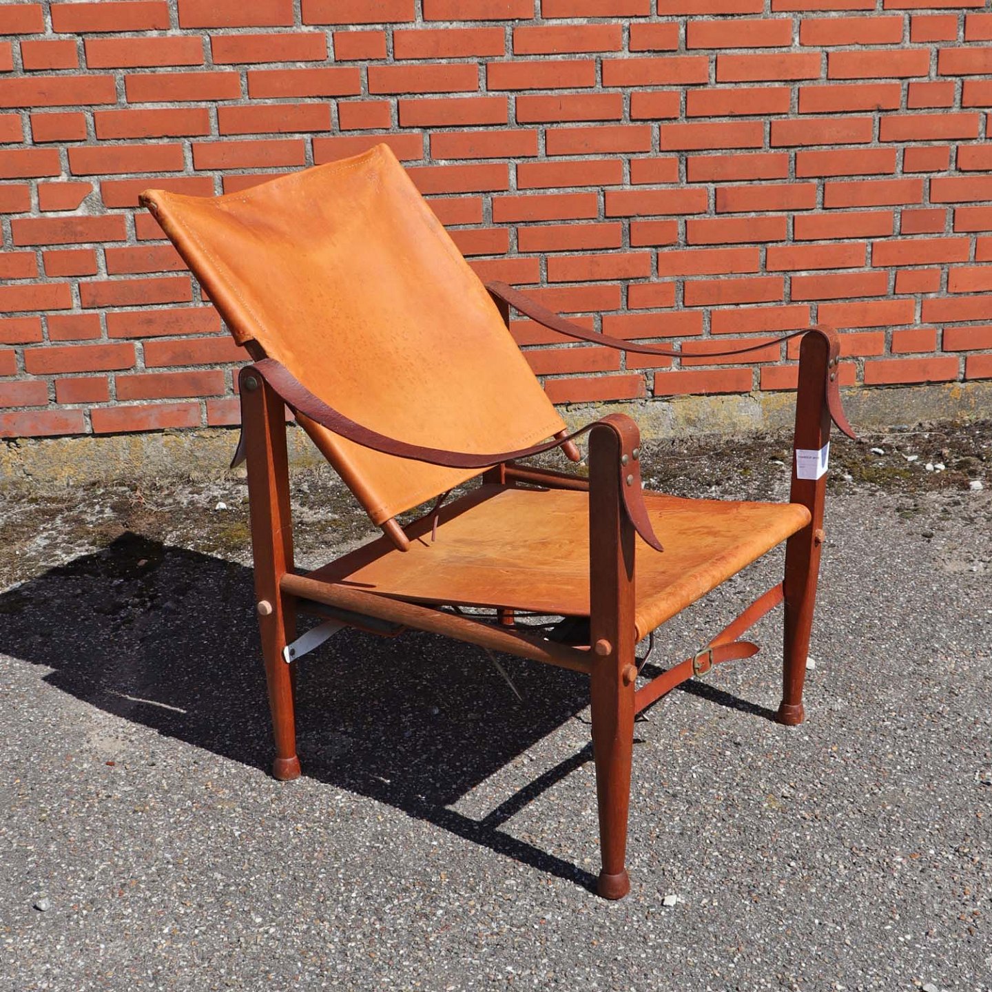 Safaristol med stel i teaktræ og ryg og sæde i cognacfarvet kernelæder