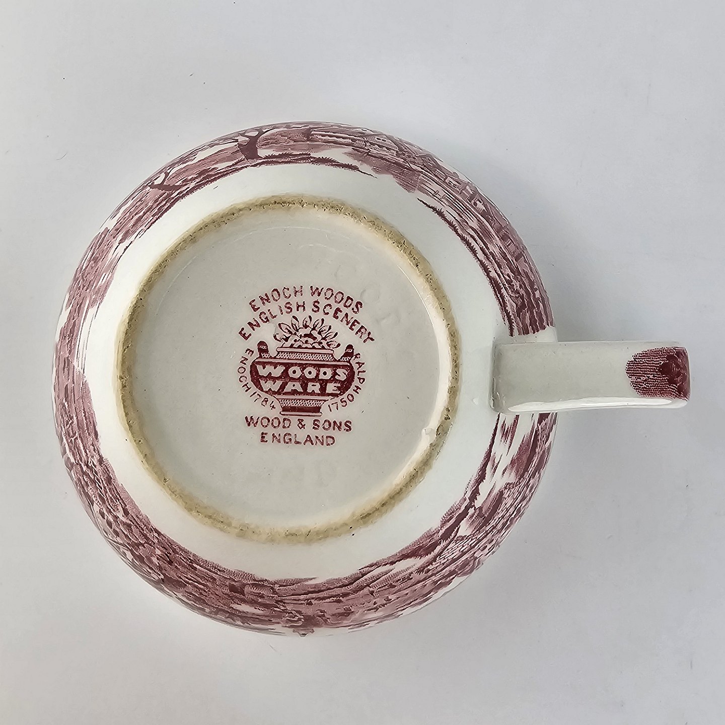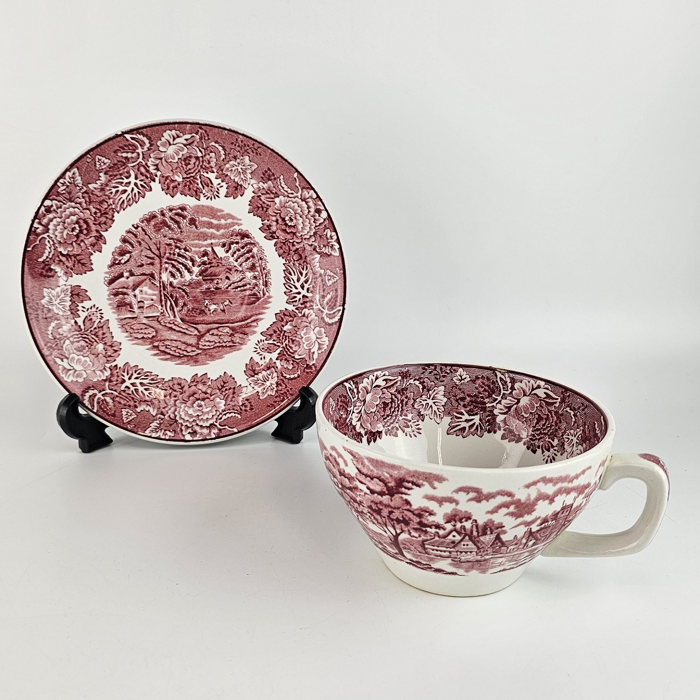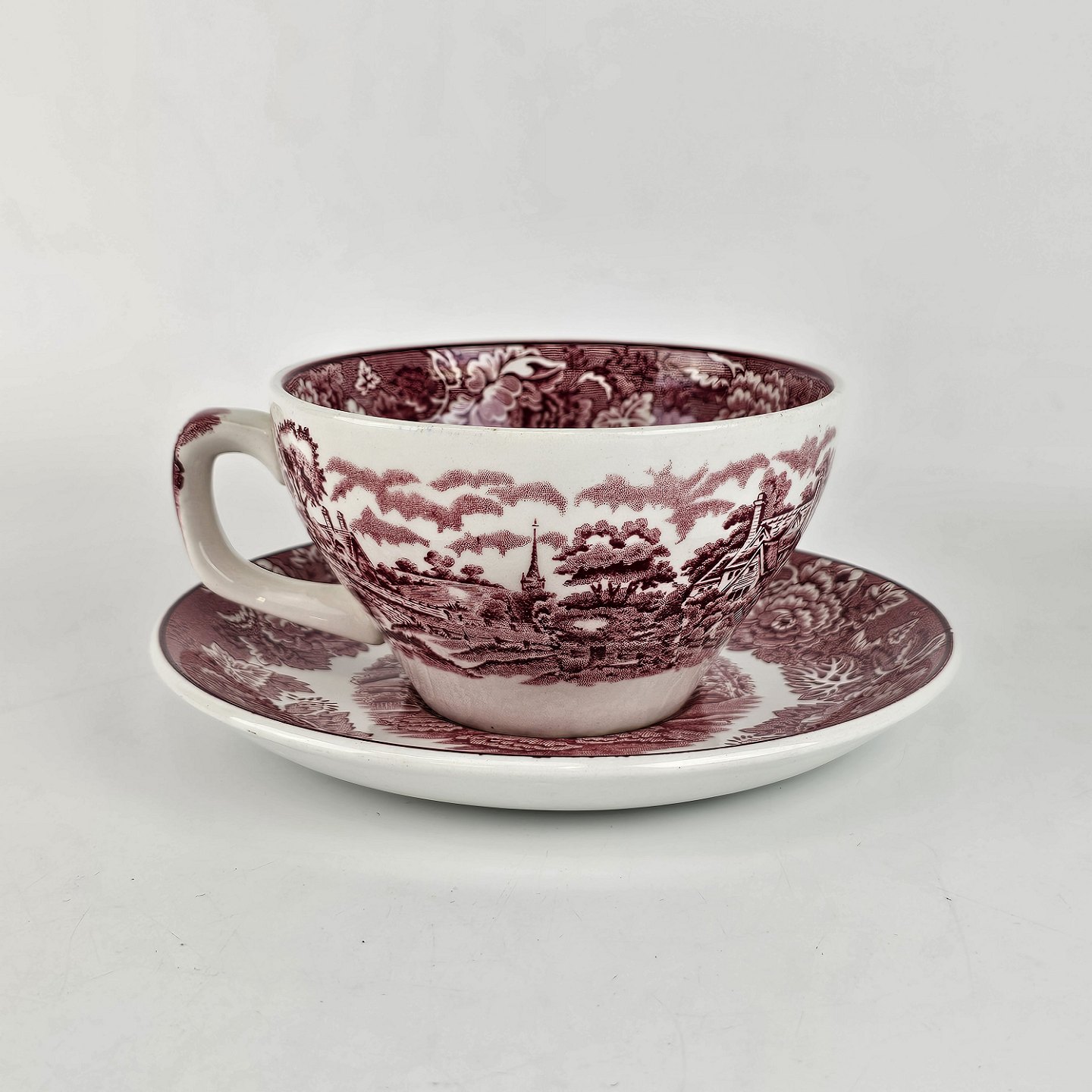 Kop og underkop fra det engelske stel Rød Paris (Enoch wood's, English scenery)