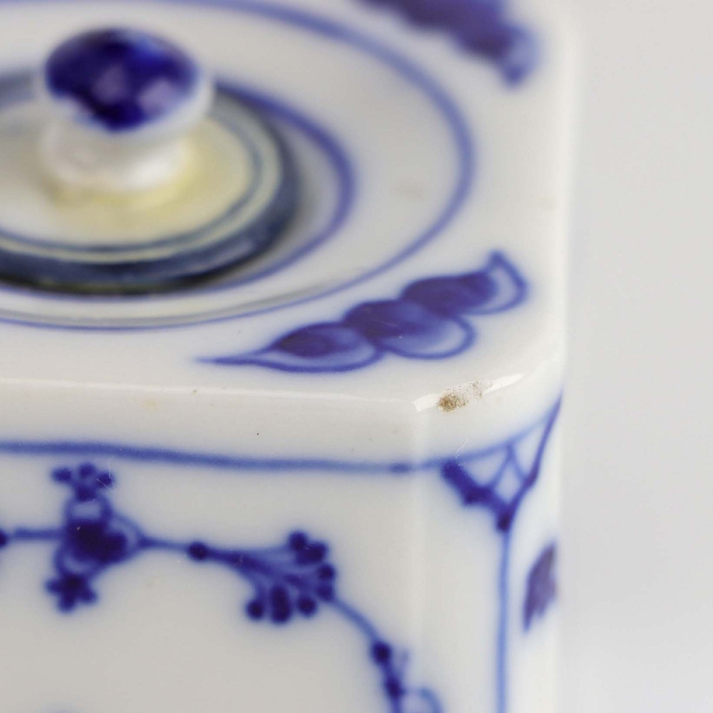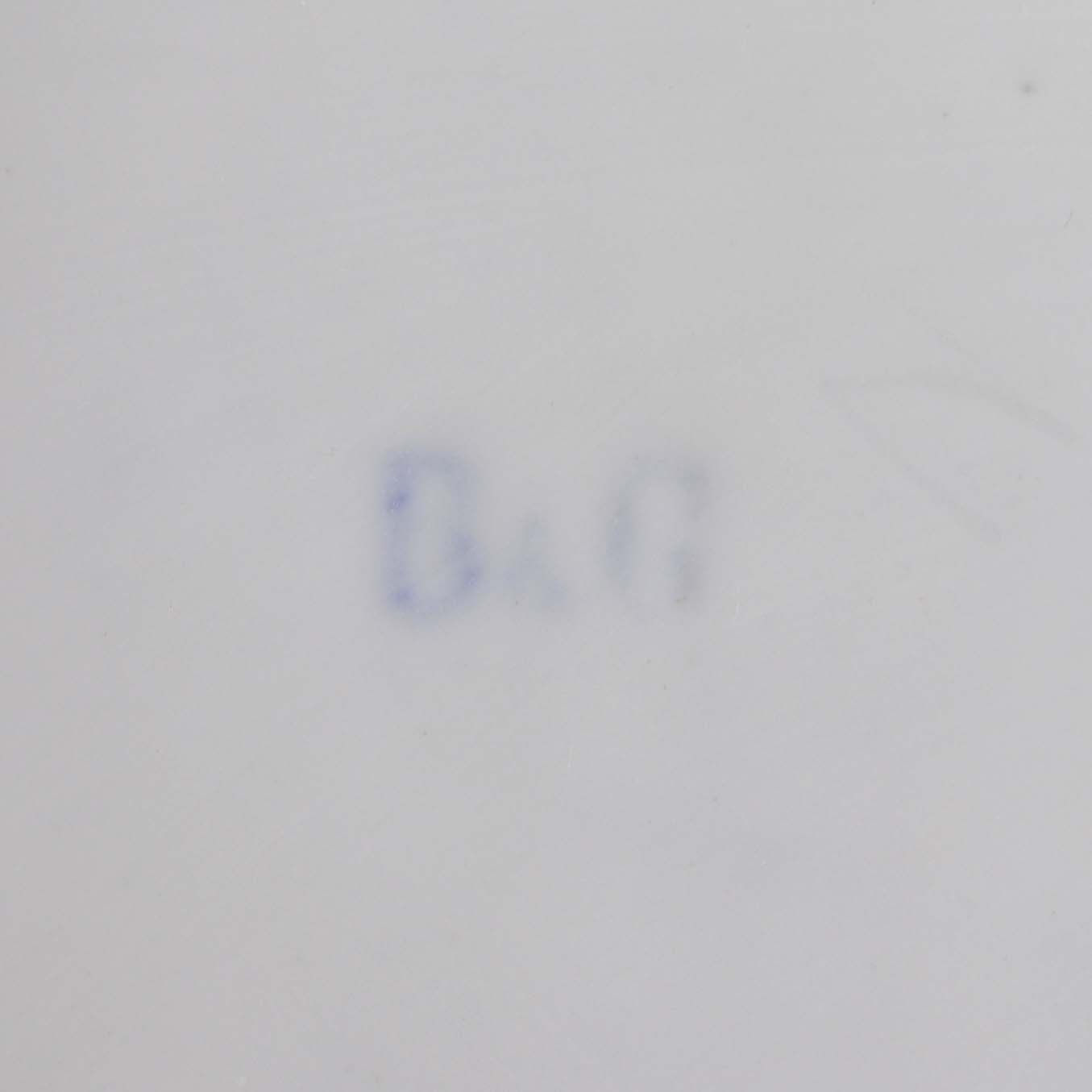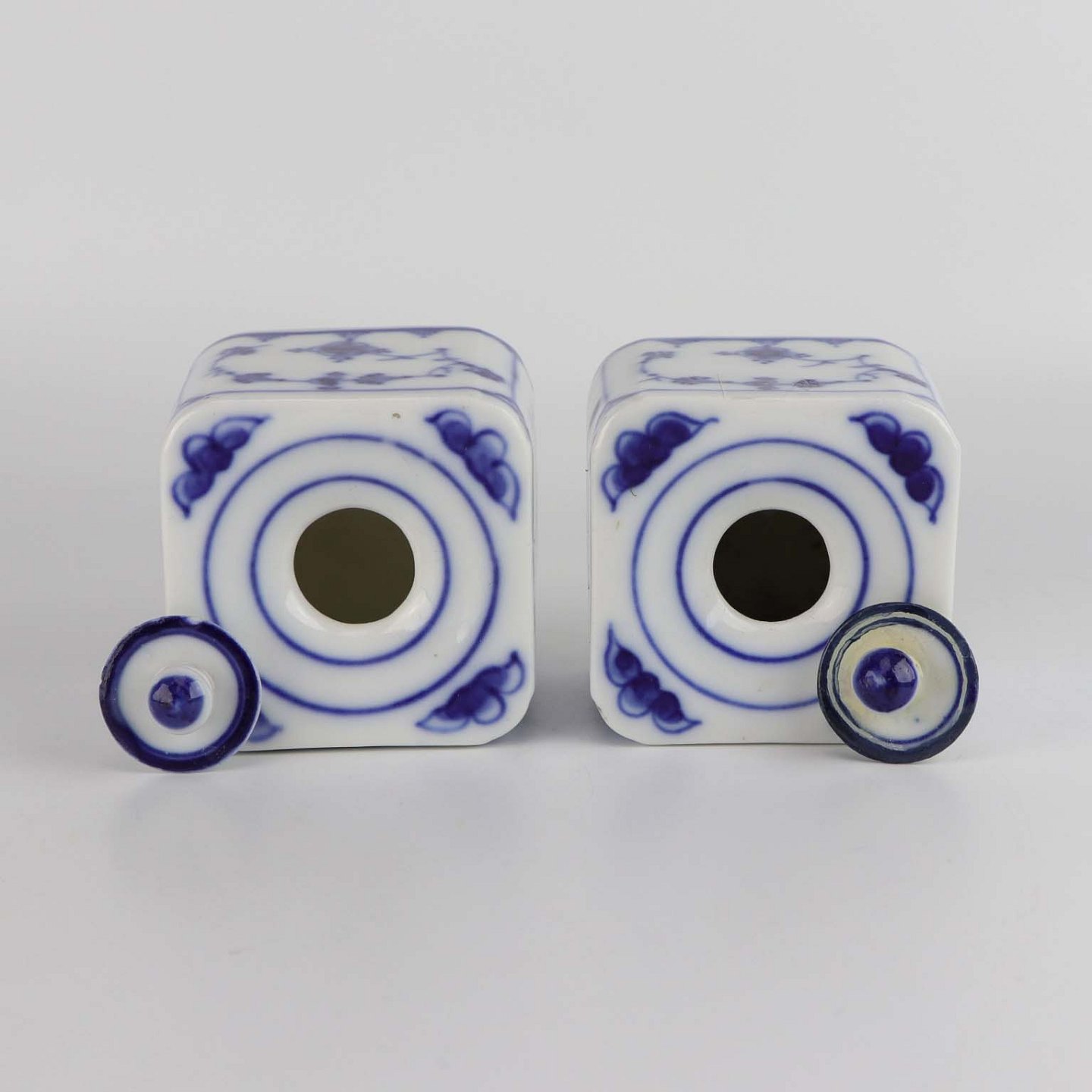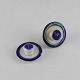Antik skrivesæt bestående af to blækholdere med låg samt tilhørende fad. Sættet er i glat hvid porcelæn med blåmalet motiv. Ifølge stemplet er dette sæt fremstillet i perioden 1853 - 1895